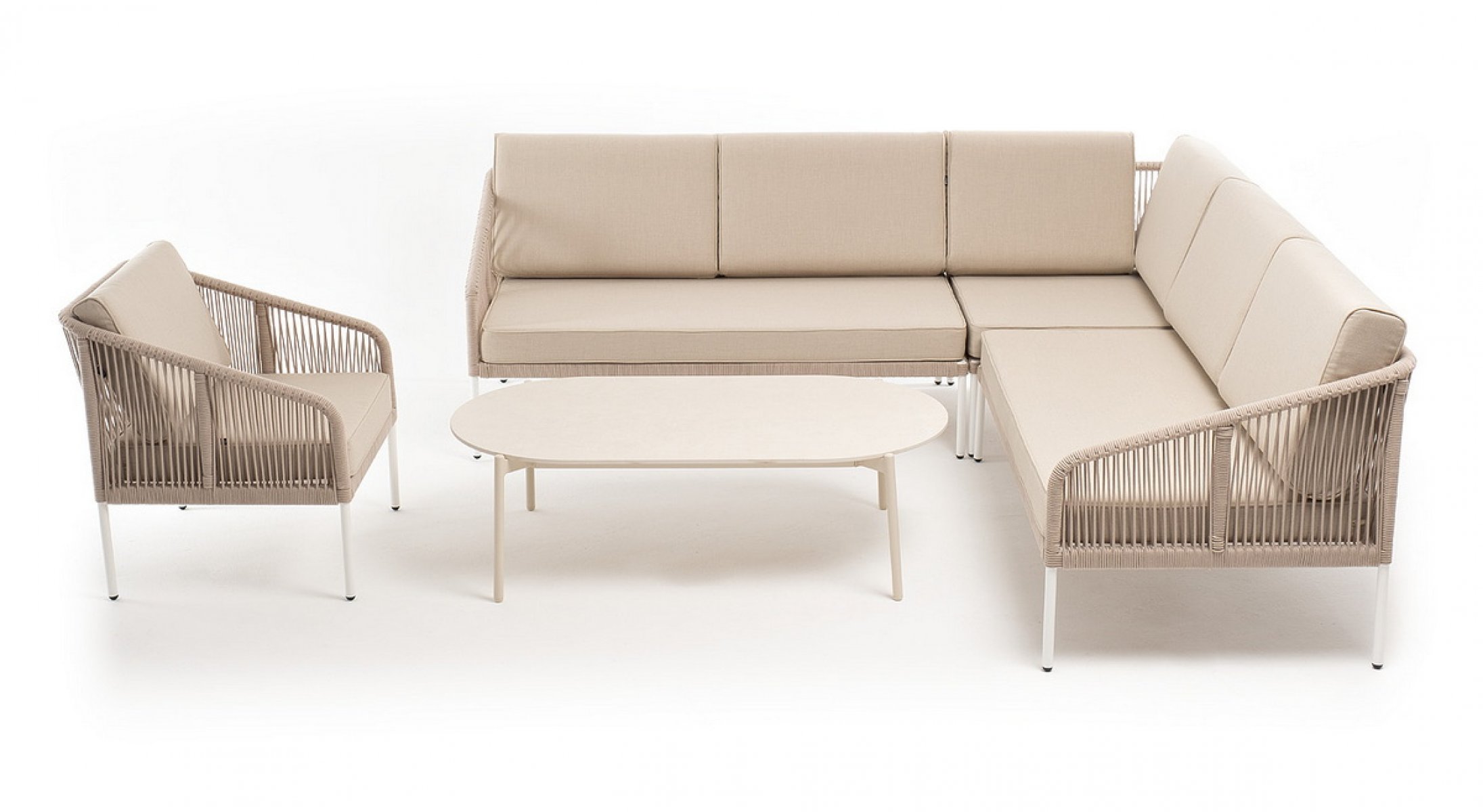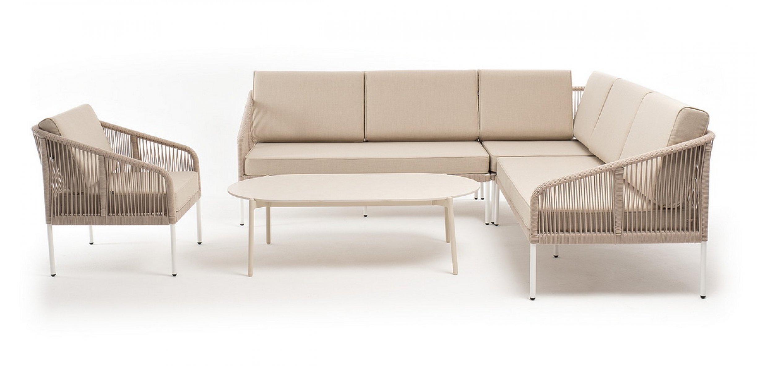 "Канны" модульная угловая лаунж-зона из роупа (веревки) со столом "Диего" (молочный), цвет бежевый