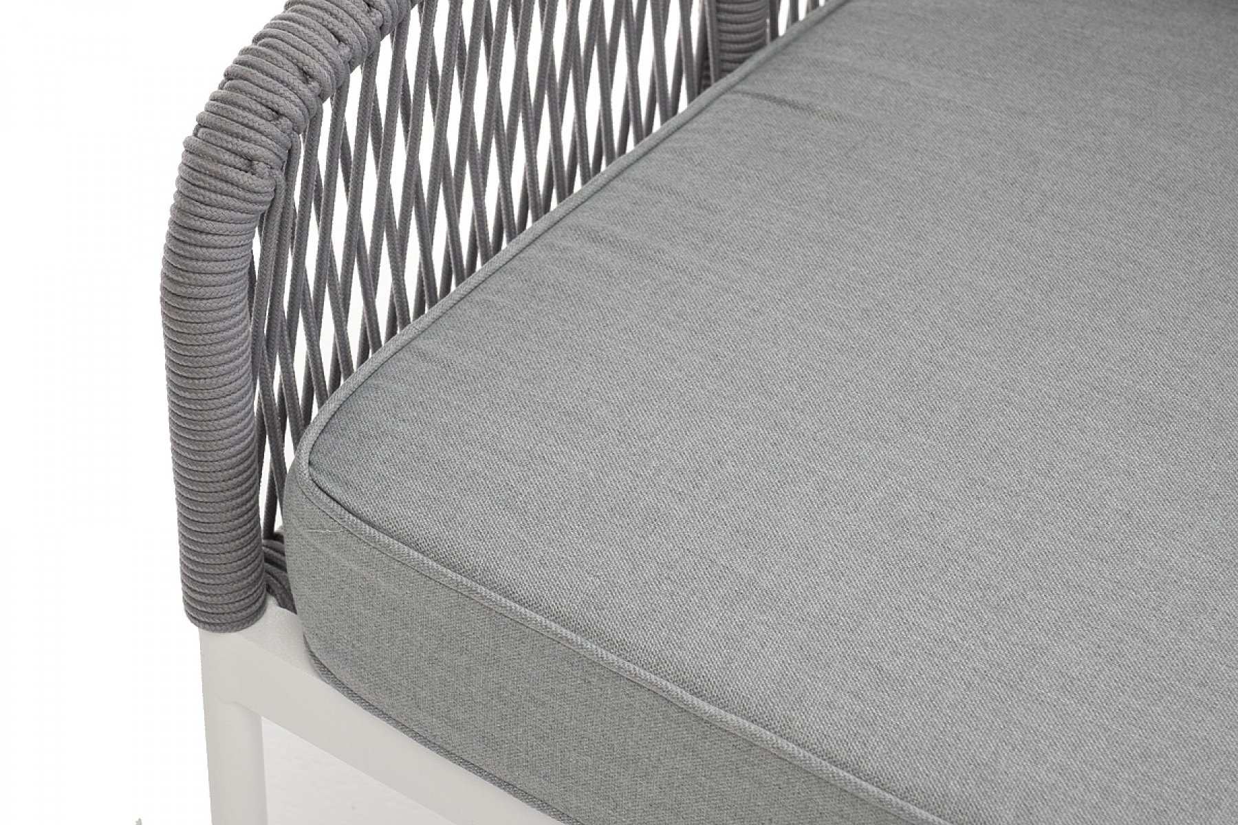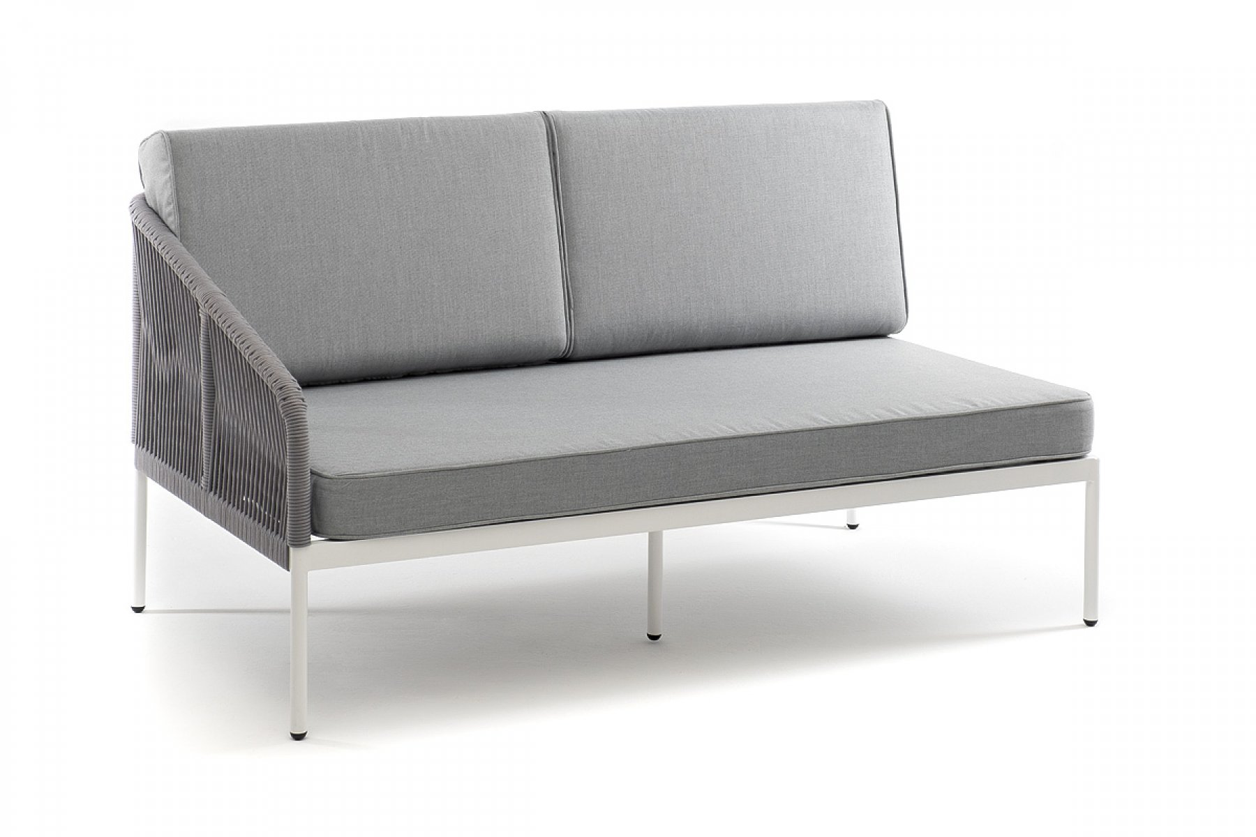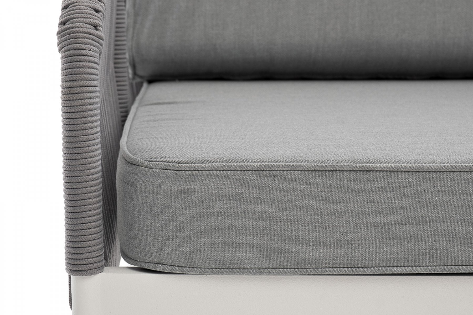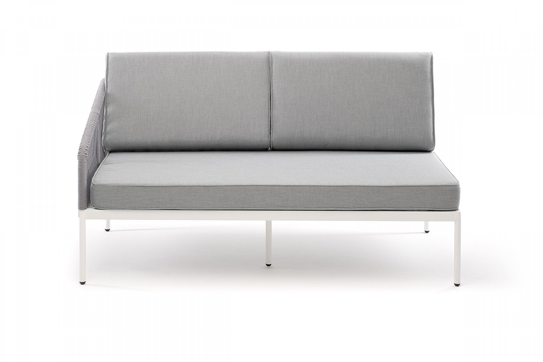 "Канны" правый модуль плетеный из роупа, каркас алюминий белый муар, роуп светло-серый круглый, ткань светло-серая