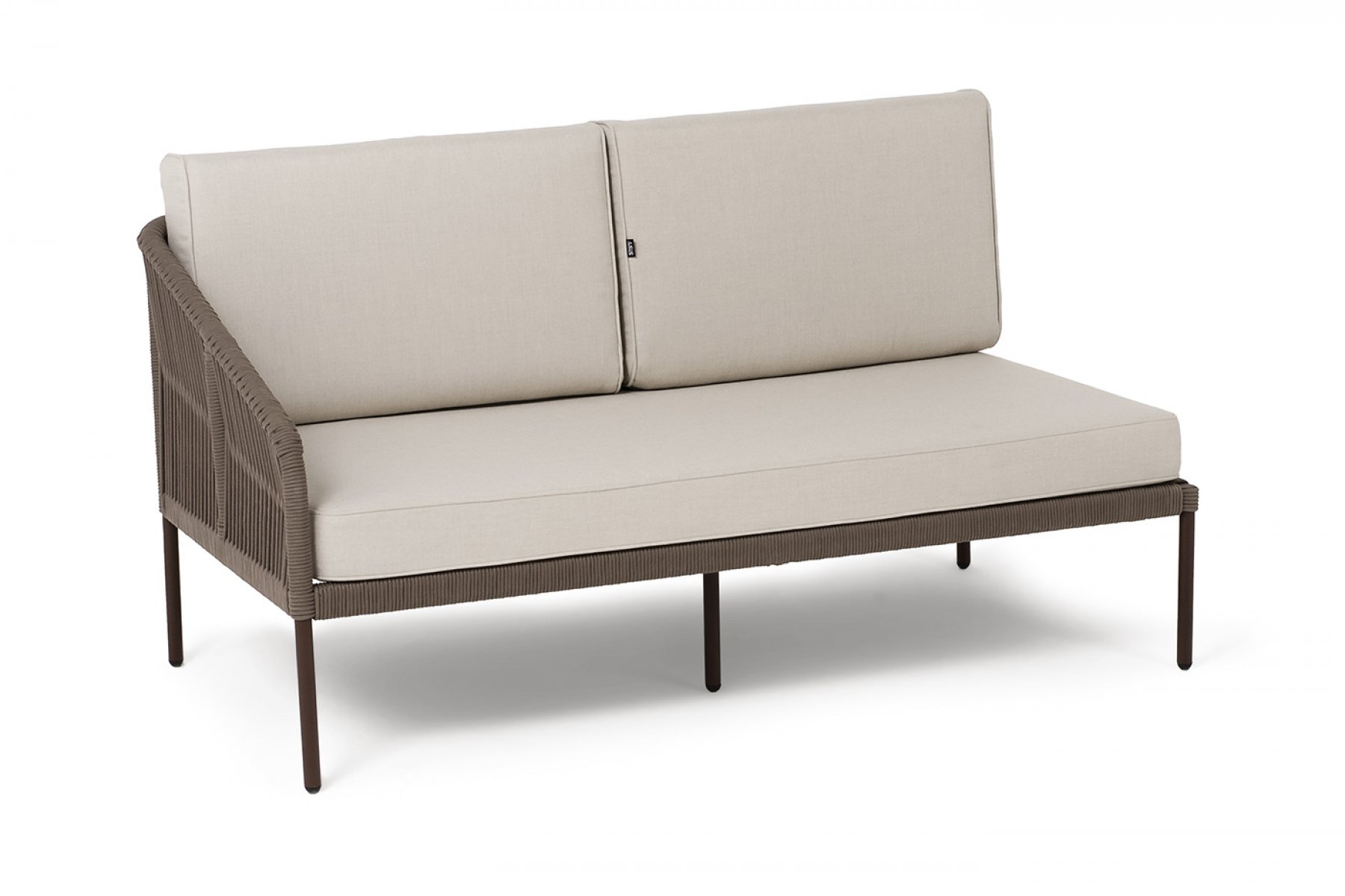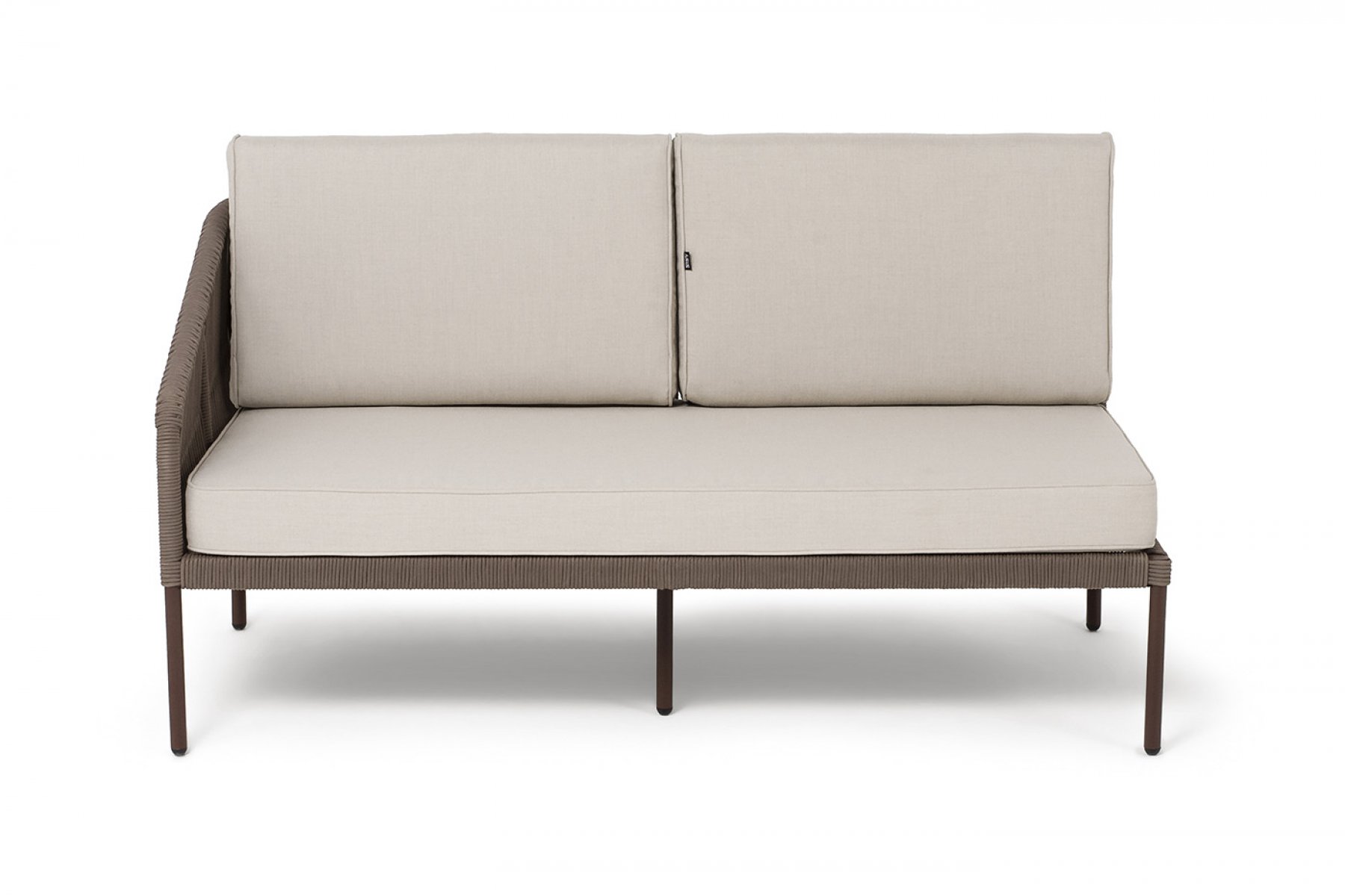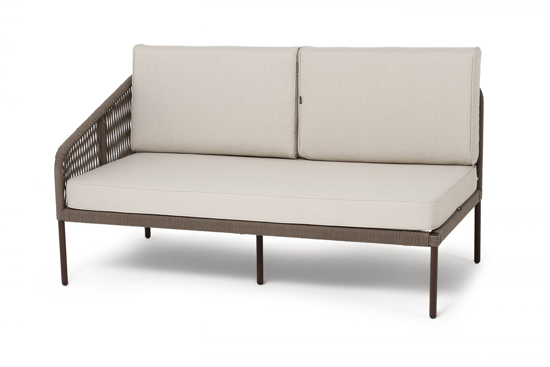 "Канны" правый модуль плетеный из роупа, каркас алюминий коричневый (RAL8016) муар, роуп коричневый круглый, ткань бежевая 15052