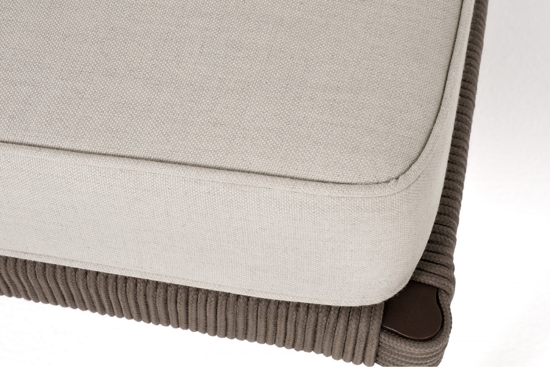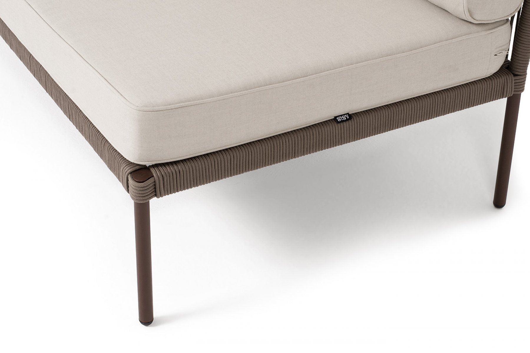 Модуль имеет алюминиевый каркас, окрашенный порошковой краской в коричневый (RAL8016) цвет. Боковины каркаса вручную оплетены роупом - эластичными синтетическими лентами, изготовленными из высокопрочных полиэфирных волокон. Цвет оплетки - коричневый.