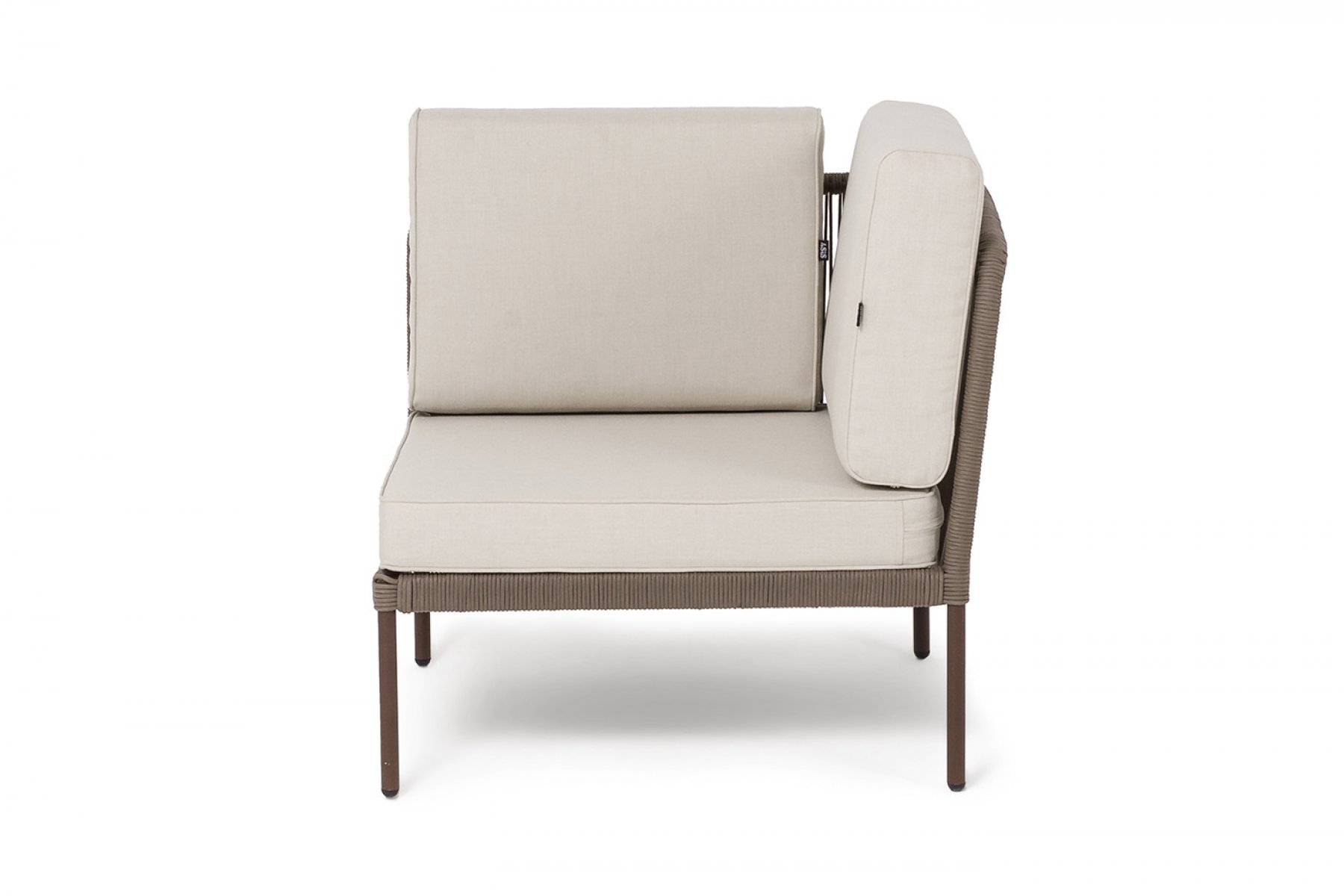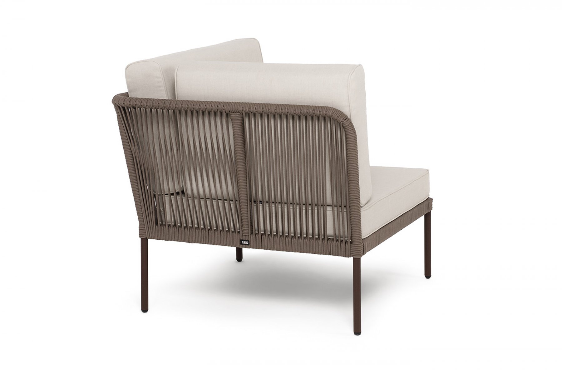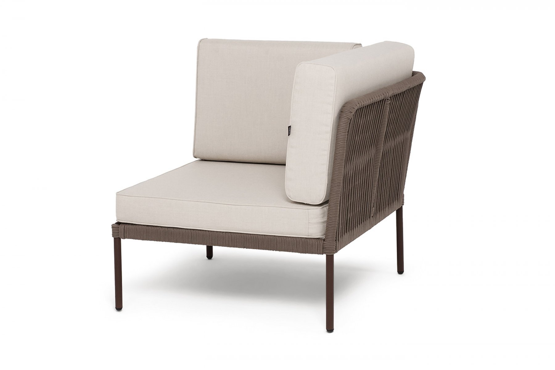 "Канны" угловой модуль плетеный из роупа, каркас алюминий коричневый (RAL8016) муар, роуп коричневый круглый, ткань бежевая 15052
