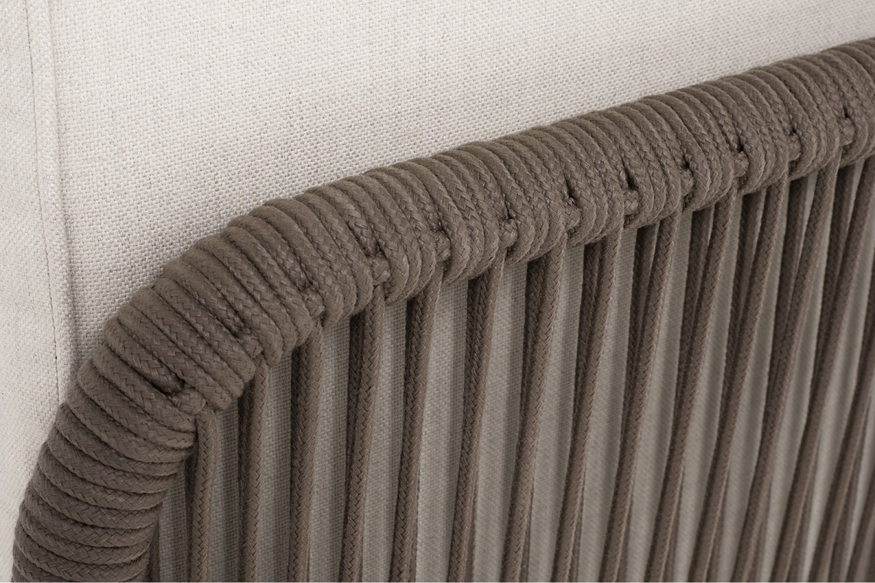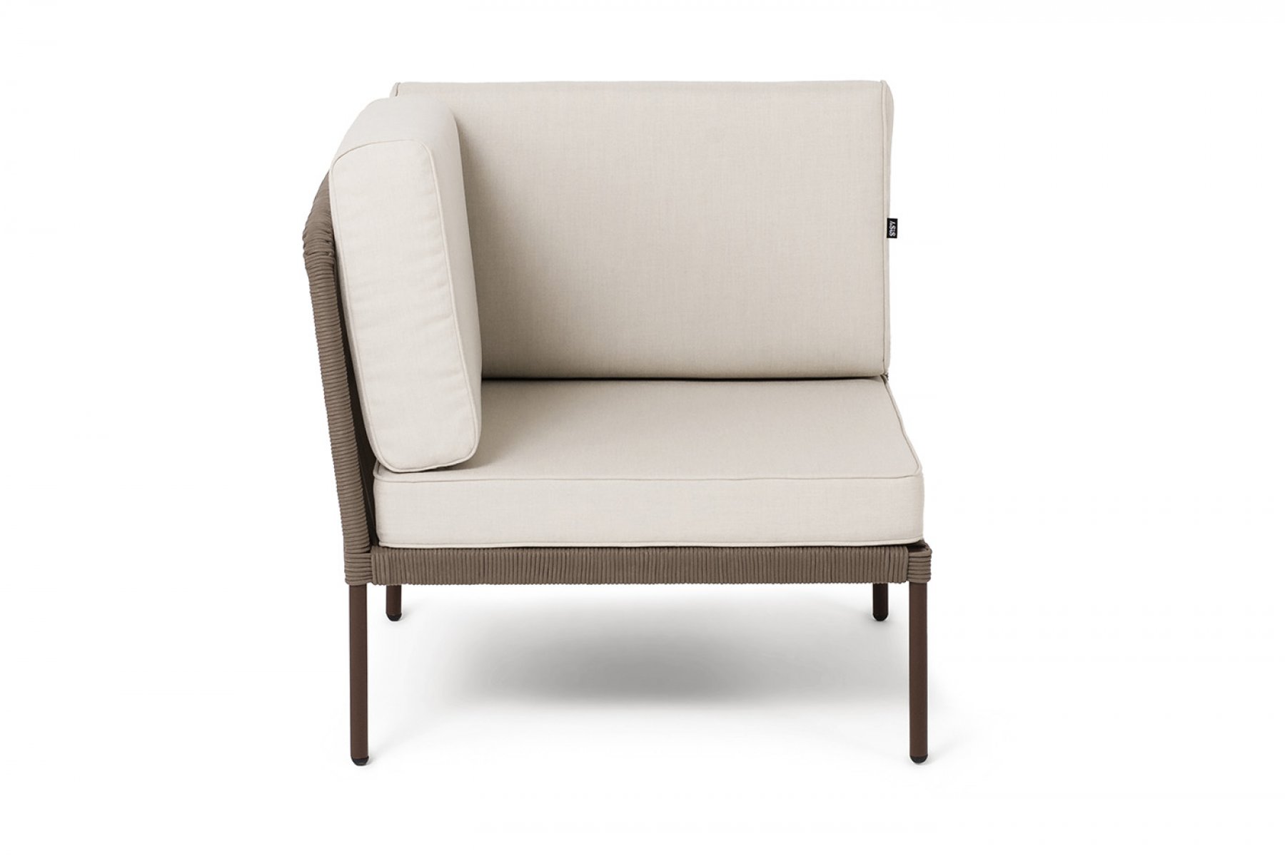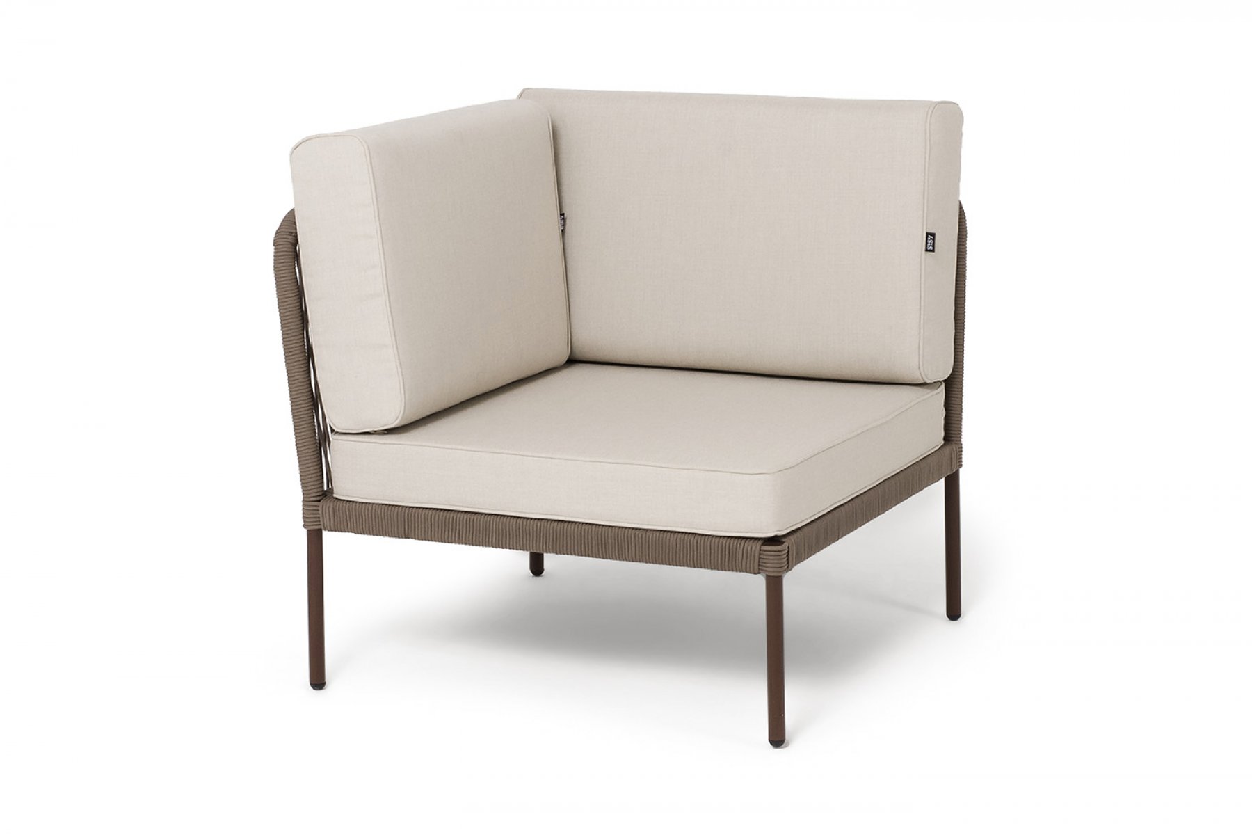 "Канны" угловой модуль плетеный из роупа, каркас алюминий коричневый (RAL8016) муар, роуп коричневый круглый, ткань бежевая 15052