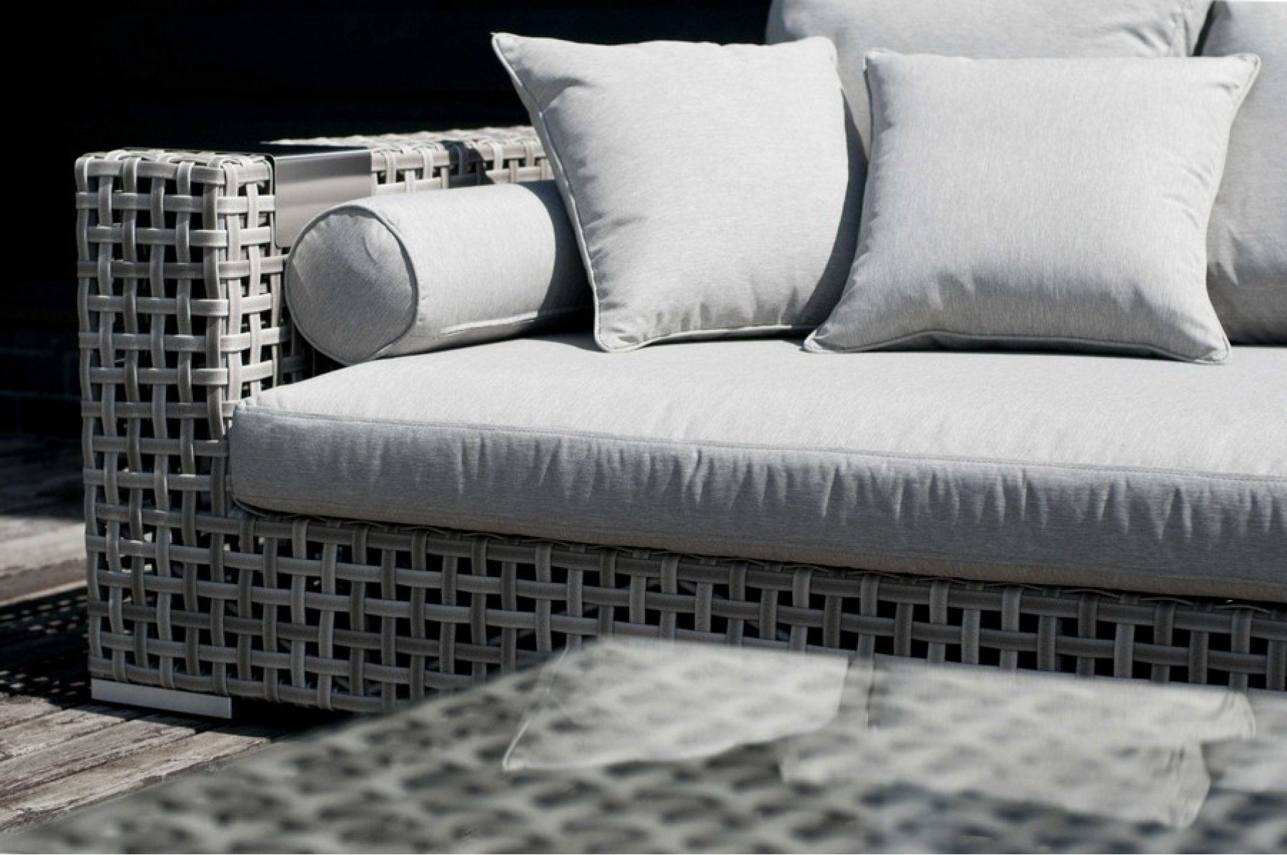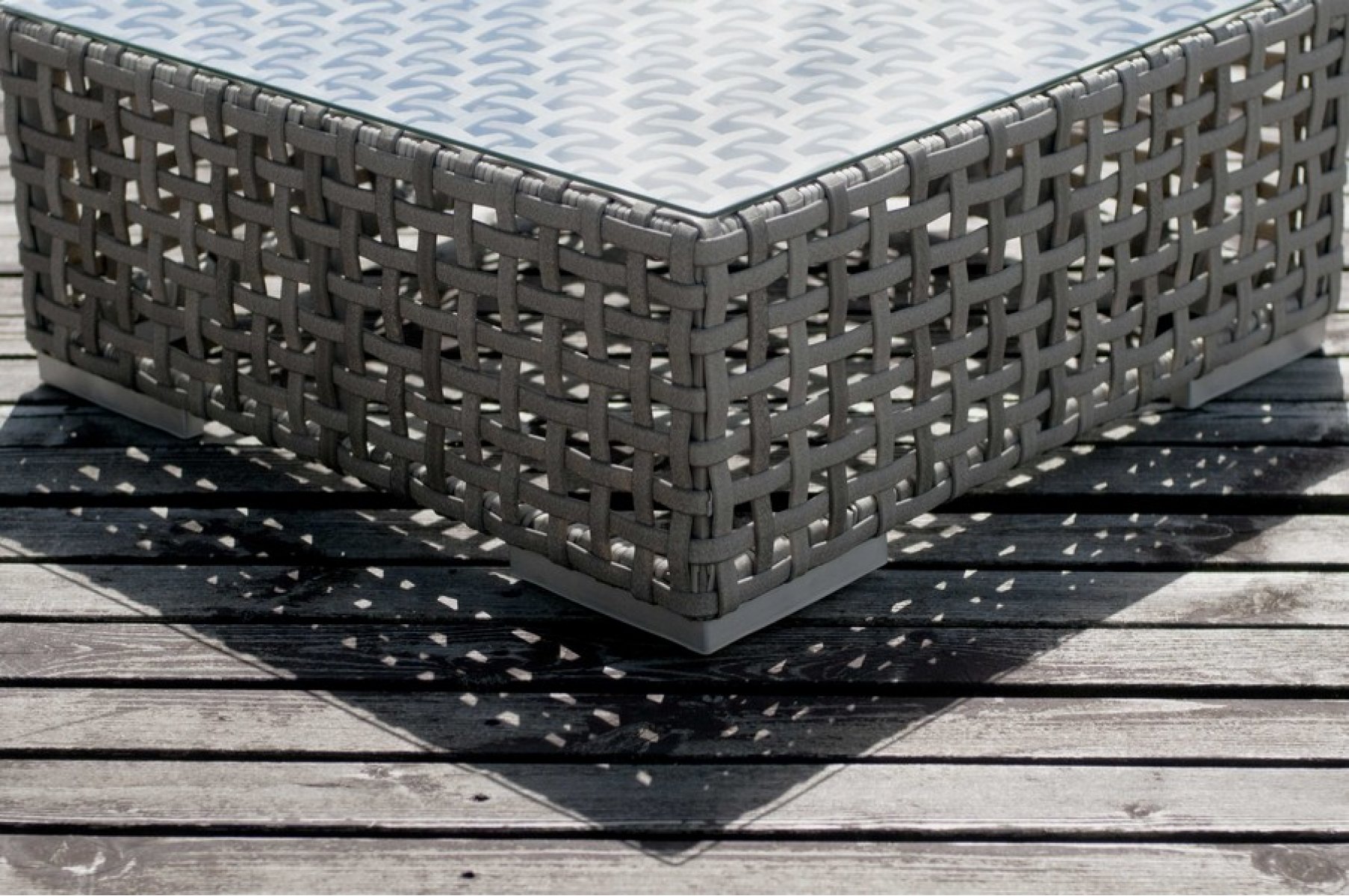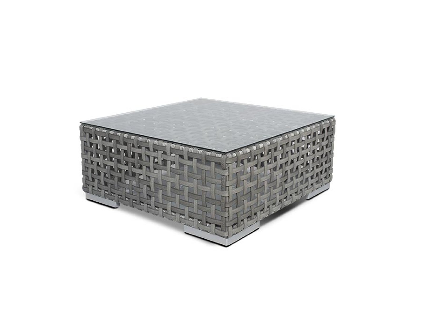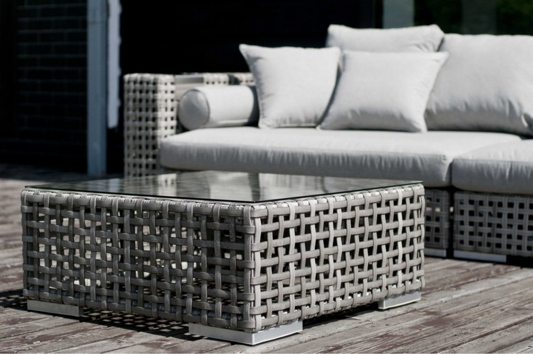 "Канти ", столик кофейный со стеклянной столешницей толщиной 5 мм, алюминиевый каркас, искусственный ротанг,