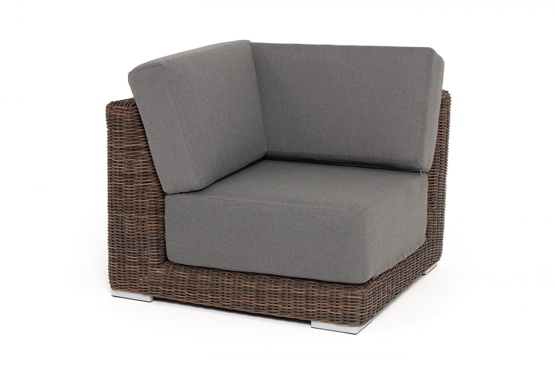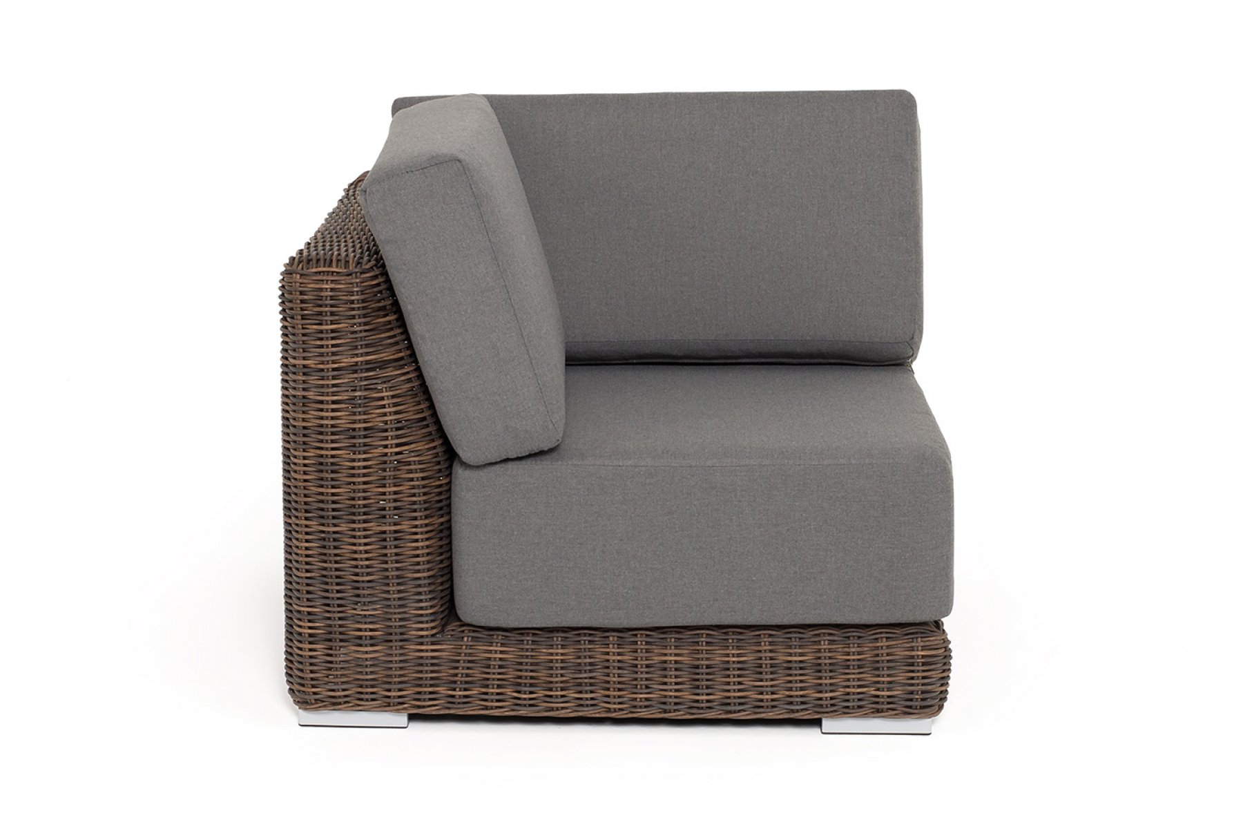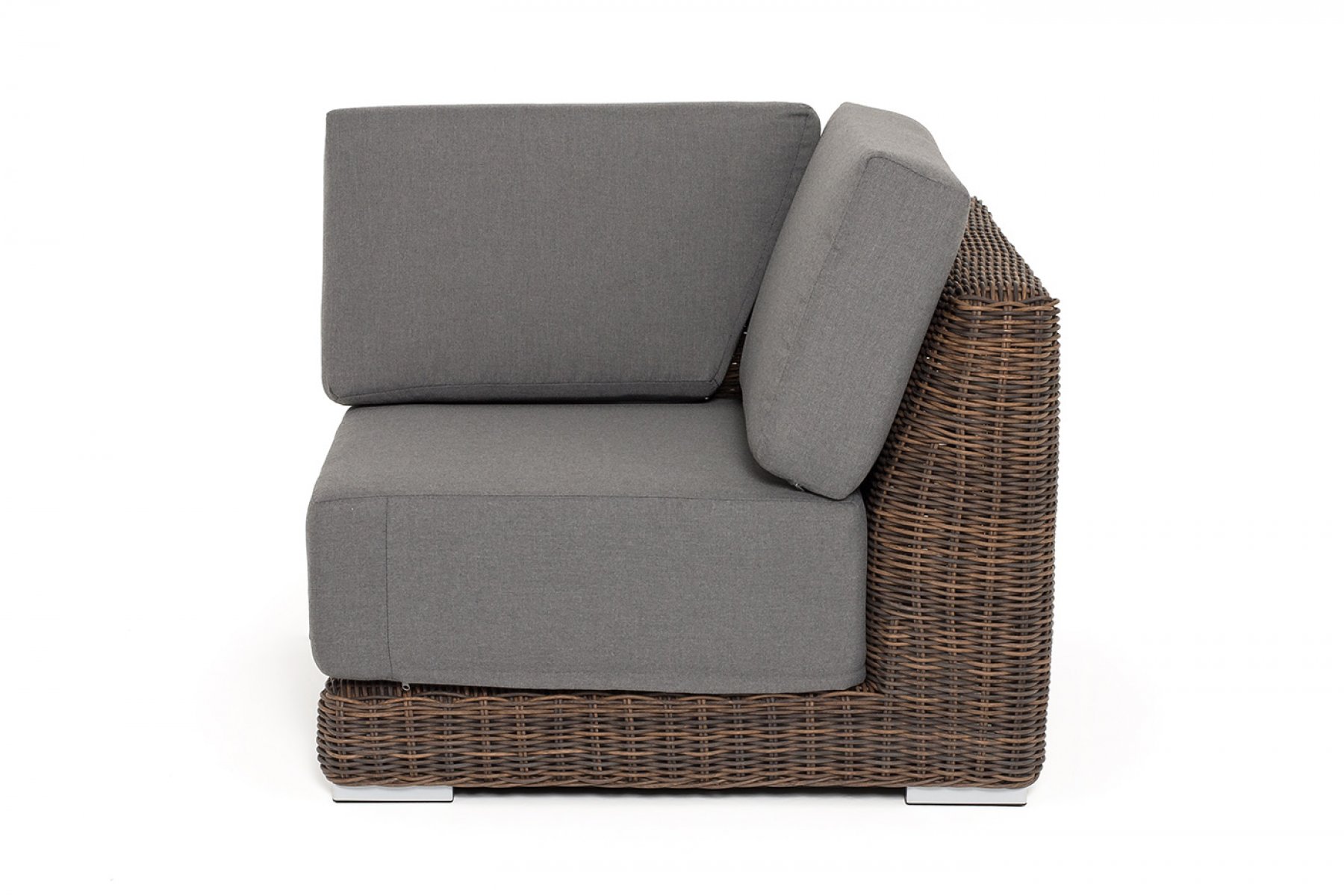 Угловой модуль из круглого искусственного ротанга «Капри» является одним из звеньев для создания лаунж зоны по индивидуальным потребностям.