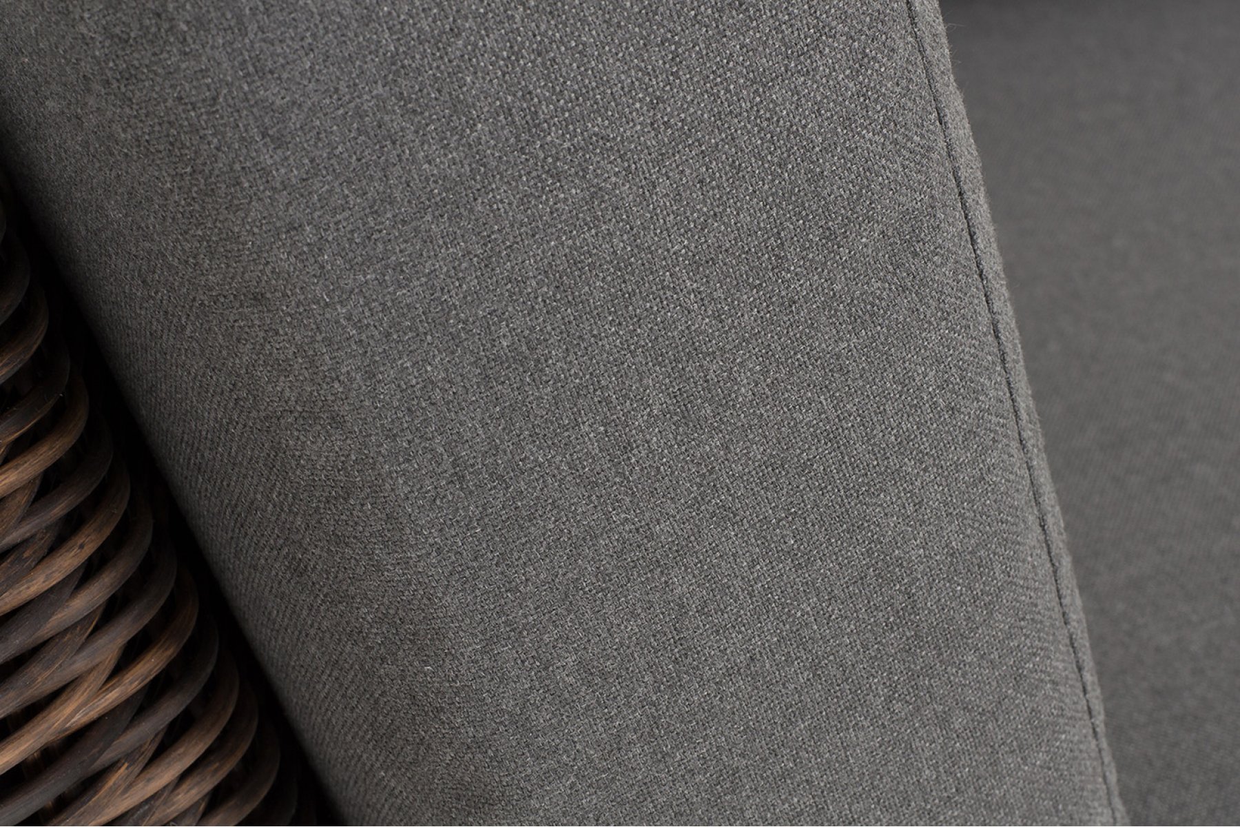 Основа выполнена из алюминиевого каркаса, декорированного вручную оплеткой коричневого цвета. Комплектацией предусмотрены подушки, выполенные из полиэстера с влагоотводящей пропиткой.