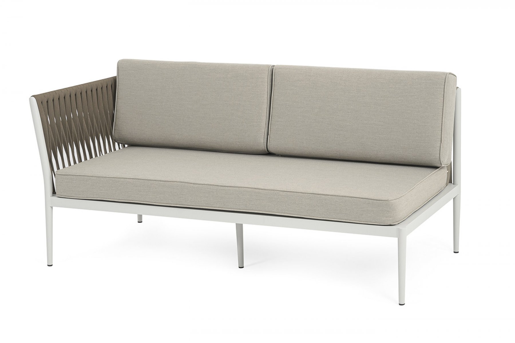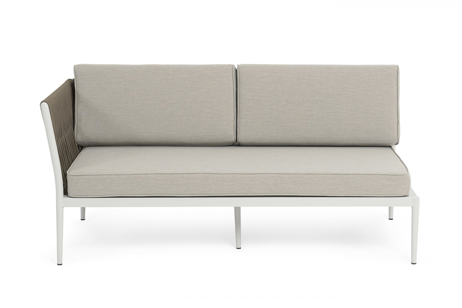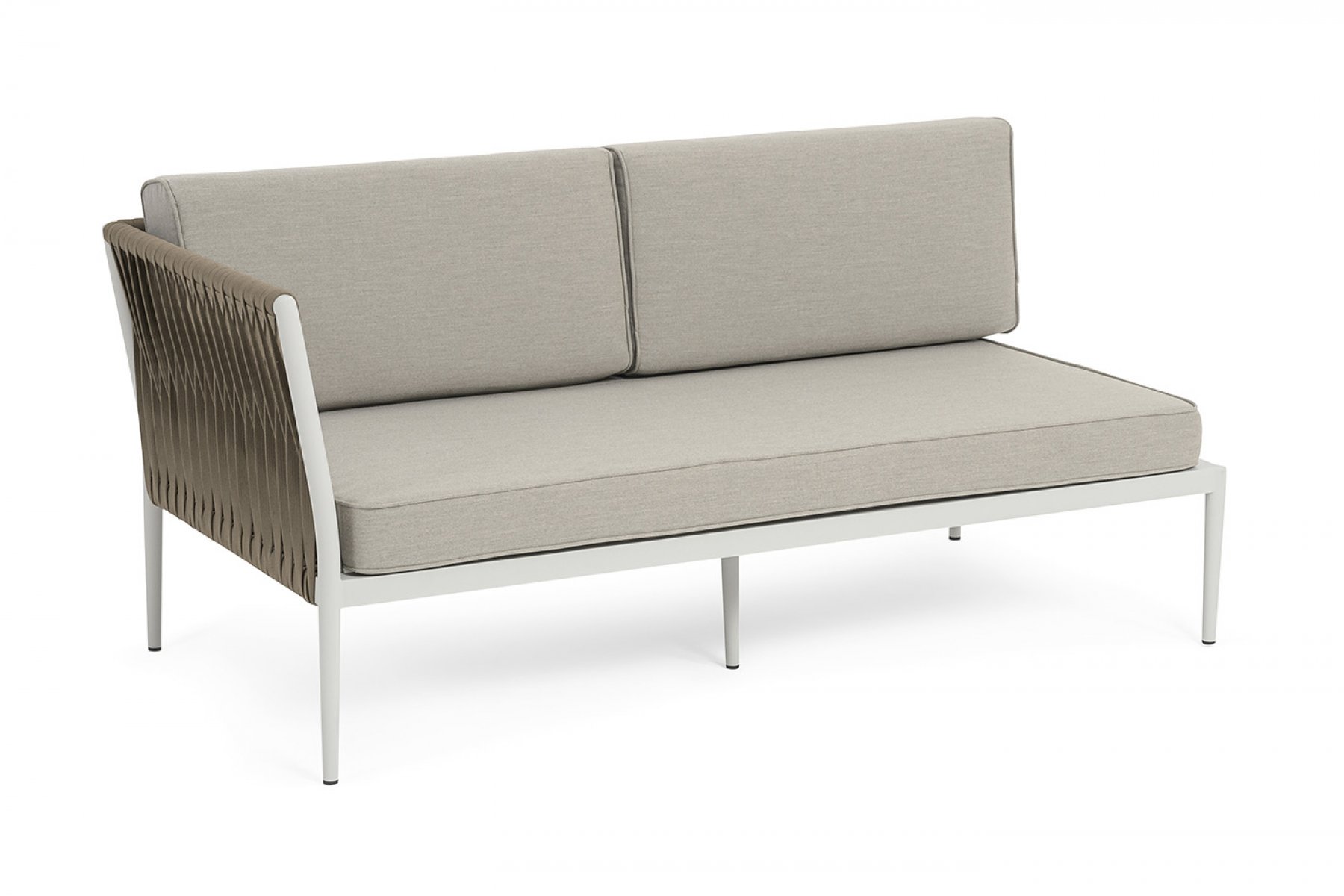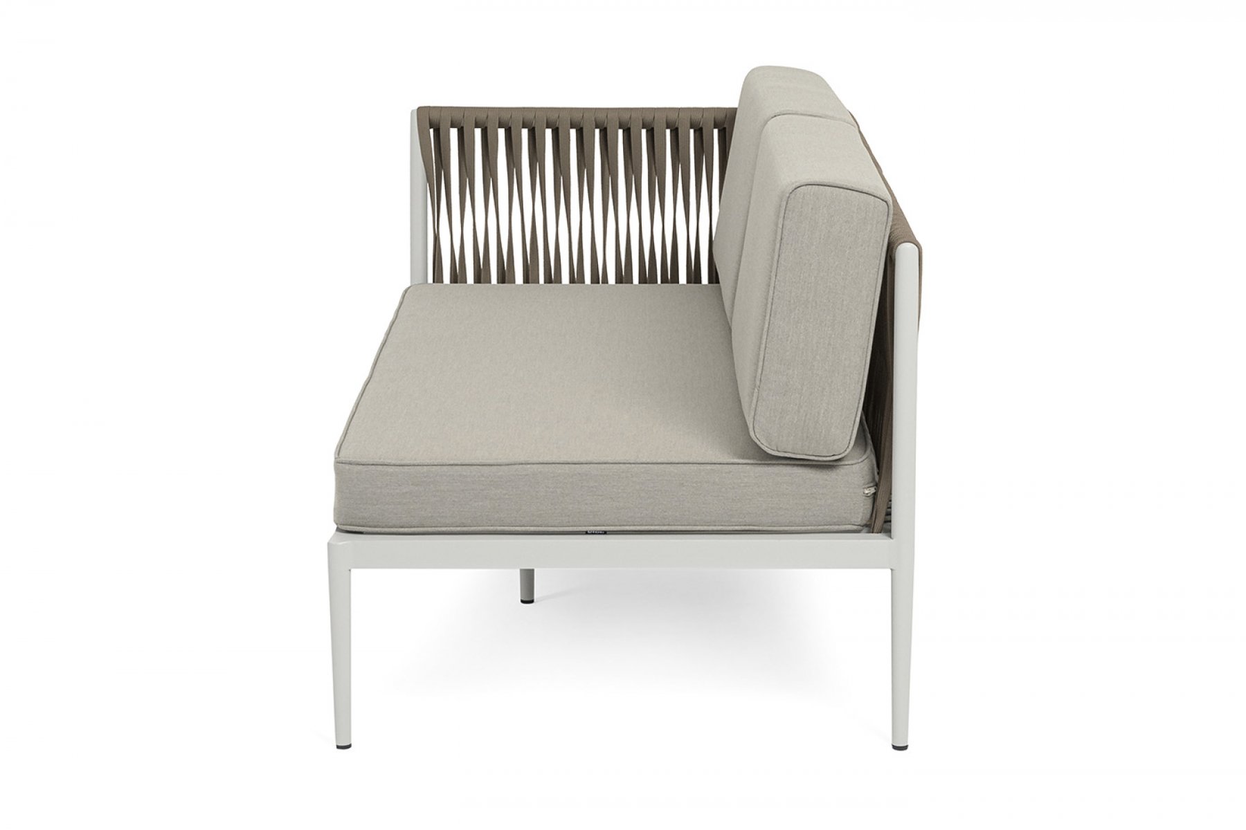 "Касабланка" правый модуль плетеный из роупа, каркас алюминий светло-серый (RAL7035) муар, роуп серо-коричневый 23мм, ткань бежевая 15052