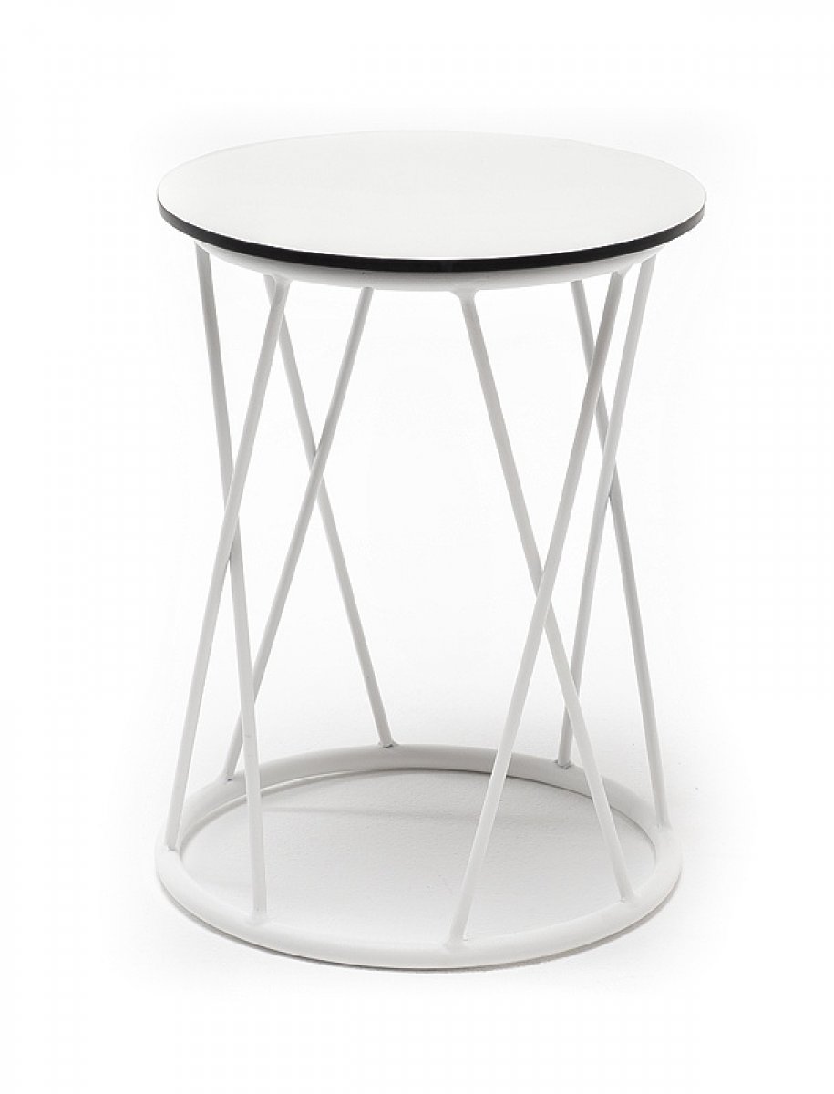 "Колумбия" журнальный стол из HPL круглый Ø40 H55, каркас из стали белый, цвет столешницы "молочный"
