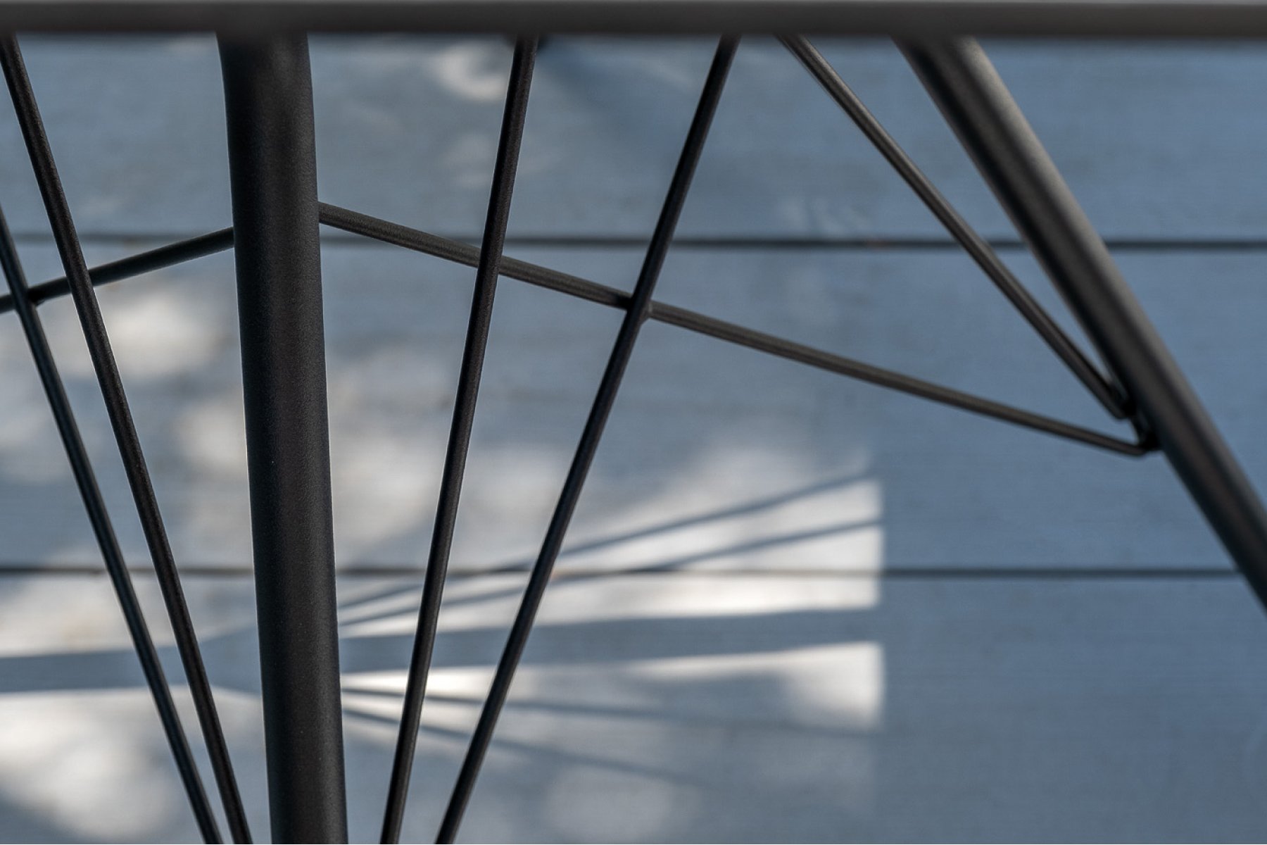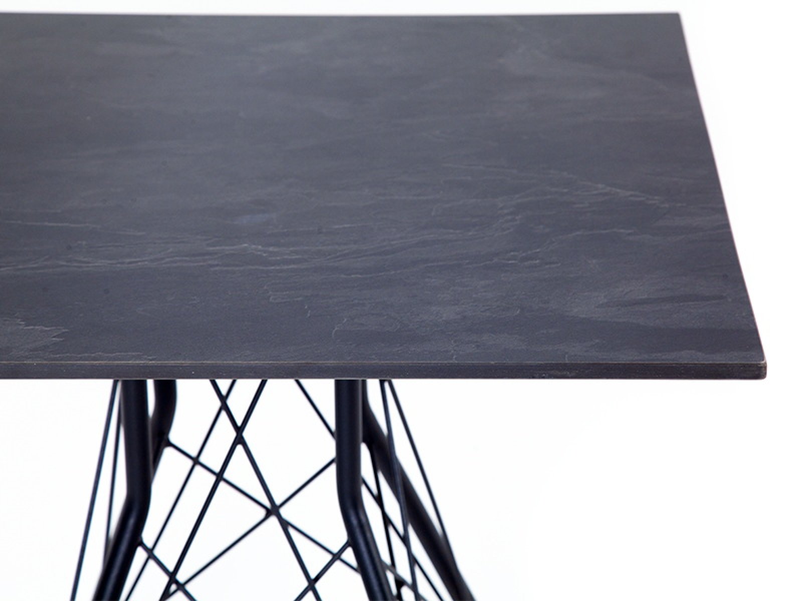 Каркас изготовлен из стали, окрашенной в матовый черный цвет. В качестве столешницы использован высококачественный монолитный компакт-пластика HPL, толщиной 12 мм. Цвет поверхности – «серый гранит».