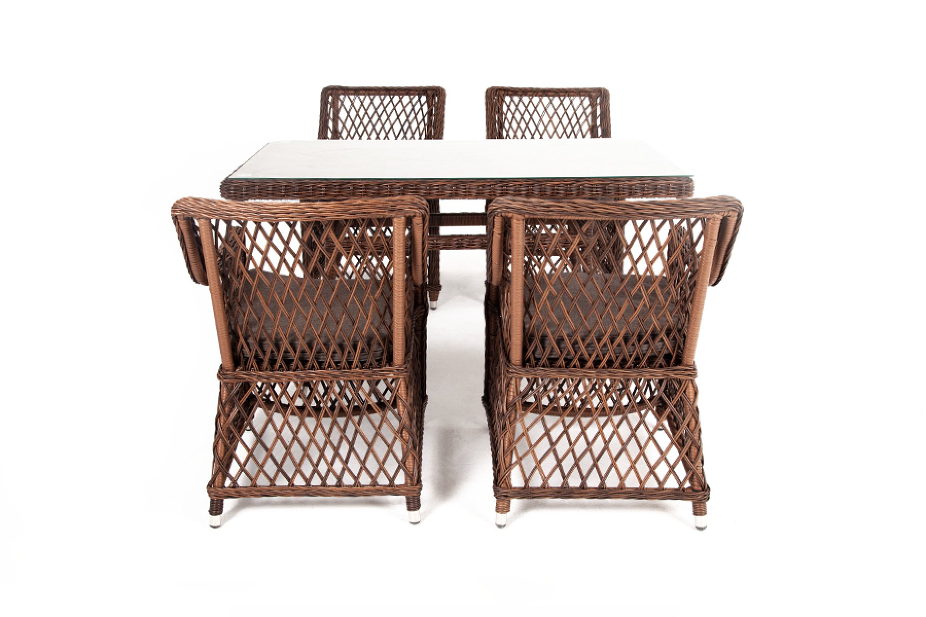 Вы можете приобрести "Латте" плетеный стол из искусственного ротанга 140х80см, цвет коричневый 1шт. 1 400Х800Х750, "Латте" плетеное кресло из искусственного ротанга, цвет коричневый 4шт. 550Х660Х850,
