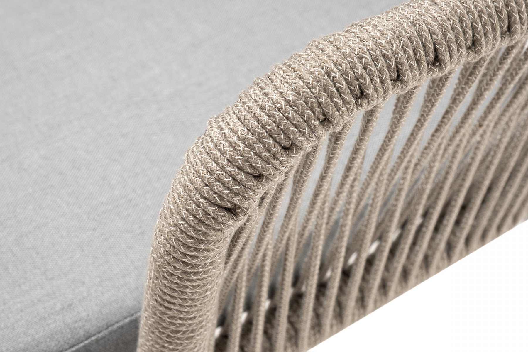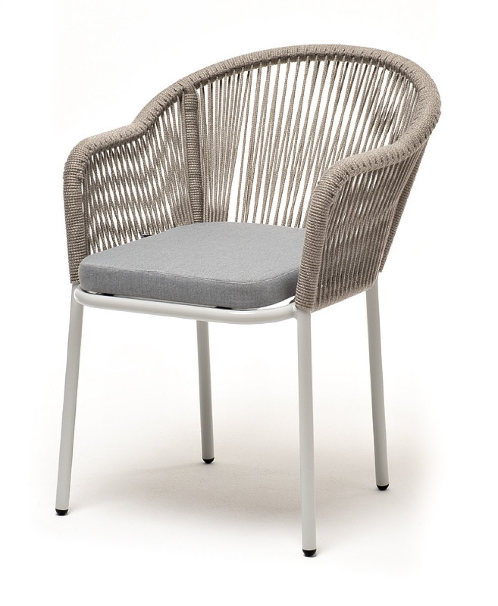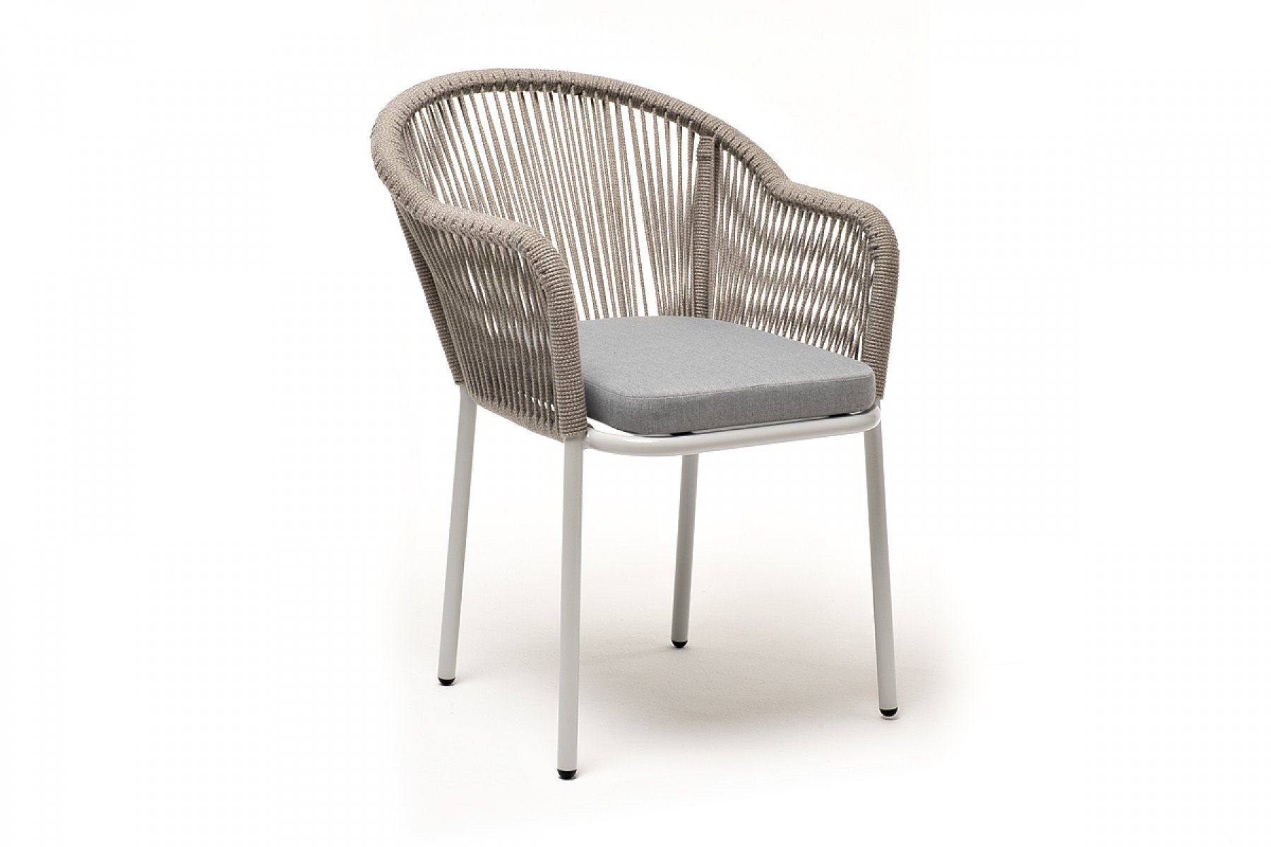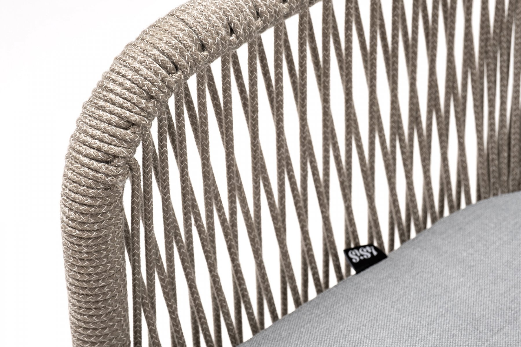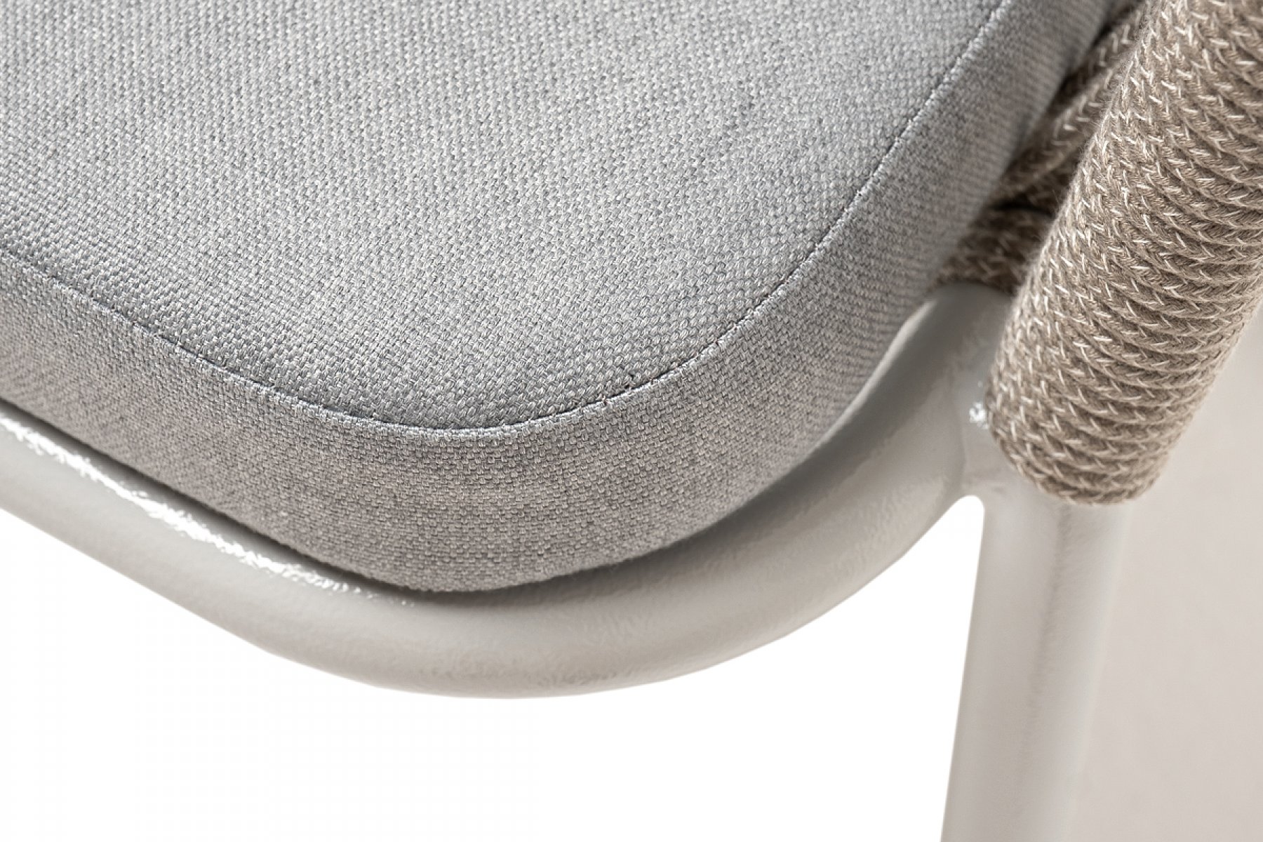 "Лион" стул плетеный из роупа, каркас алюминий светло-серый (RAL7035) муар, роуп серый меланж круглый, ткань светло-серая