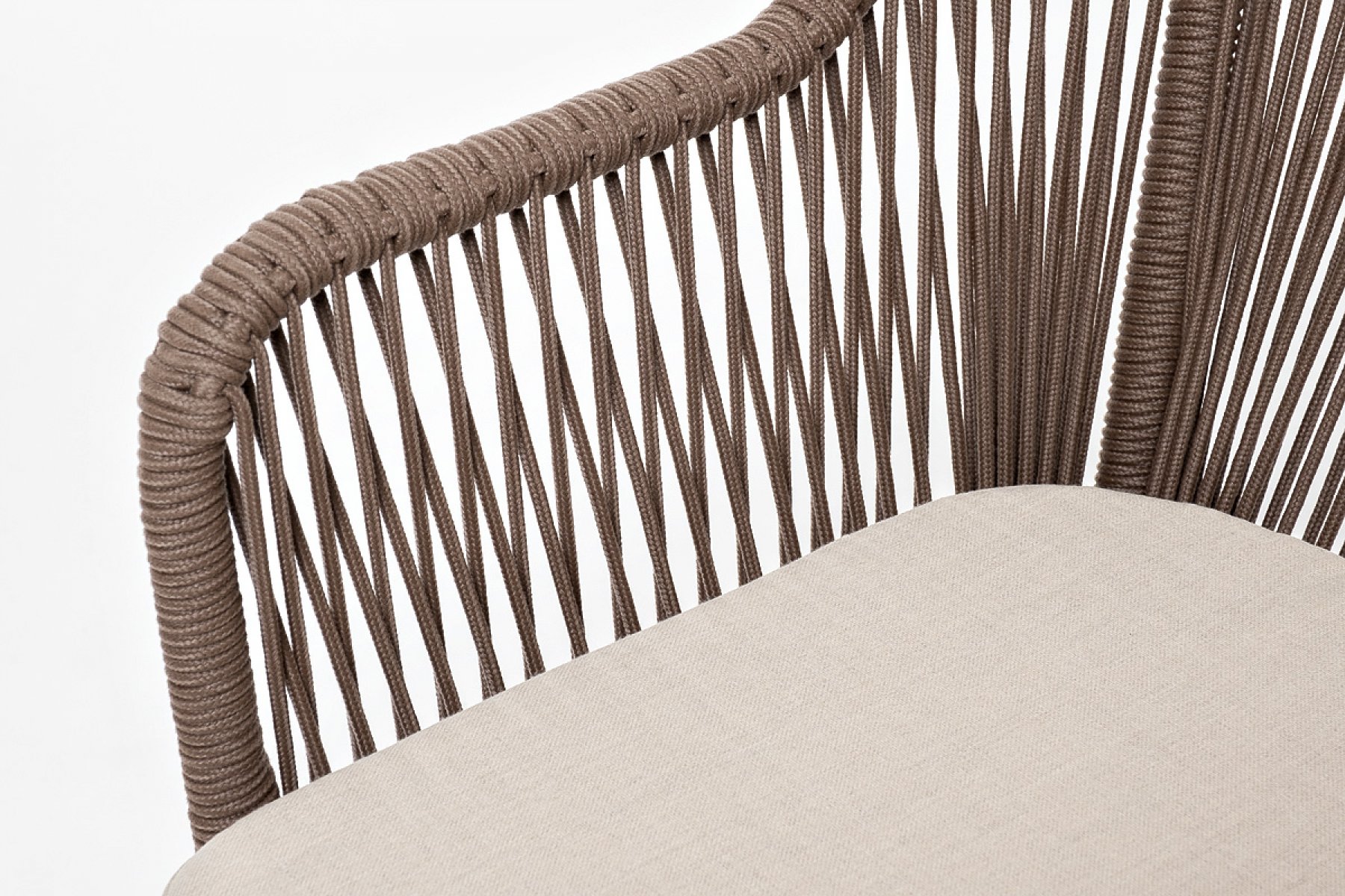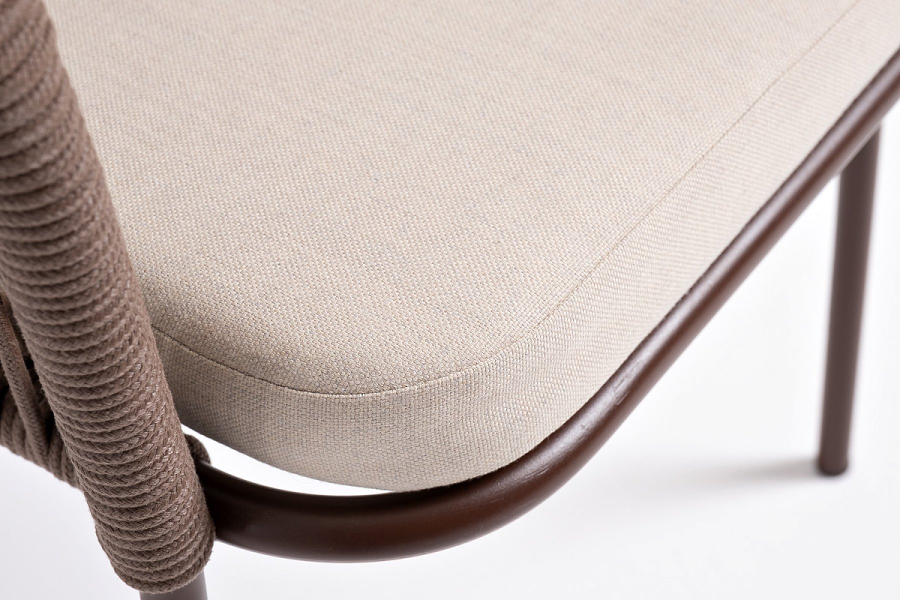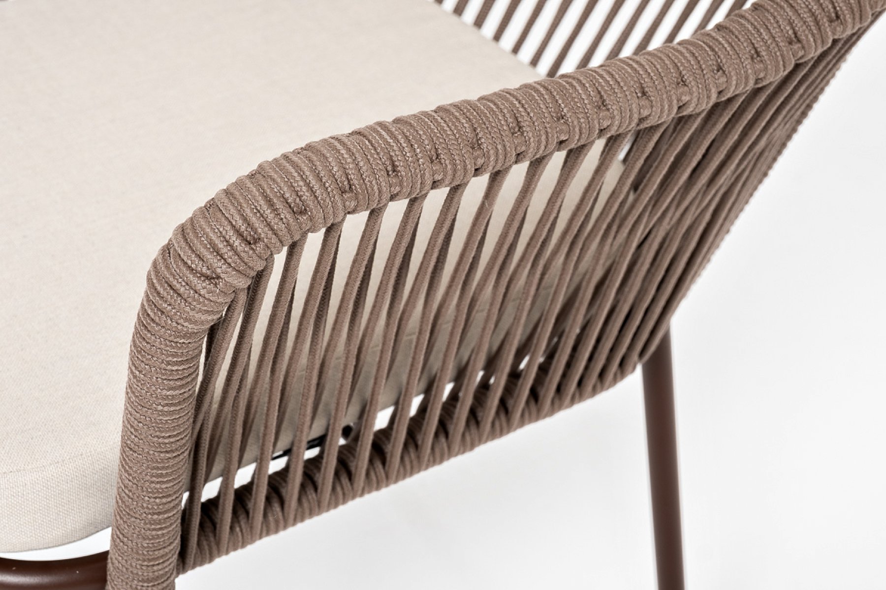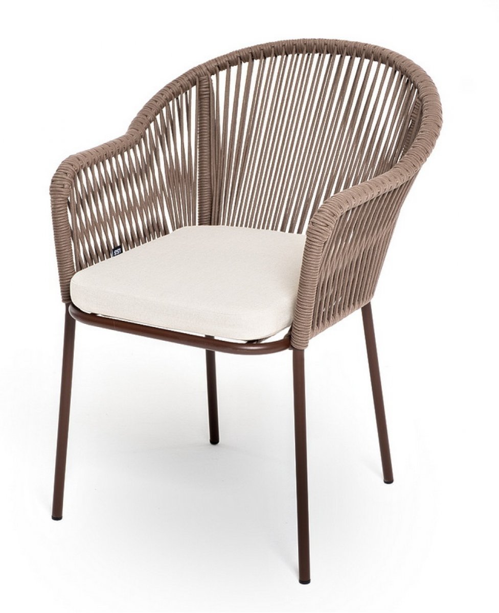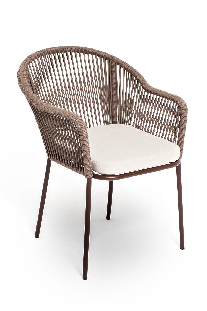 "Лион" стул плетеный из роупа, каркас из стали коричневый (RAL8016) муар, роуп коричневый круглый, ткань бежевая 15052