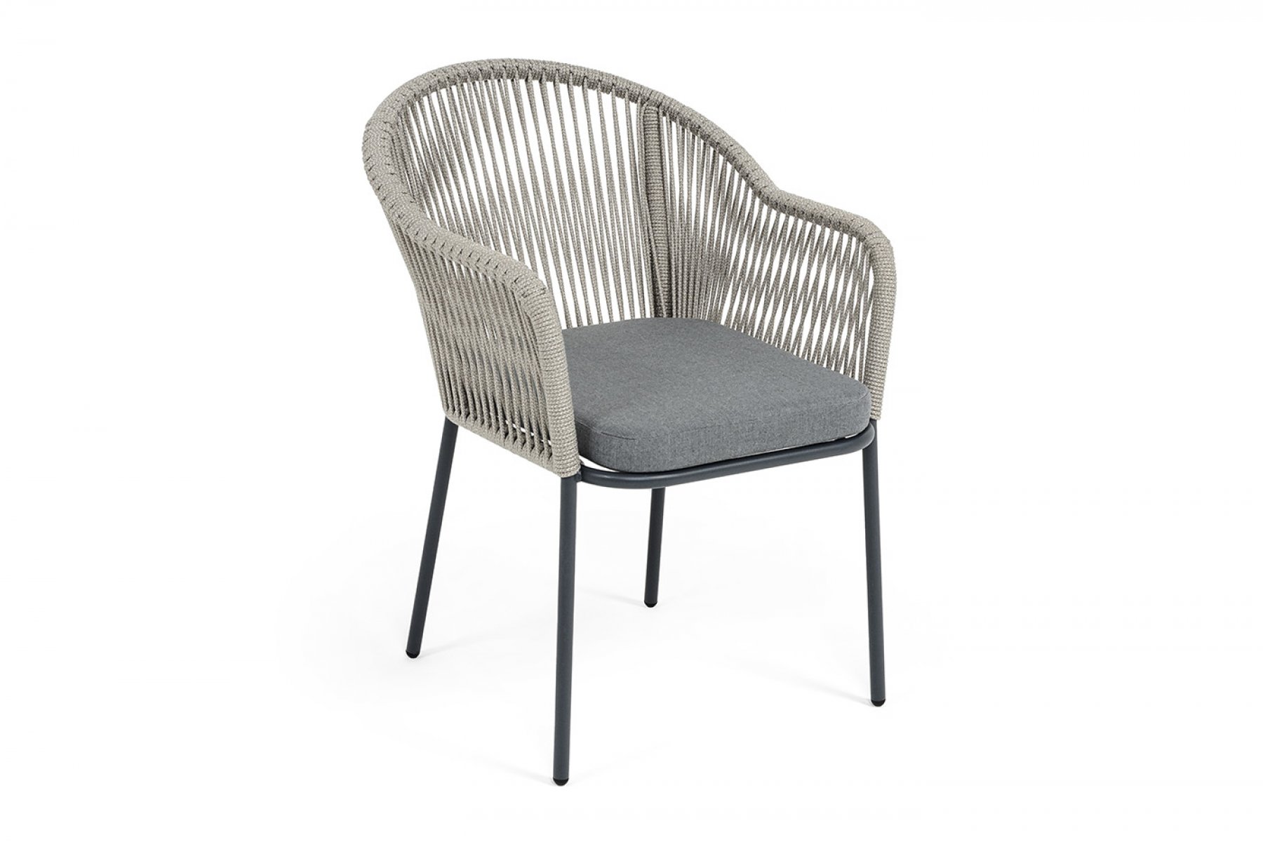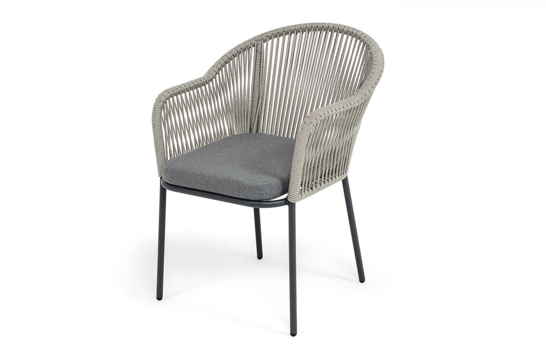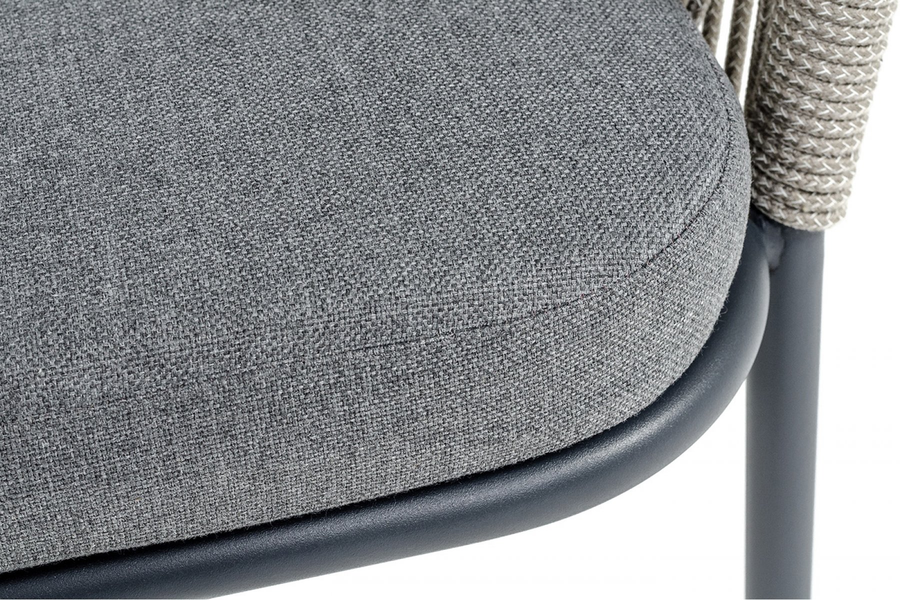 "Лион" стул плетеный из роупа, каркас из стали темно-серый (RAL7024) муар, роуп серый меланж круглый, ткань серая 017