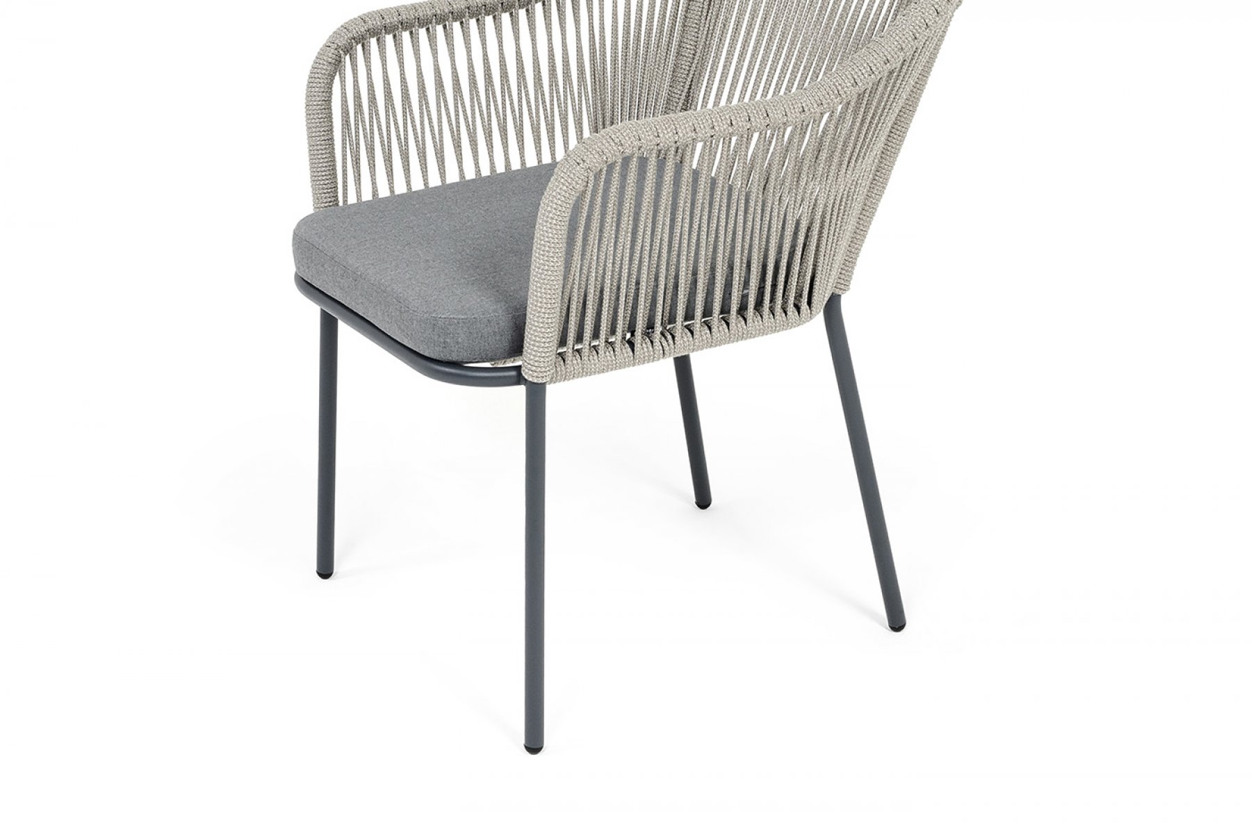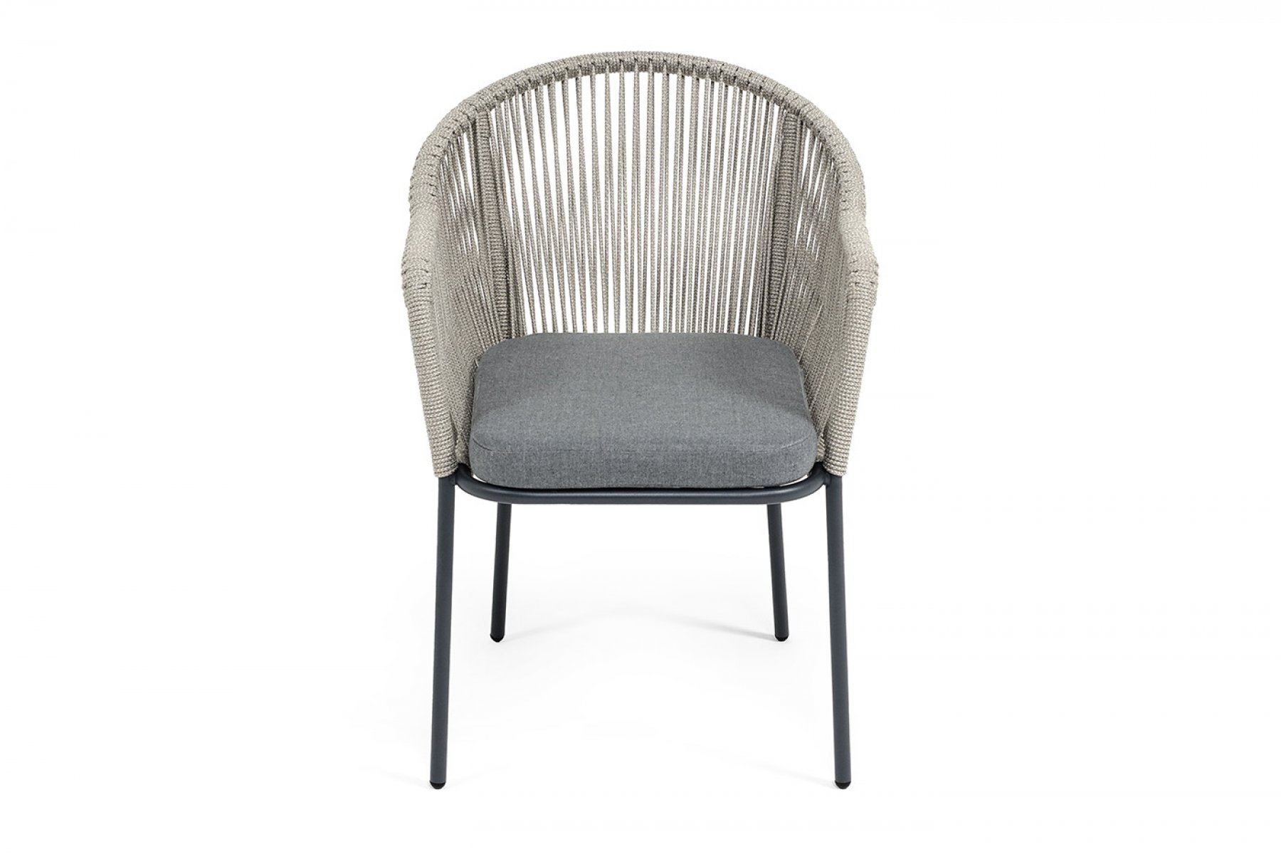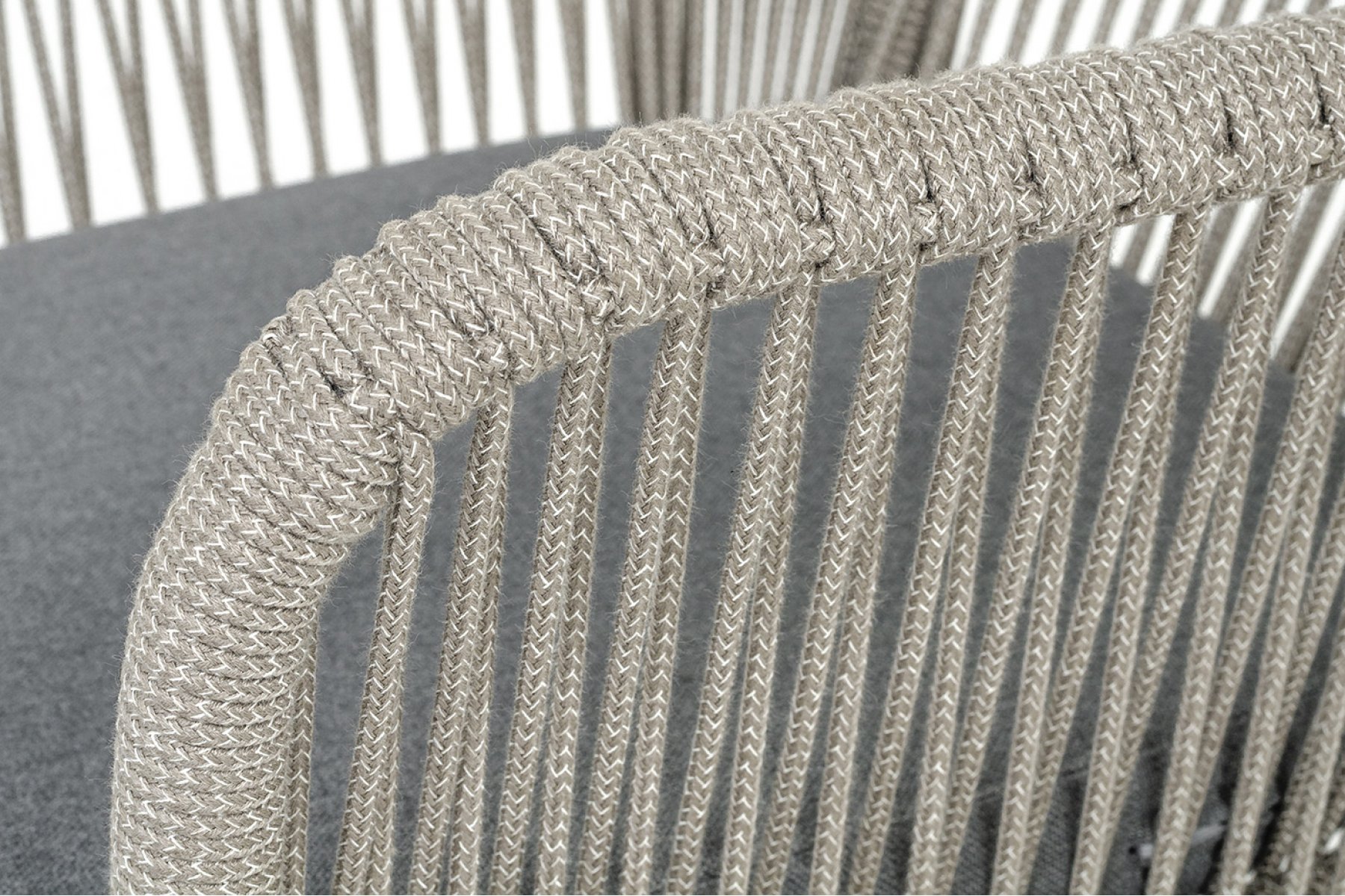 "Лион" стул плетеный из роупа, каркас из стали темно-серый (RAL7024) муар, роуп серый меланж круглый, ткань серая 017