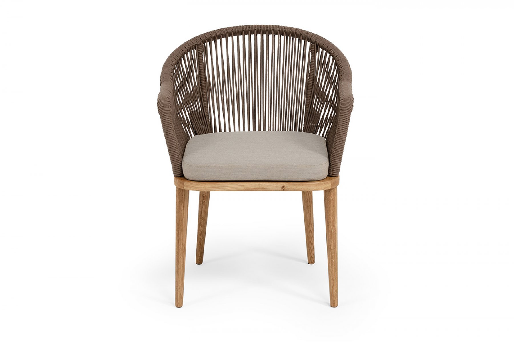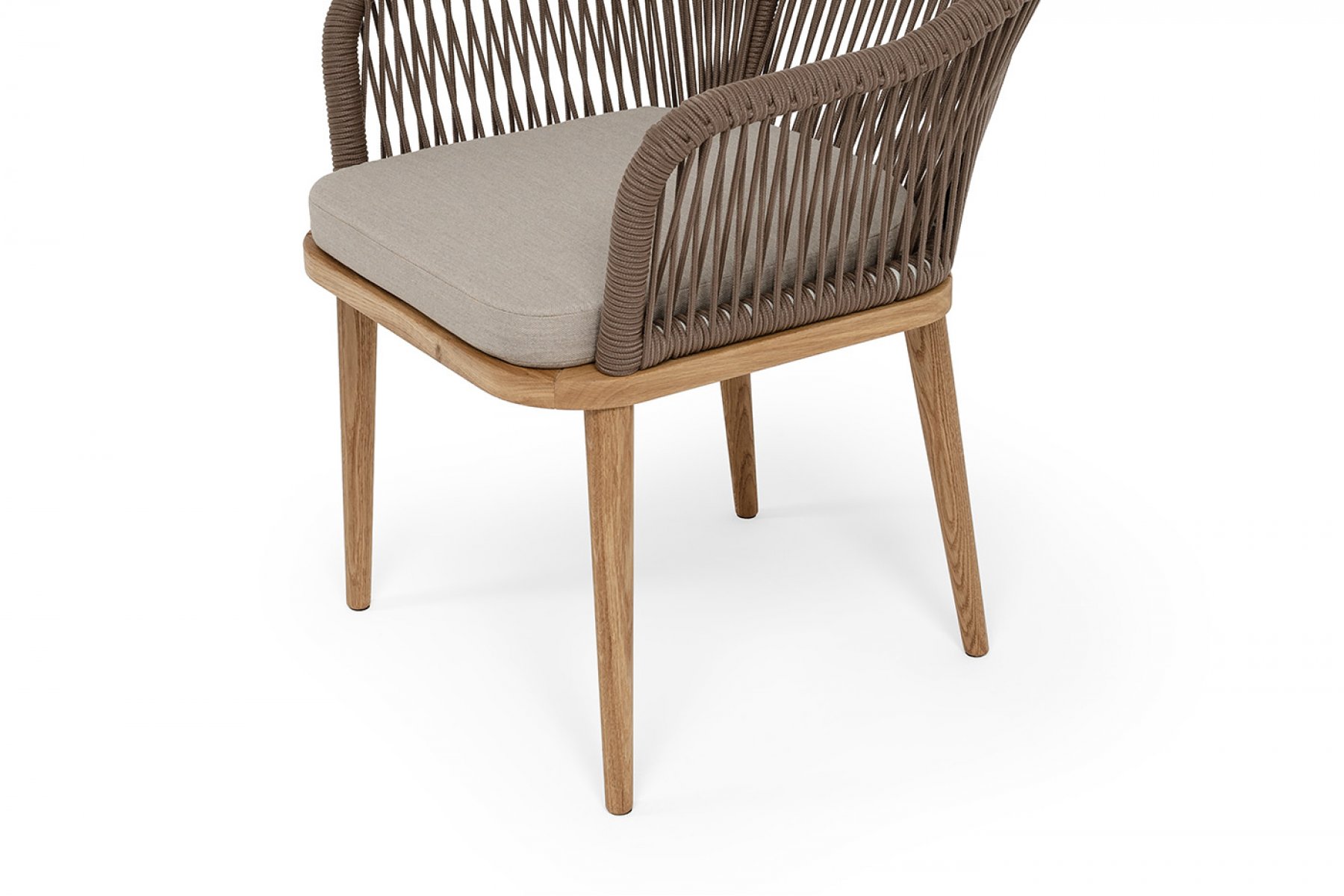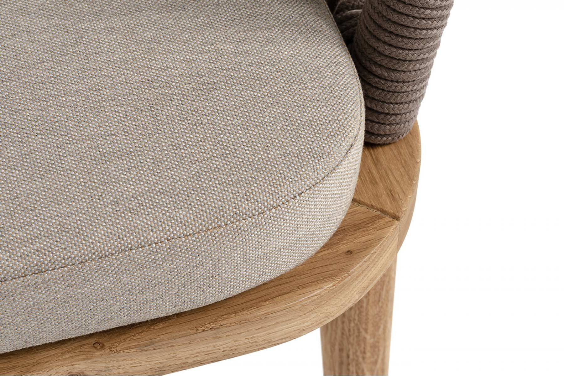 "Лион" стул плетеный из роупа, основание дуб, роуп коричневый круглый, ткань бежевая 15052