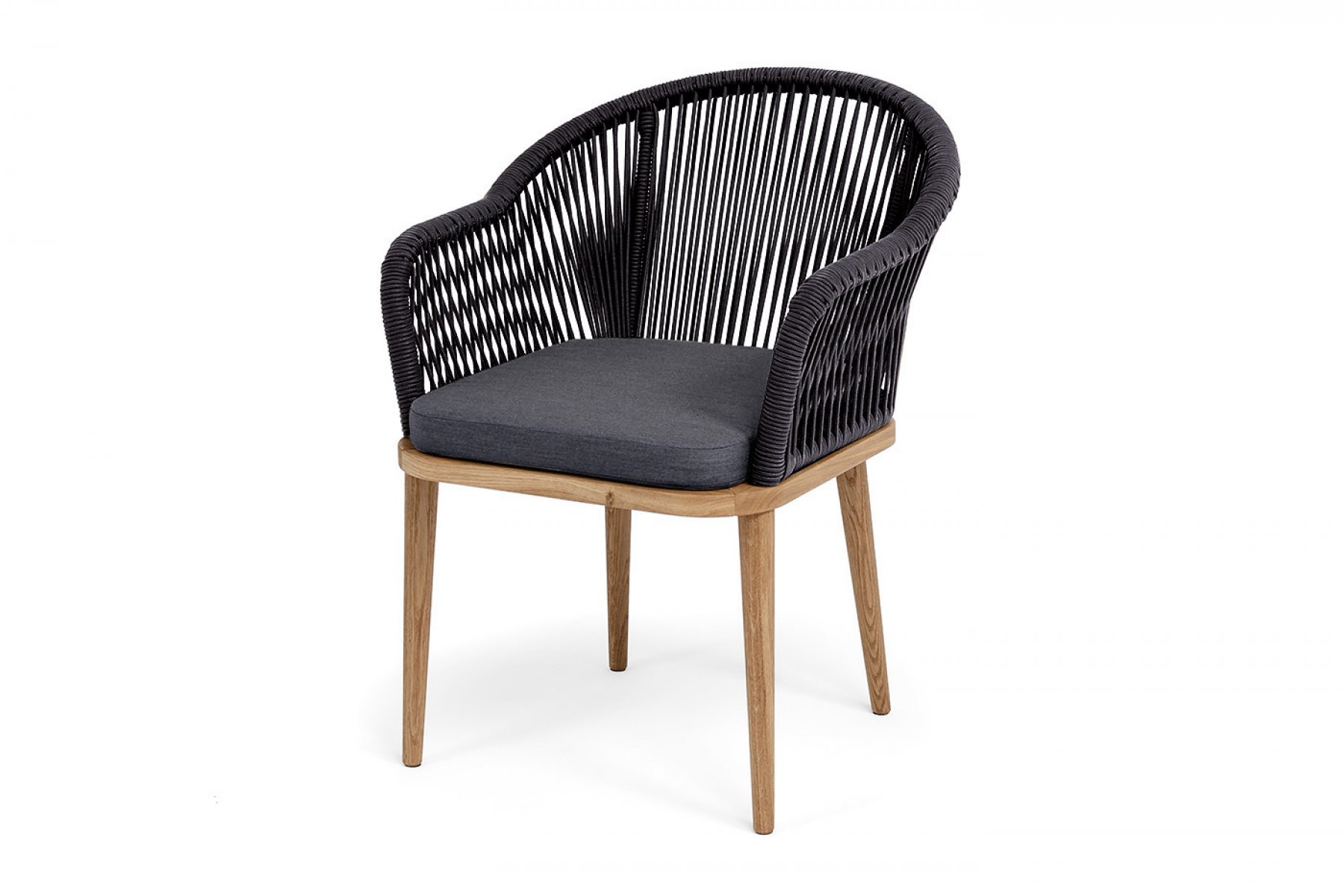 "Лион" стул плетеный из роупа, основание дуб, роуп темно-серый круглый, ткань темно-серая 027