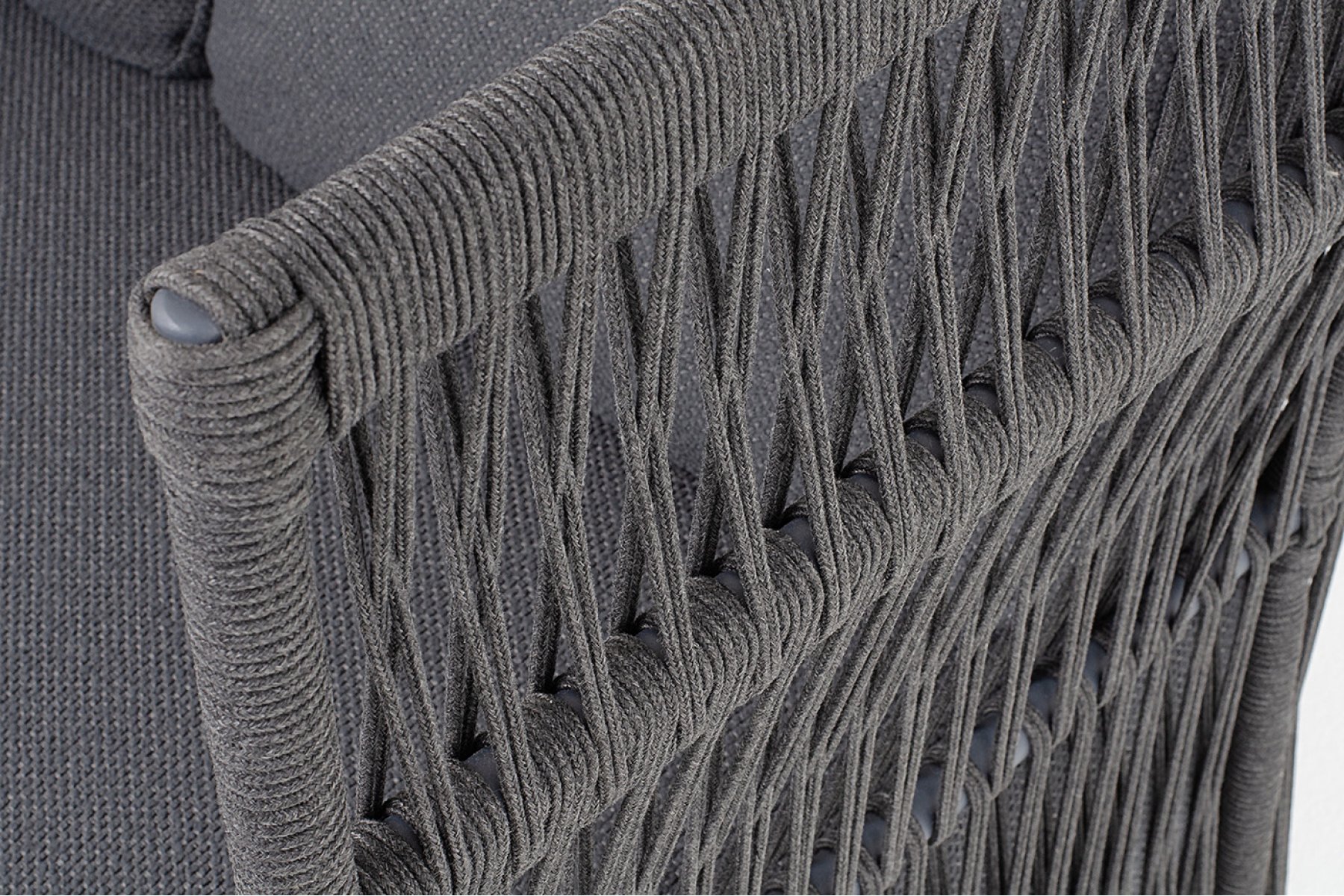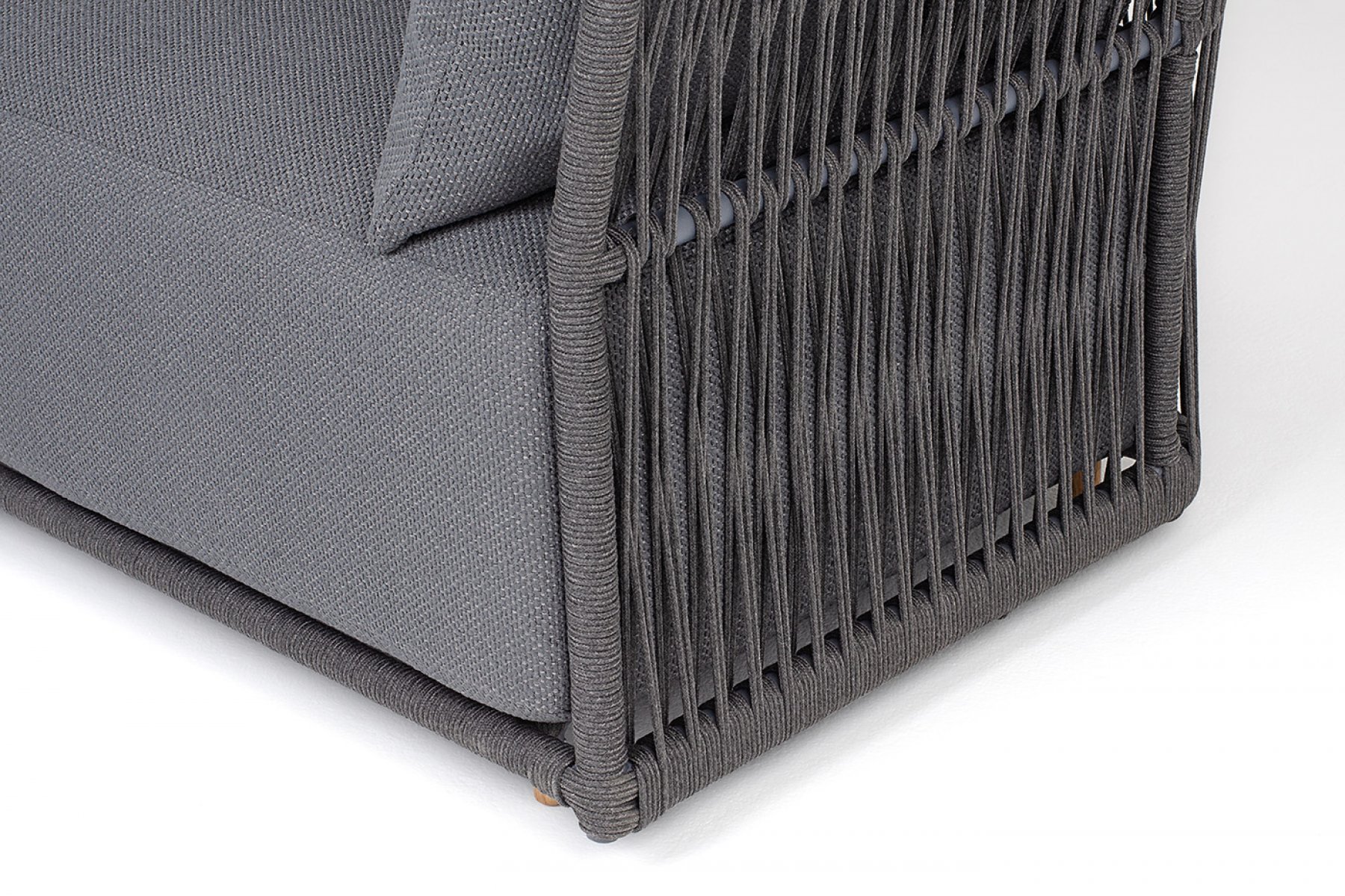 "Лугано" диван 3-местный плетеный из роупа, каркас алюминий темно-серый (RAL7024) муар, роуп темно-серый круглый, ткань темно-серая YB25-0027