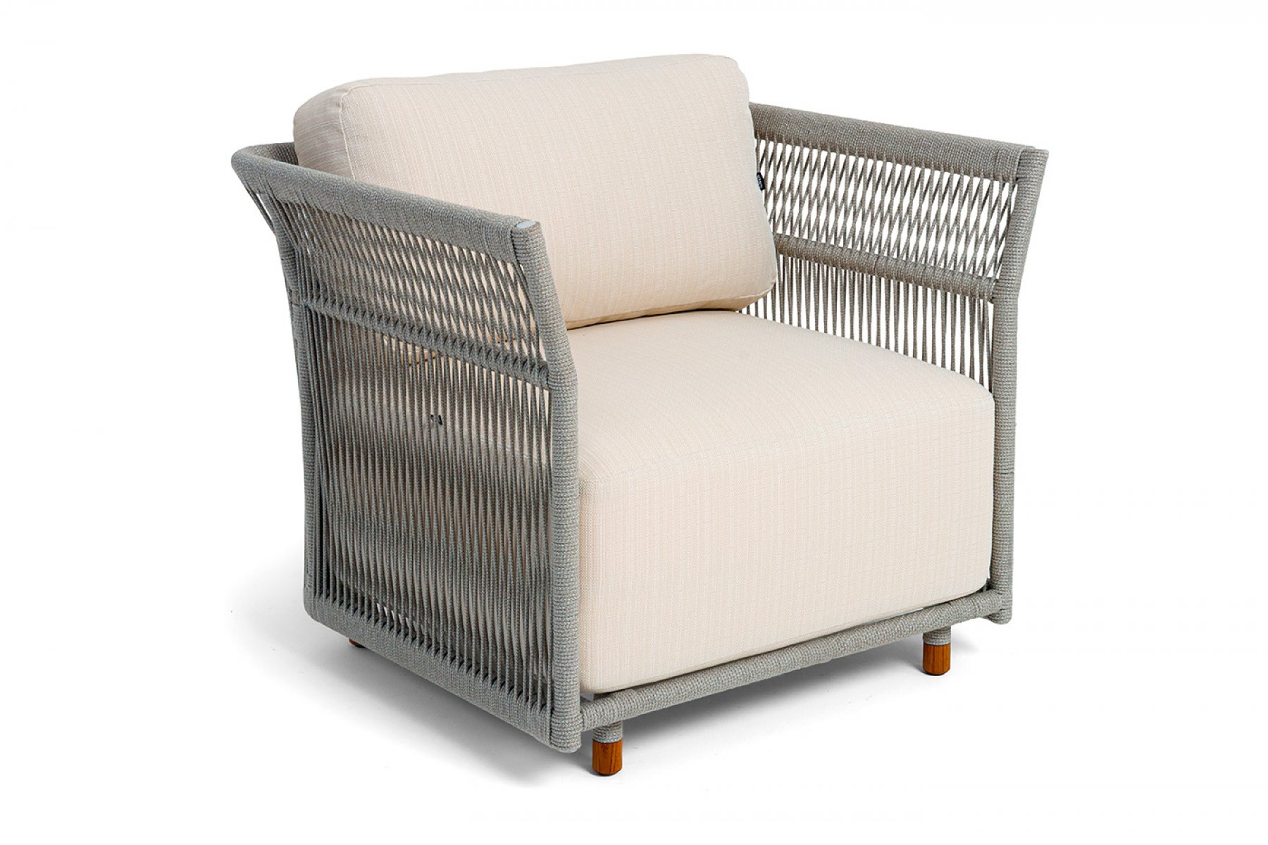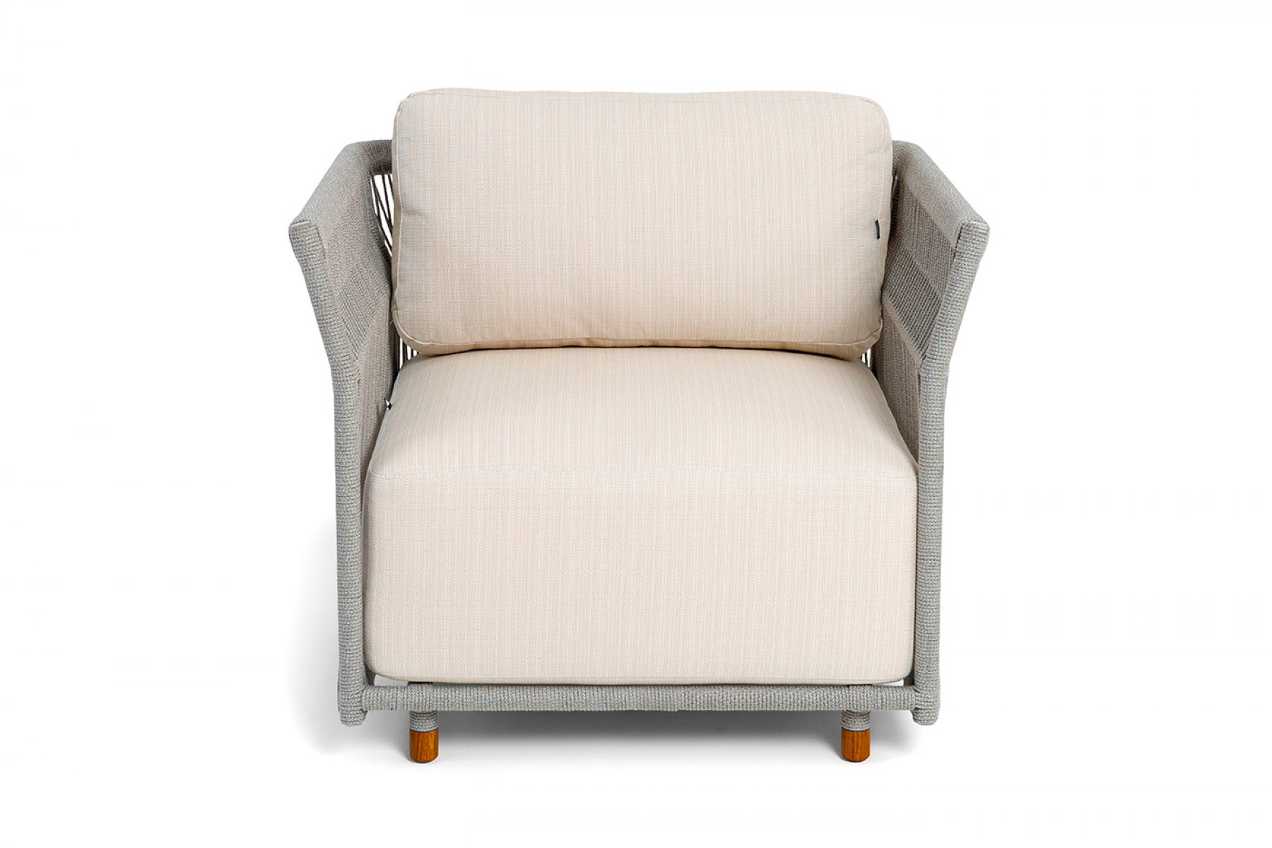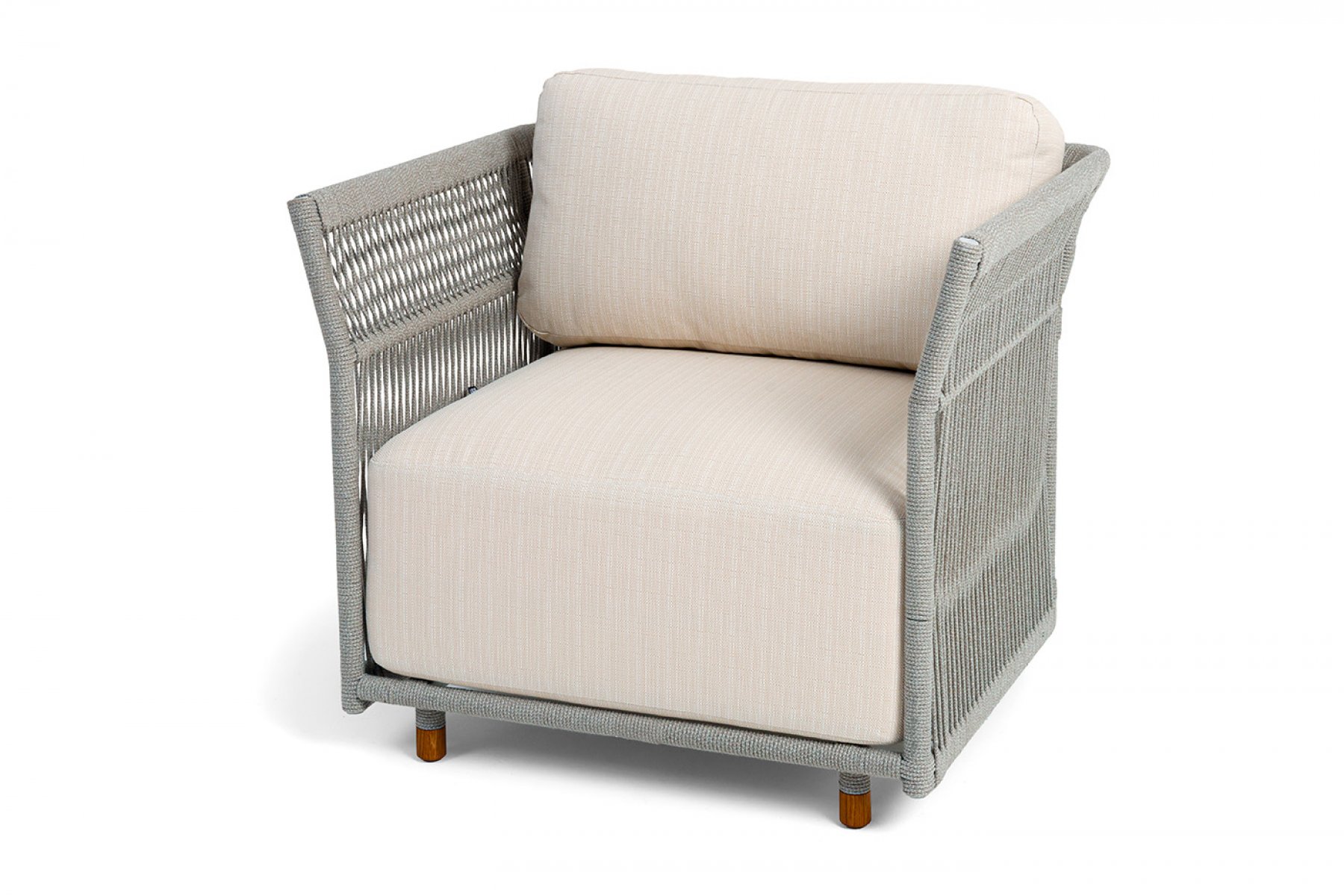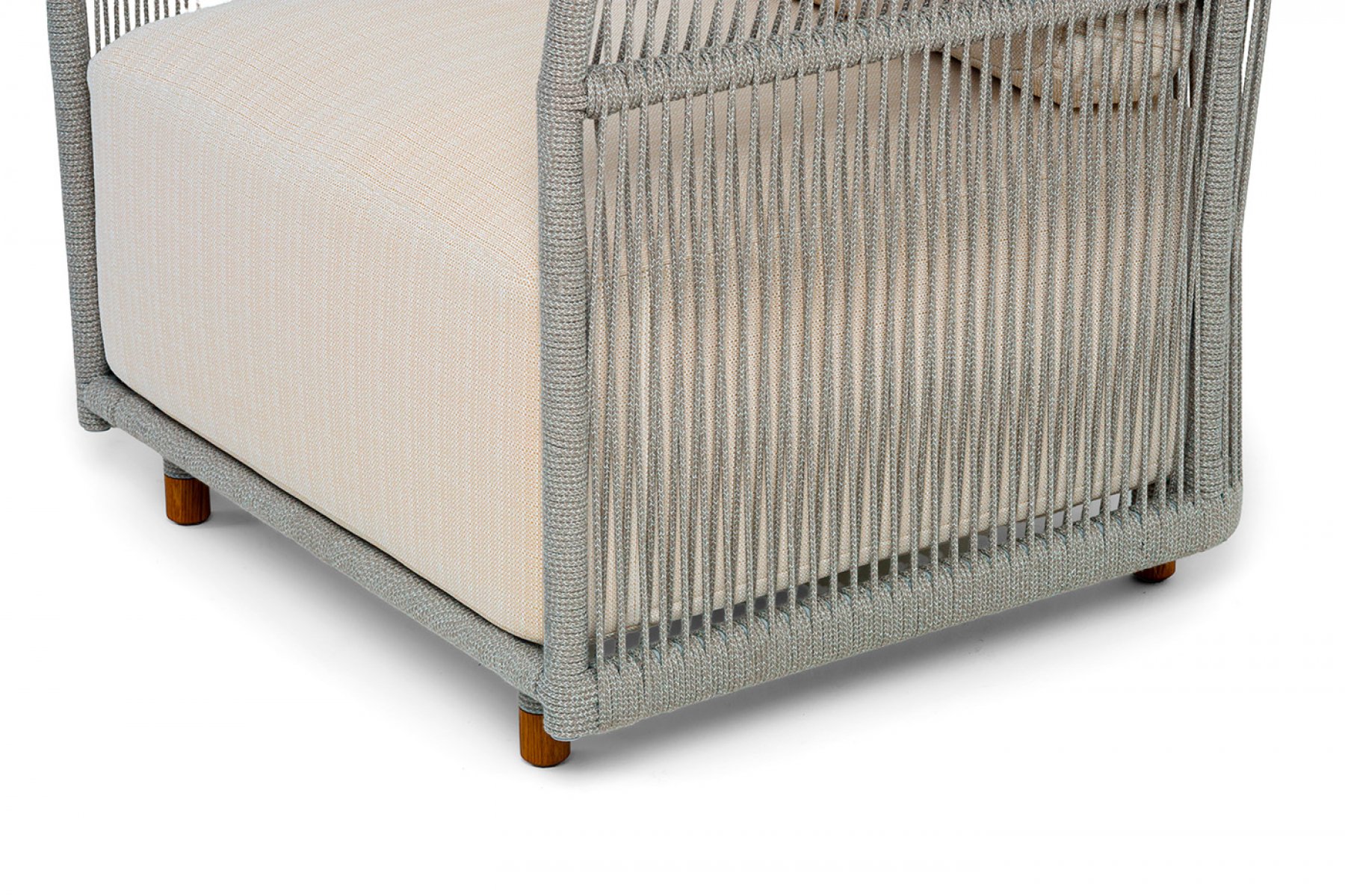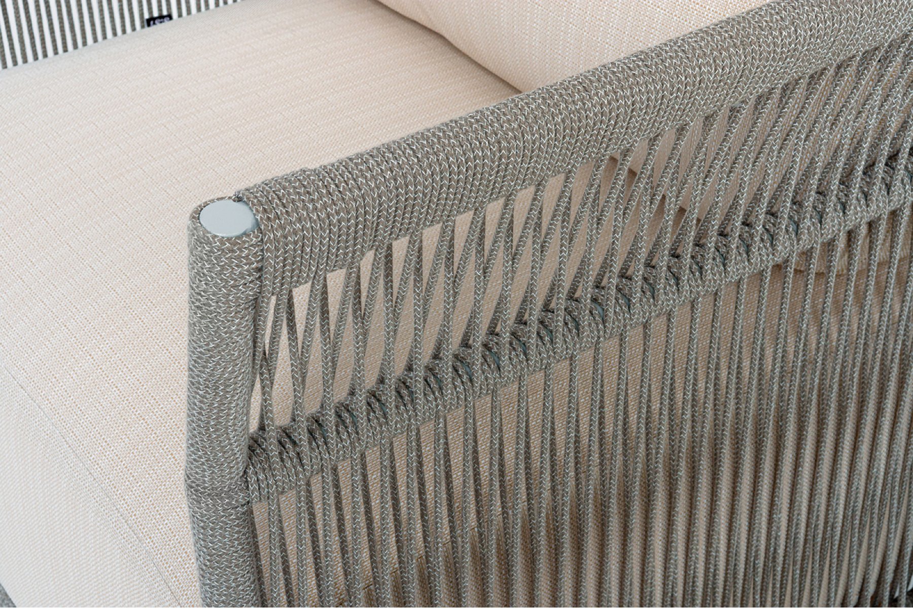 "Лугано" кресло плетеное из роупа, каркас алюминий светло-серый (RAL7035) муар, роуп серый меланж круглый, ткань Mossle светло-бежевая