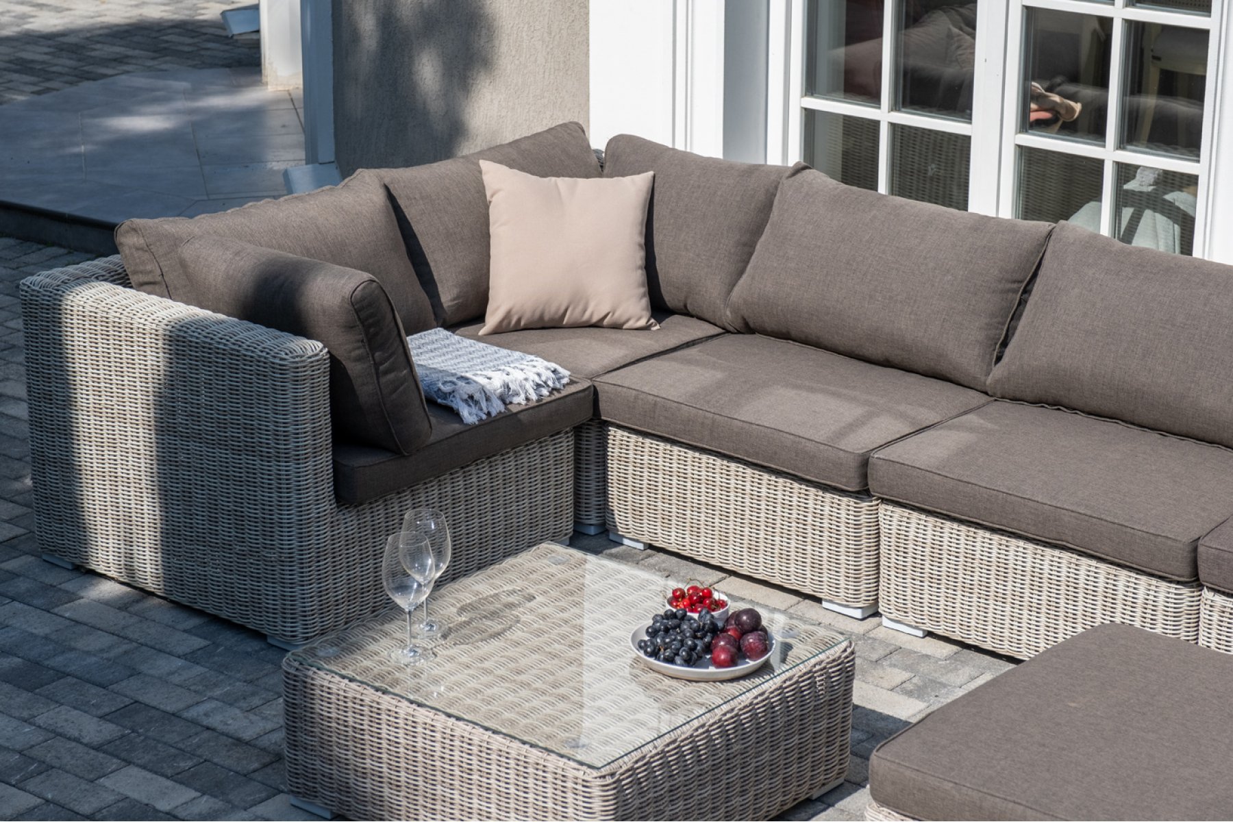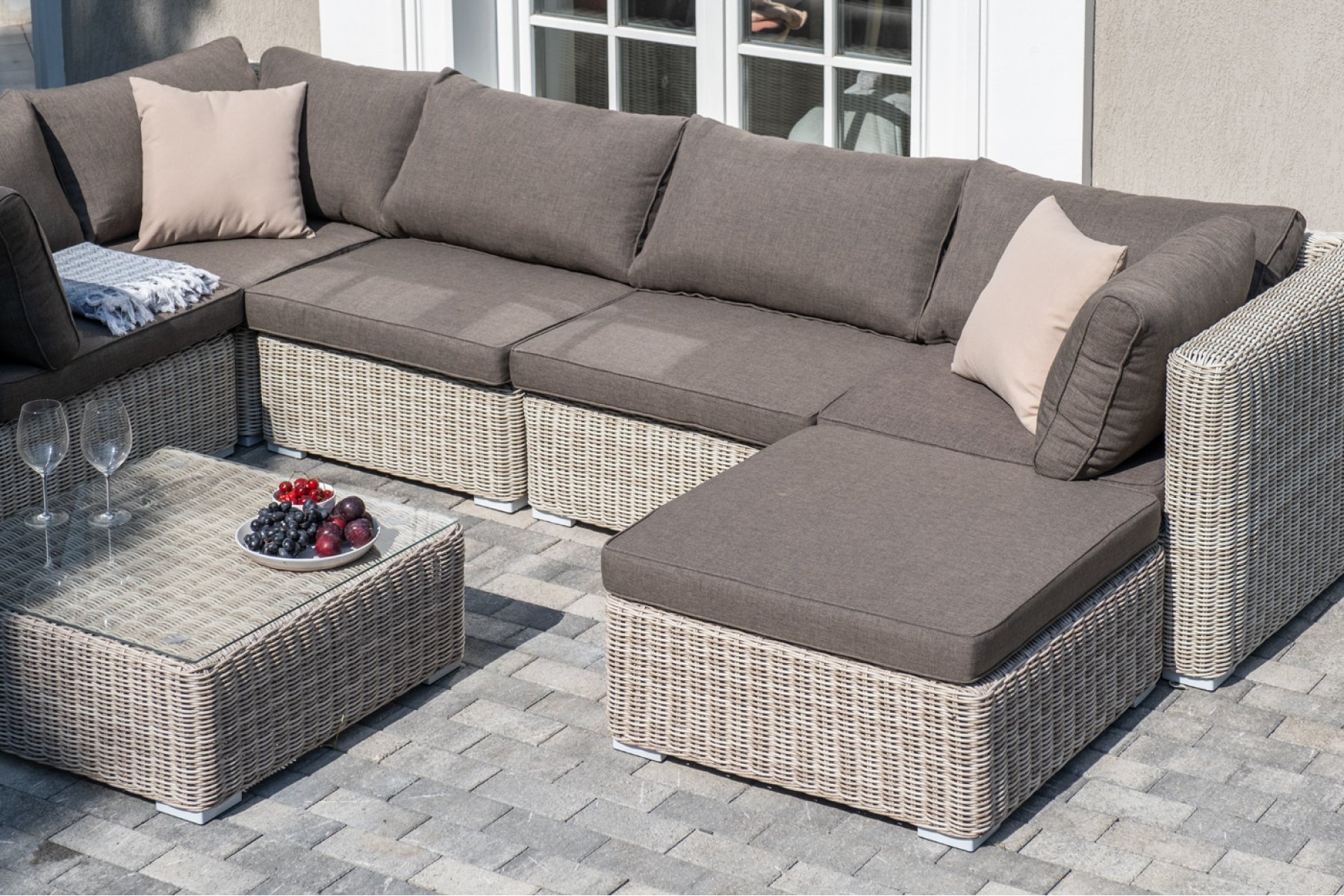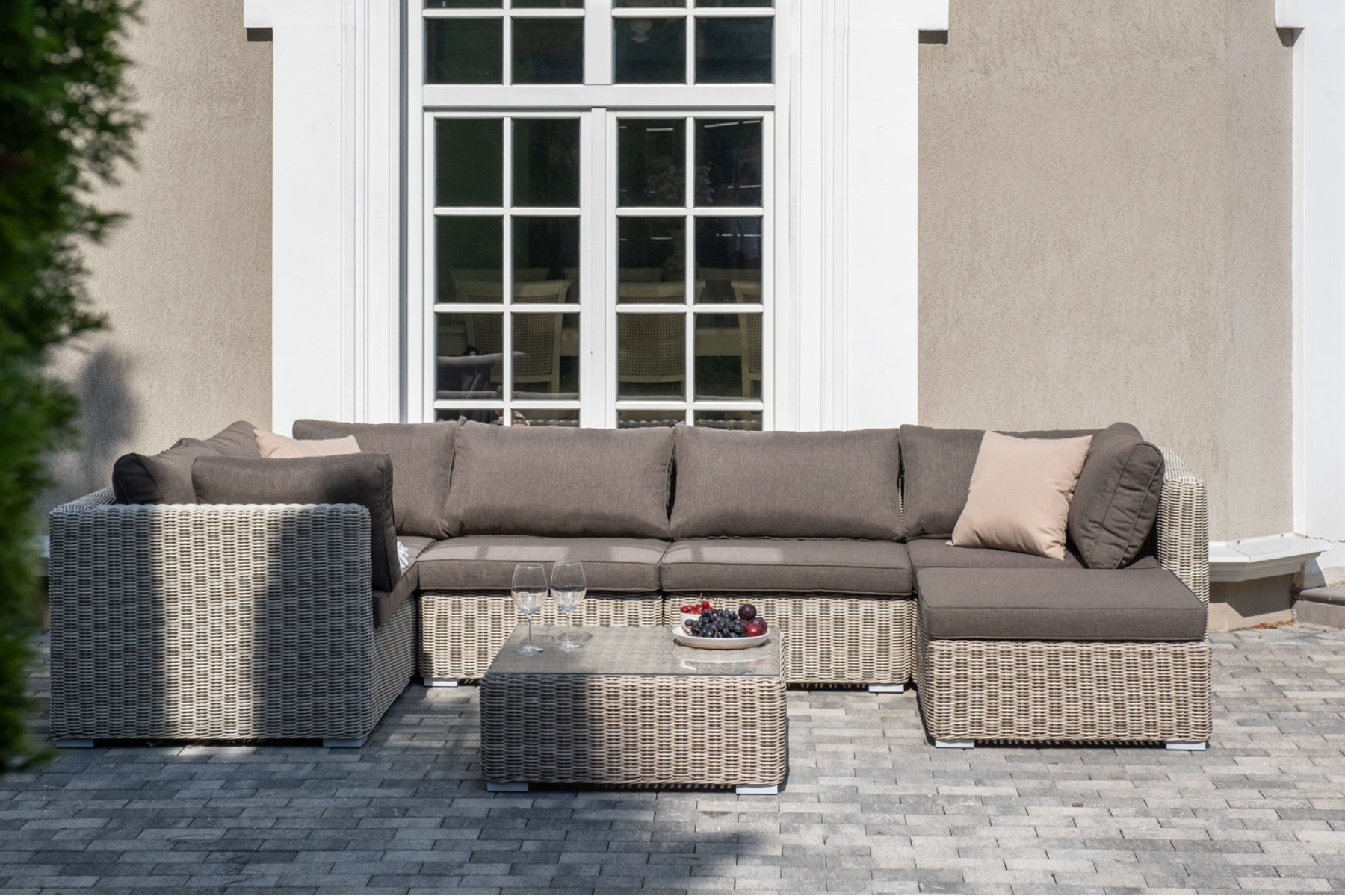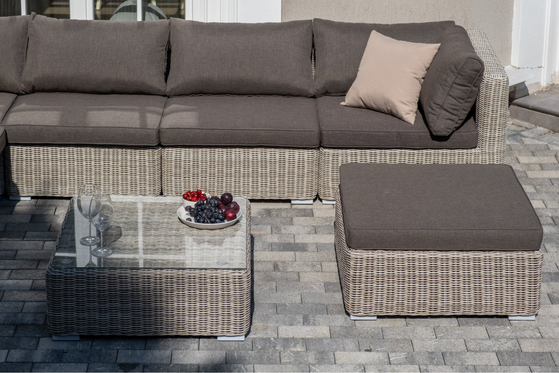 Лаунж-зона из искусственного ротанга бежевого цвета «Лунго» производит невероятное впечатление и окунает в мир уюта, благодаря продуманному и лаконичному дизайну.