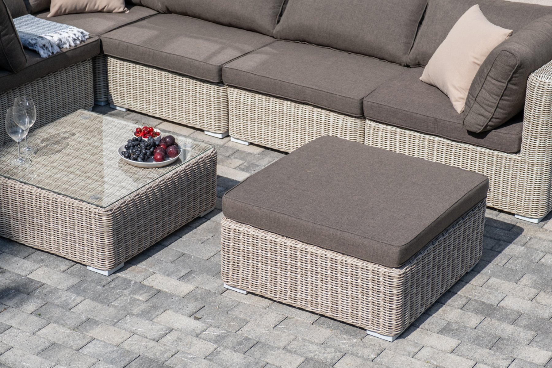 - оттоман "Лунго" модуль диванный угловой с подушками, цвет бежевый 3шт. 860Х860Х650, "Лунго" модуль диванный прямой с подушками, цвет бежевый 2шт. 740Х860Х650, "Лунго" журнальный столик плетеный, цвет бежевый 1шт. 740Х740Х300, "Лунго" плетеная оттоманка с подушкой, цвет бежевый 1шт. 740Х740Х380,