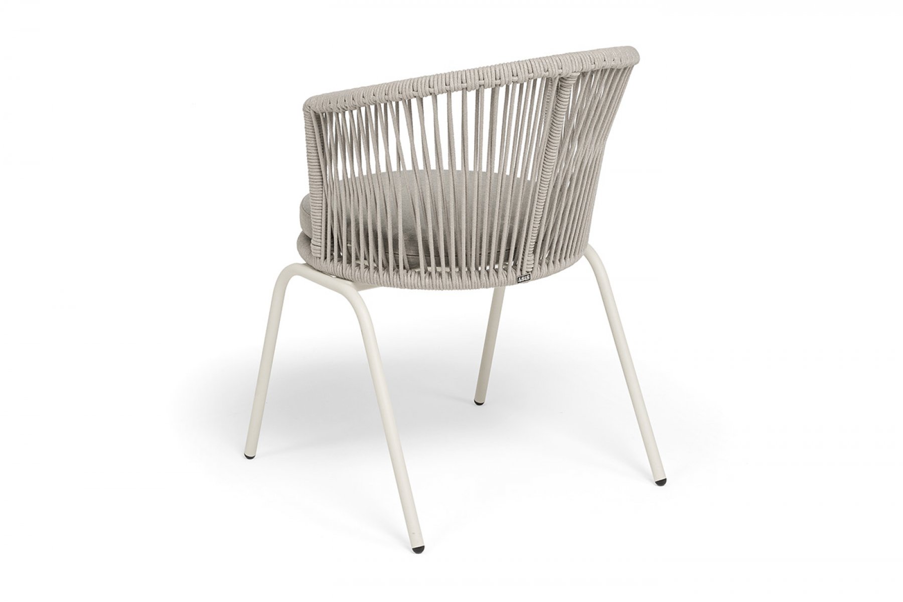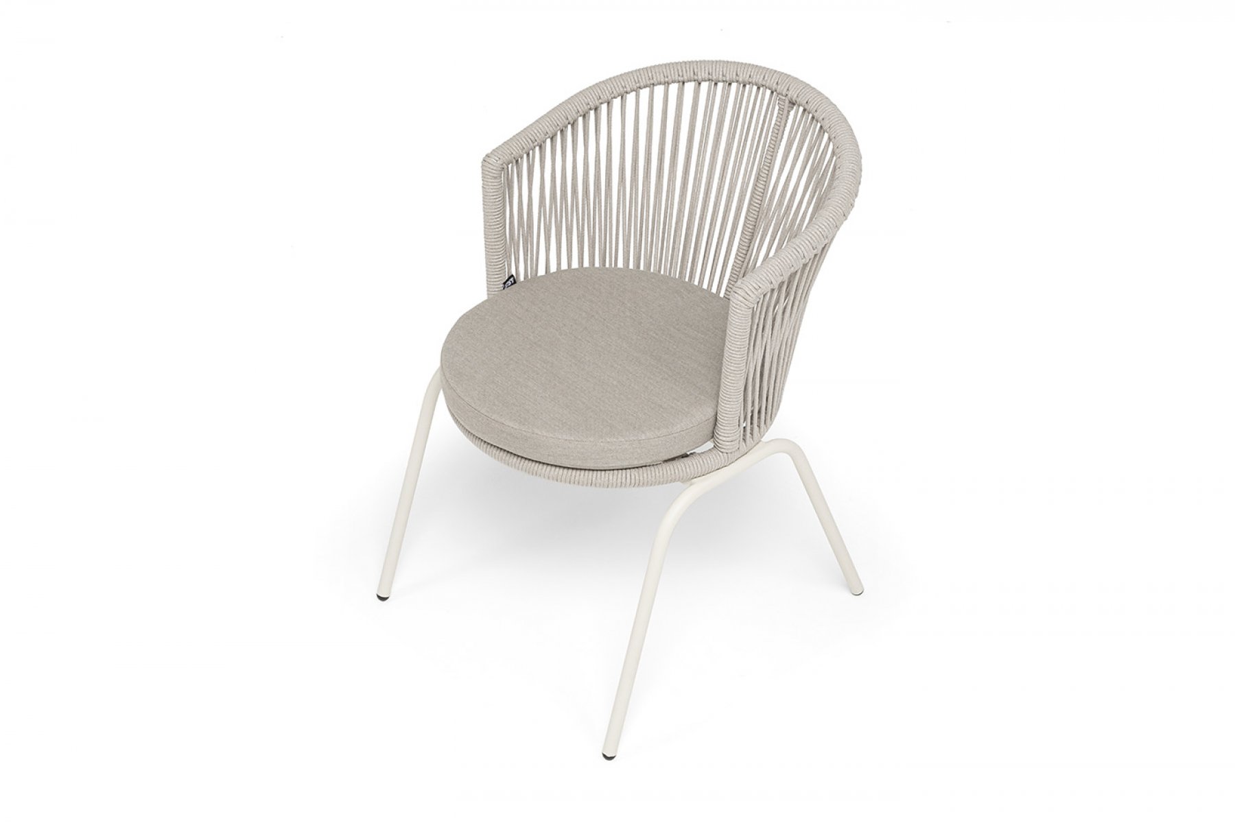"Люксембург" стул плетеный из роупа, каркас из стали (RAL1013) муар, роуп бежевый круглый, ткань бежевая 15052