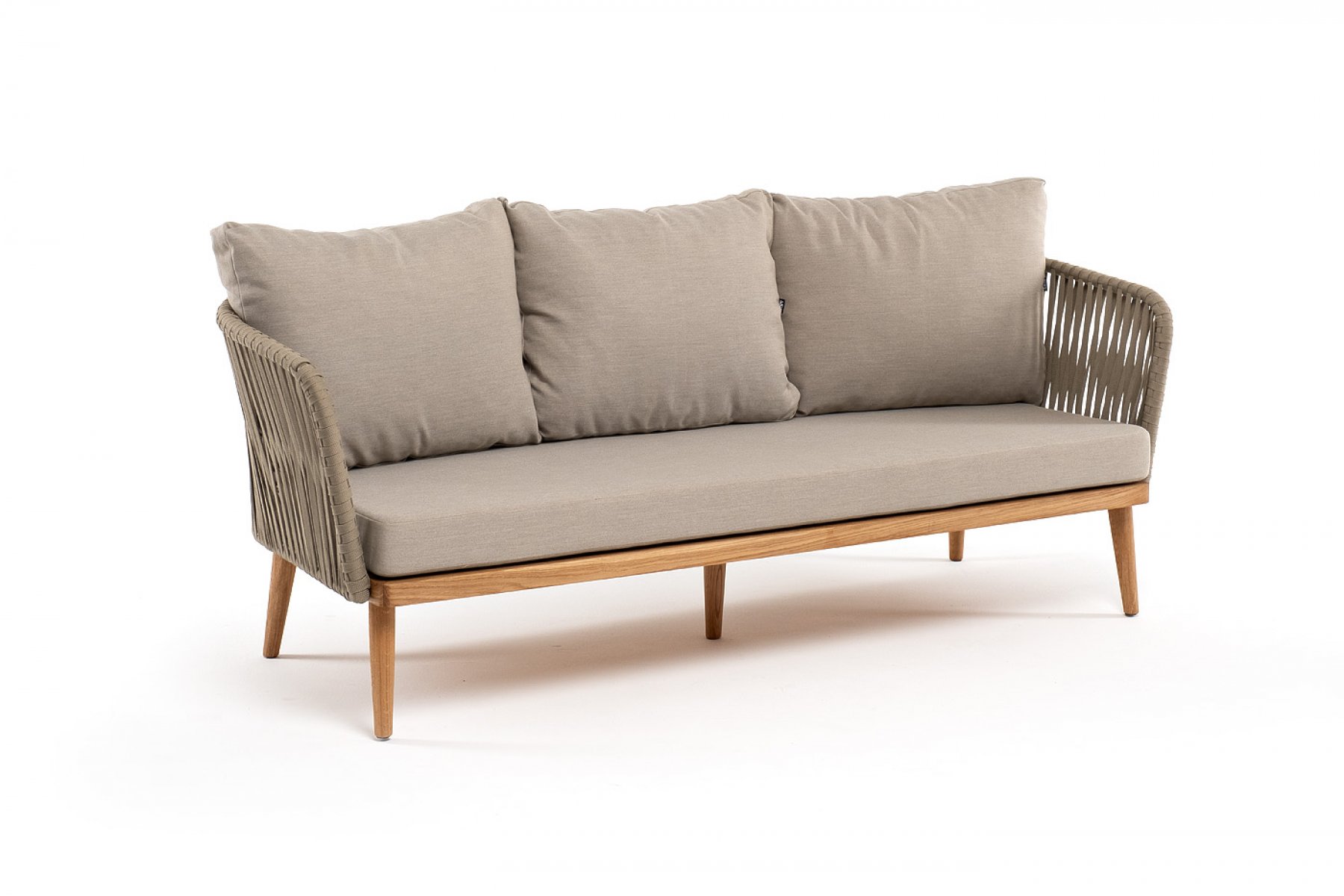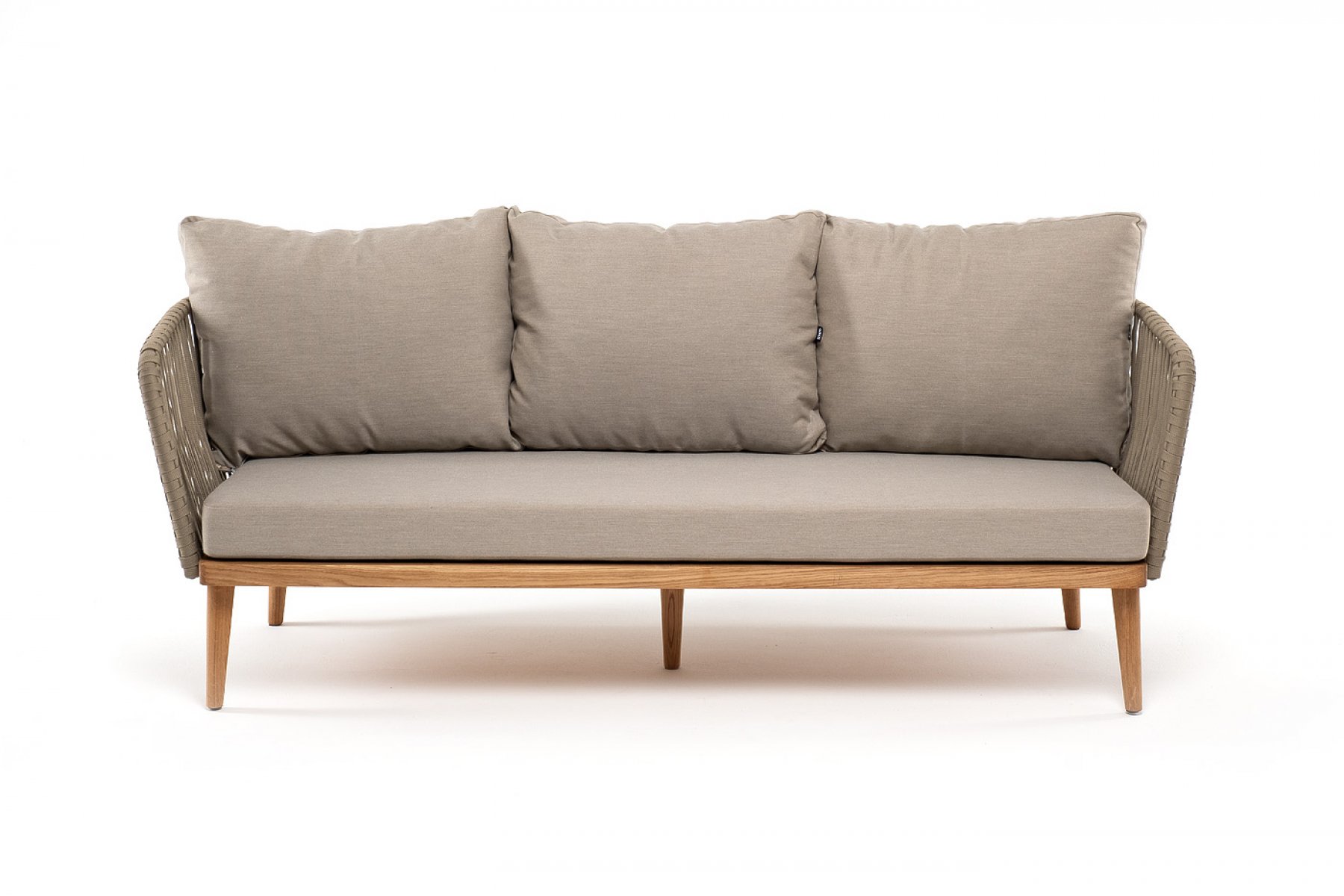"Мальорка" диван 3-местный плетеный из роупа, основание дуб, роуп серо-коричневый 23мм, ткань бежевая 15052