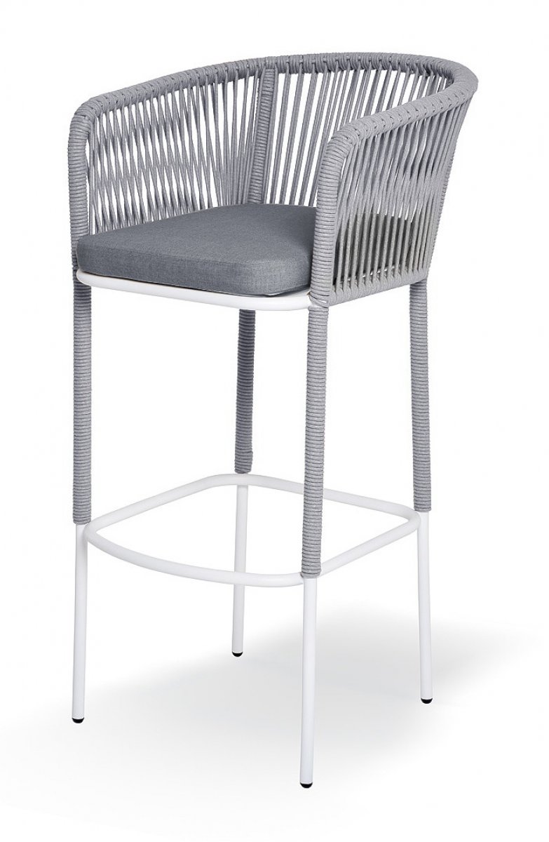 "Марсель" стул барный плетеный из роупа, каркас из стали светло-серый (RAL7035) муар, роуп светло-серый круглый, ткань светло-серая