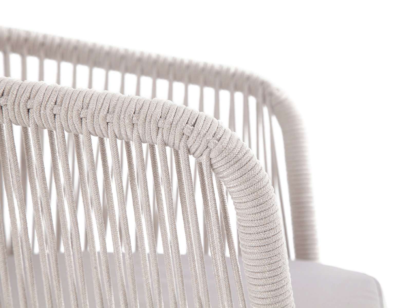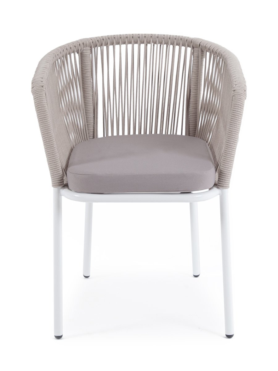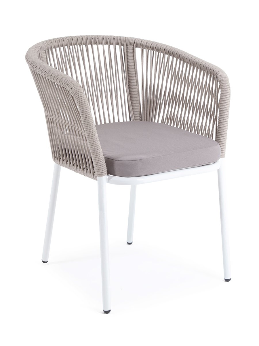 "Марсель" стул плетеный из роупа, каркас алюминий светло-серый (RAL7035) муар, роуп бежевый круглый, ткань бежевая 15052
