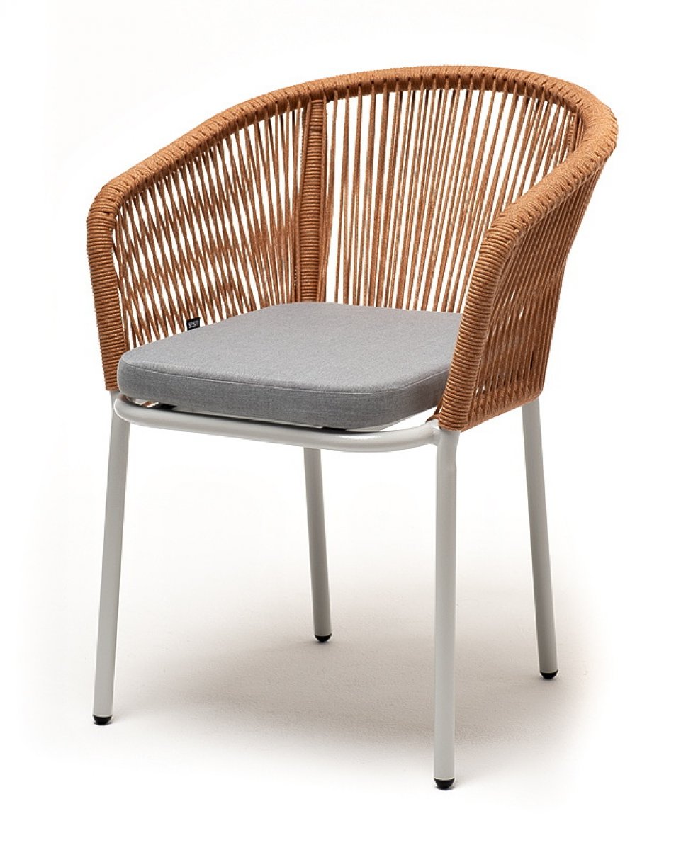 "Марсель" стул плетеный из роупа, каркас алюминий светло-серый (RAL7035) муар, роуп оранжевый меланж круглый, ткань светло-серая