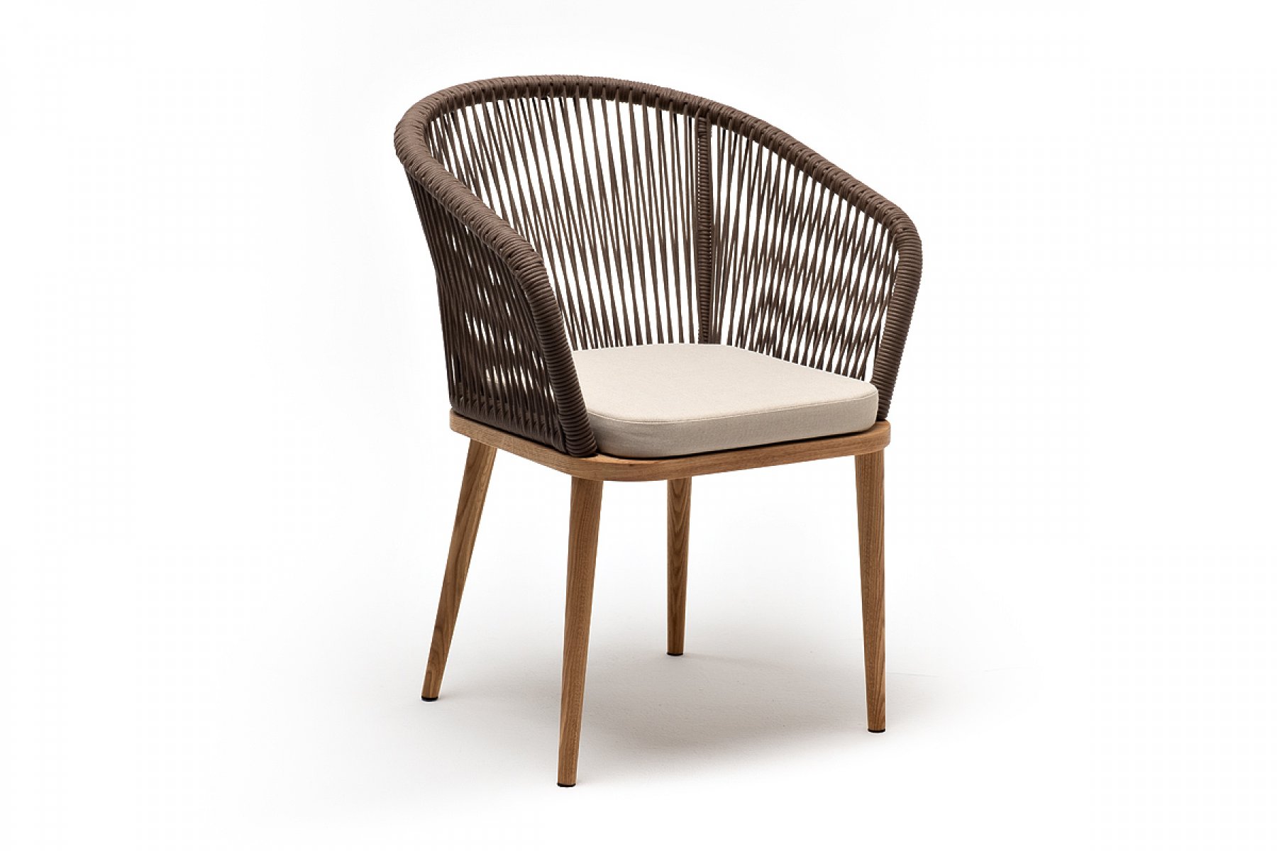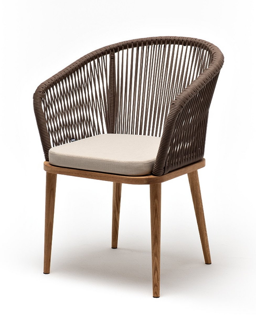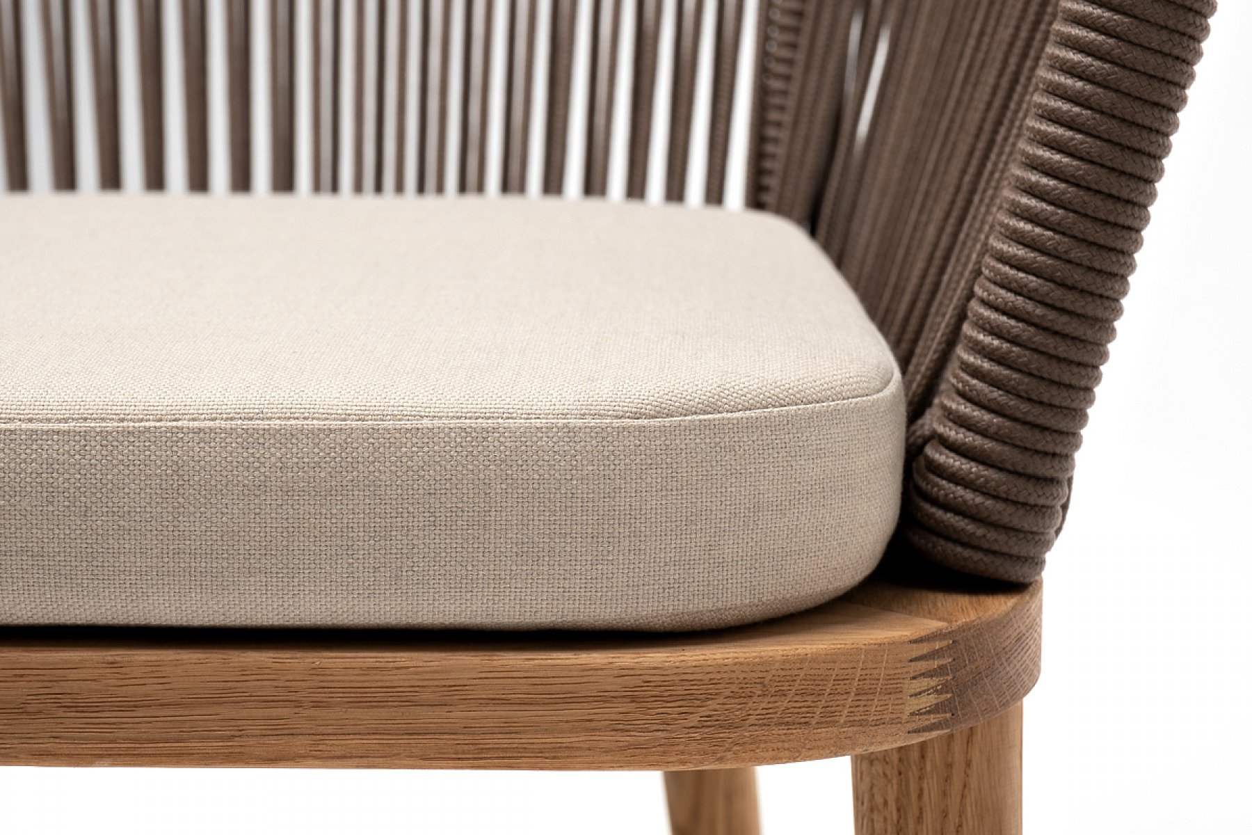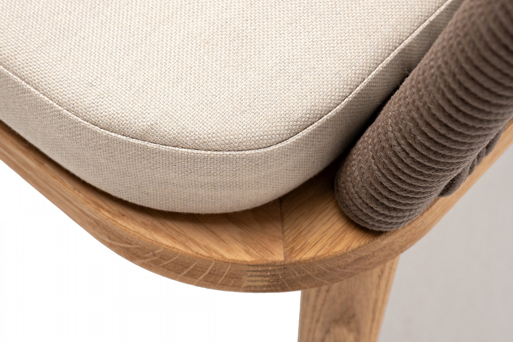 "Марсель" стул плетеный из роупа, основание дуб, роуп коричневый круглый, ткань бежевая 15052