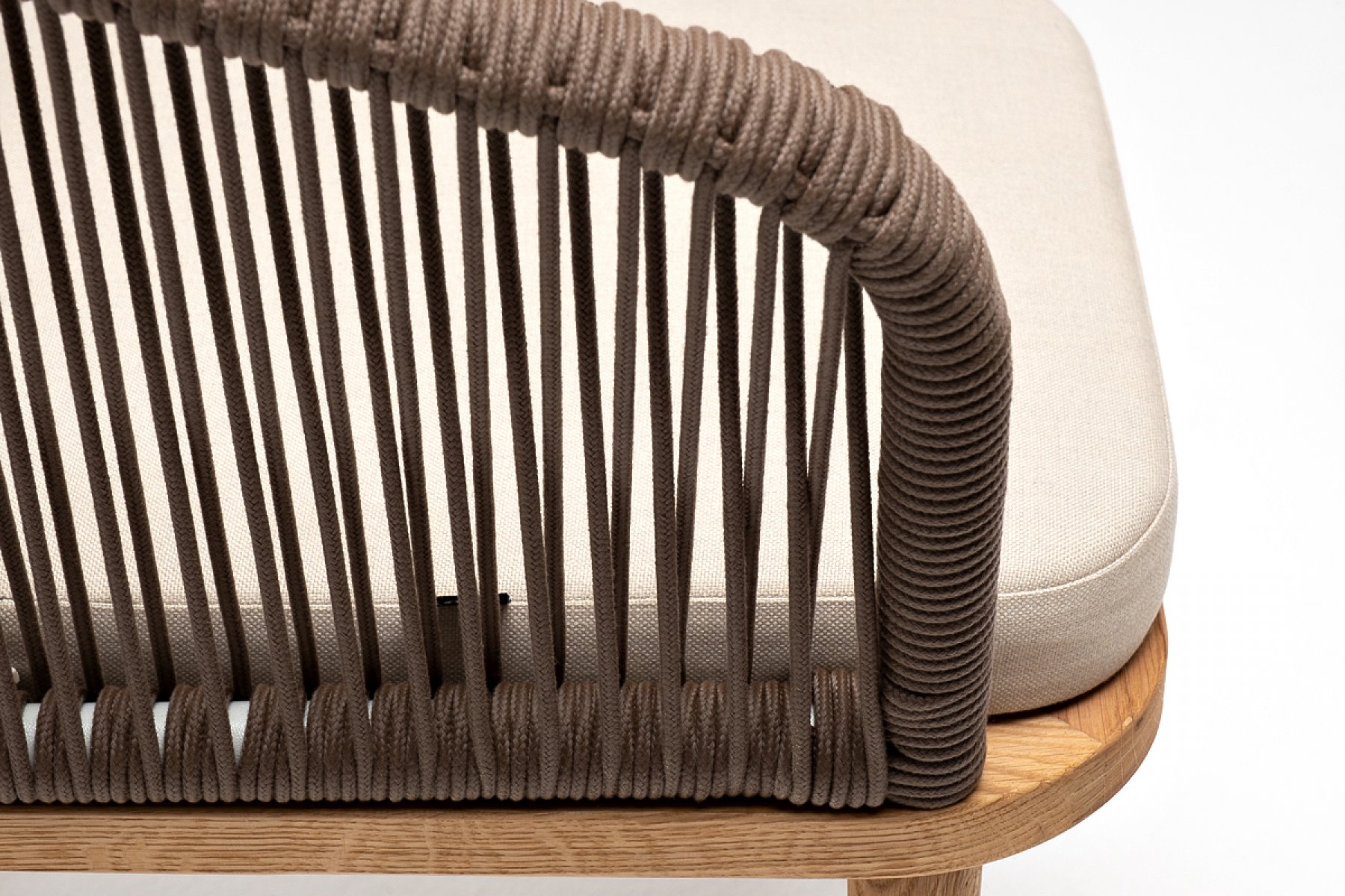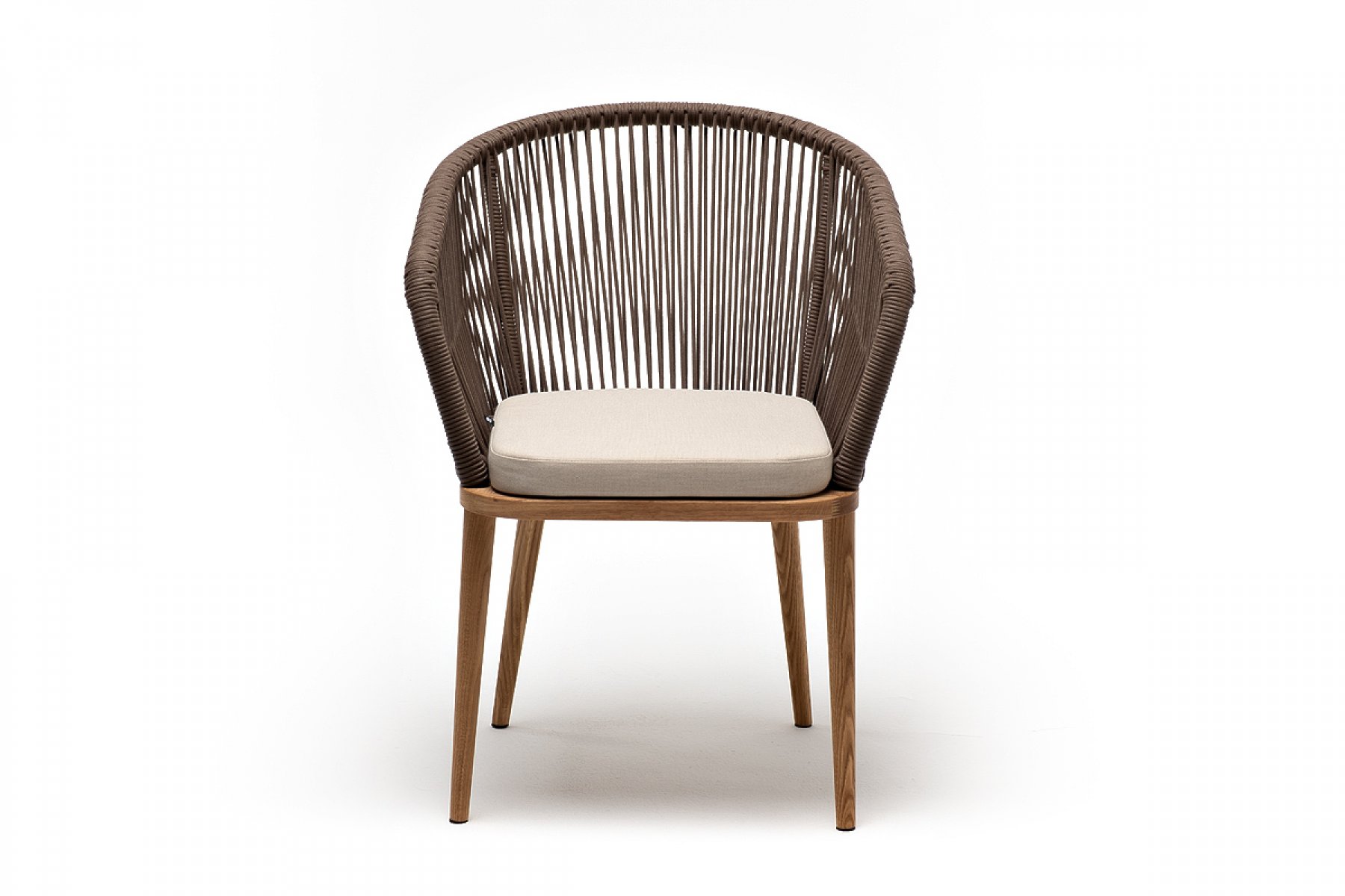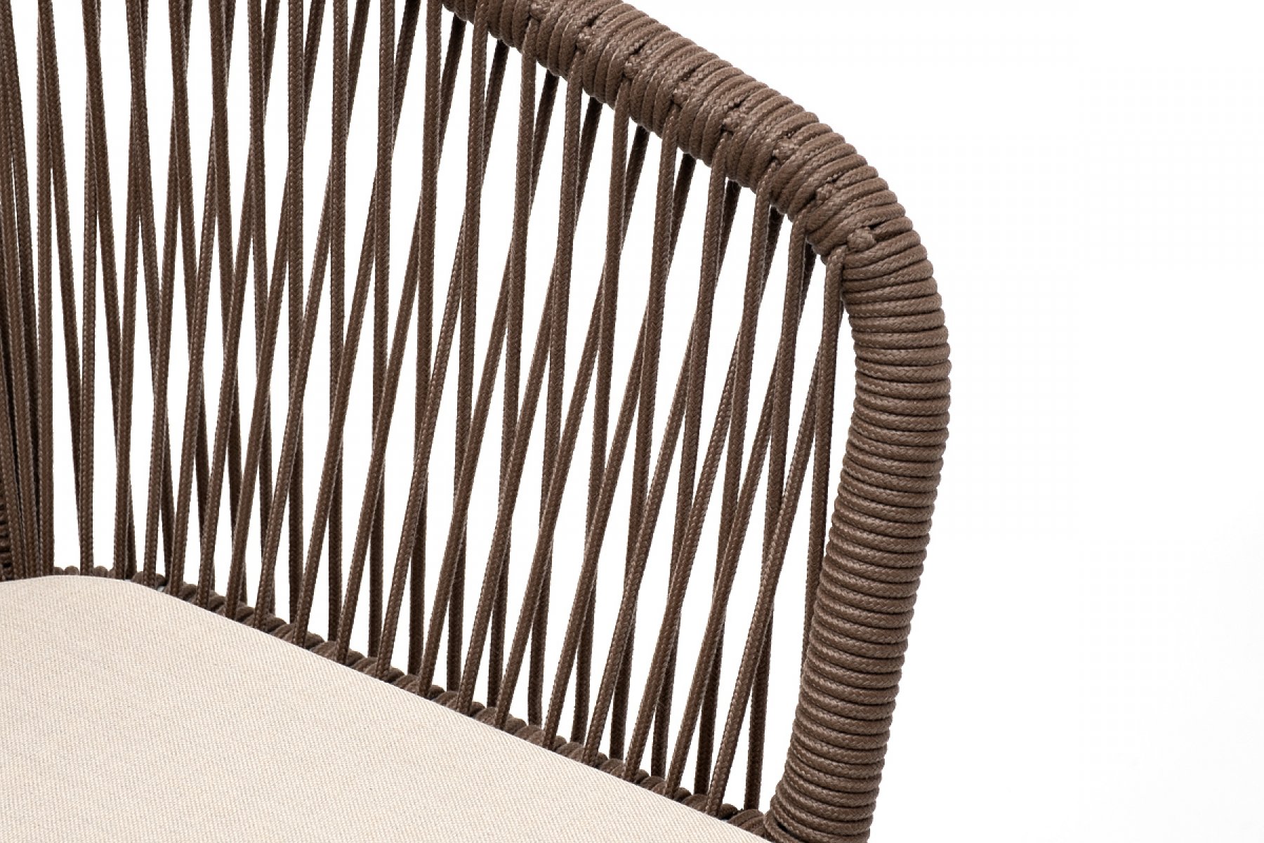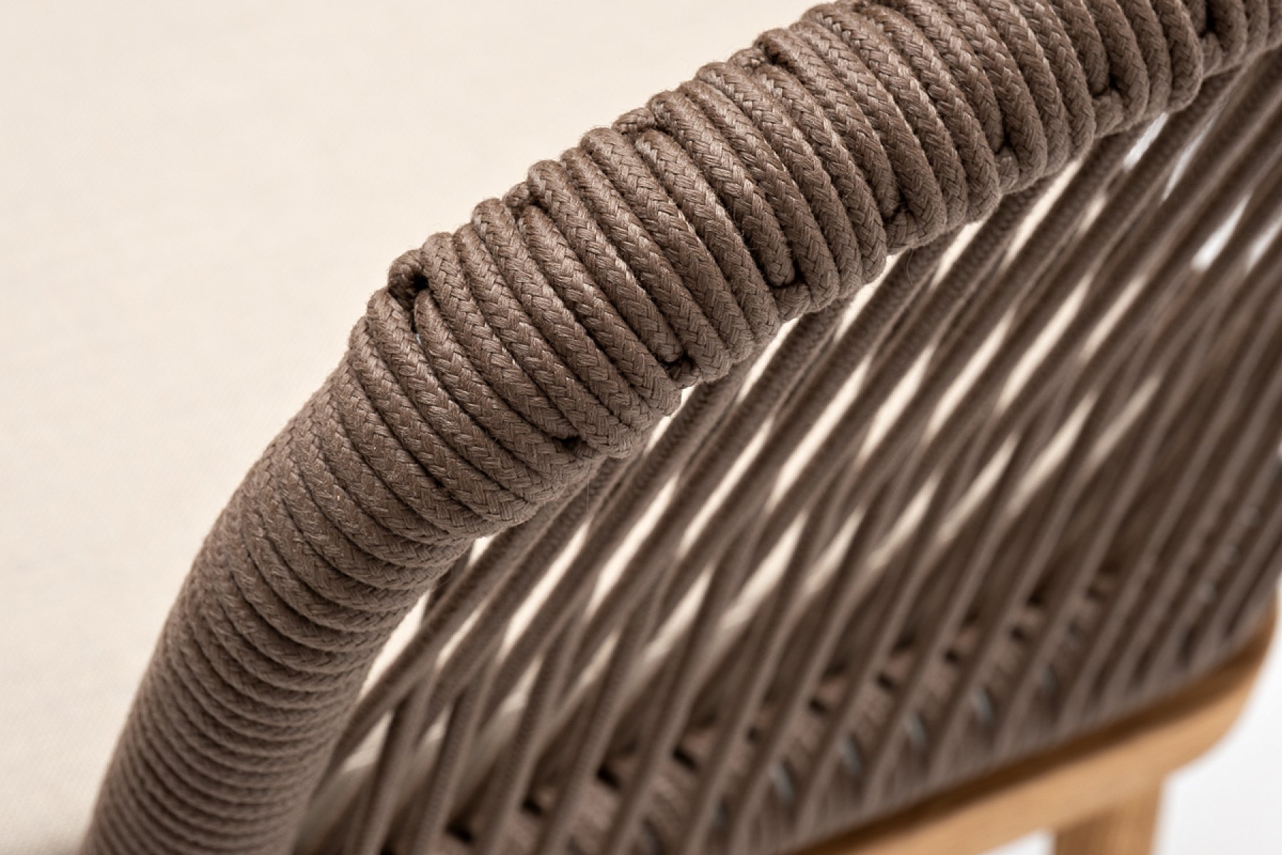"Марсель" стул плетеный из роупа, основание дуб, роуп коричневый круглый, ткань бежевая 15052