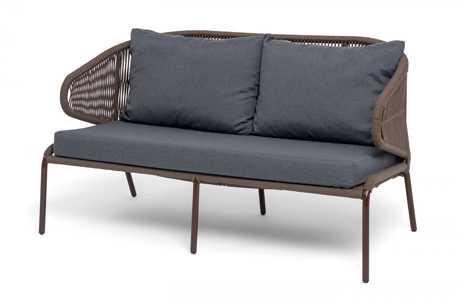 "Милан" диван 2-местный плетеный из роупа, каркас алюминий коричневый (RAL8016) муар, роуп коричневый круглый, ткань темно-серая 027