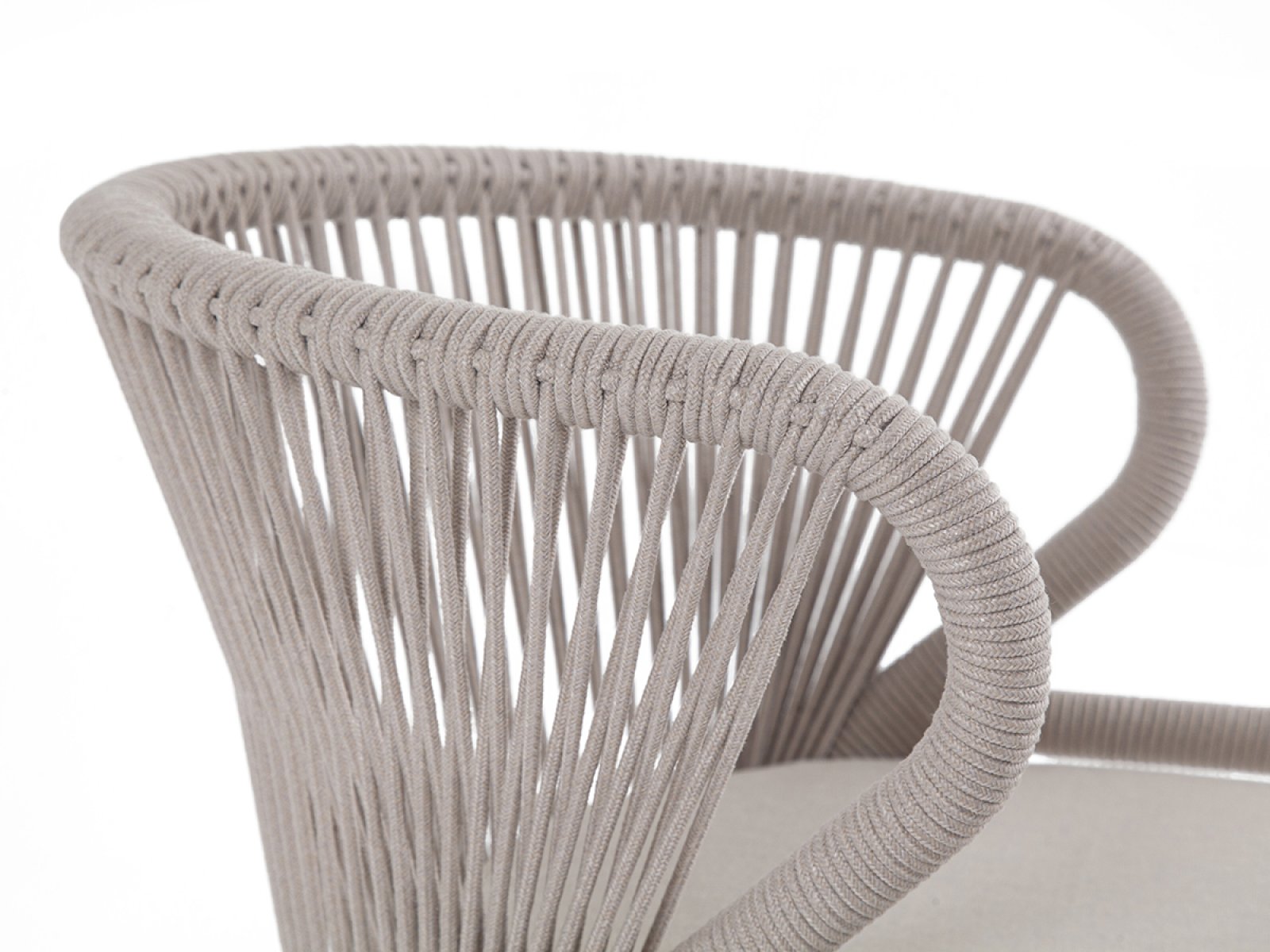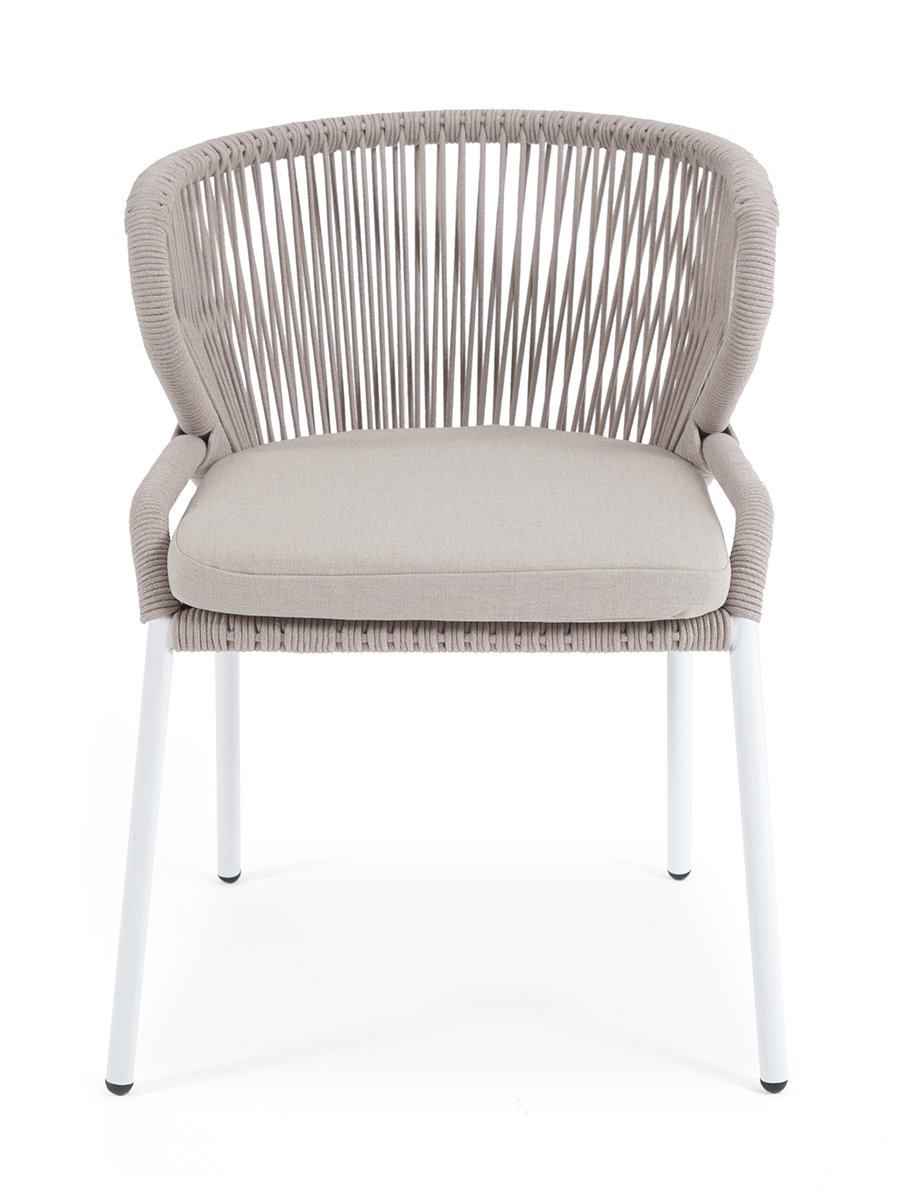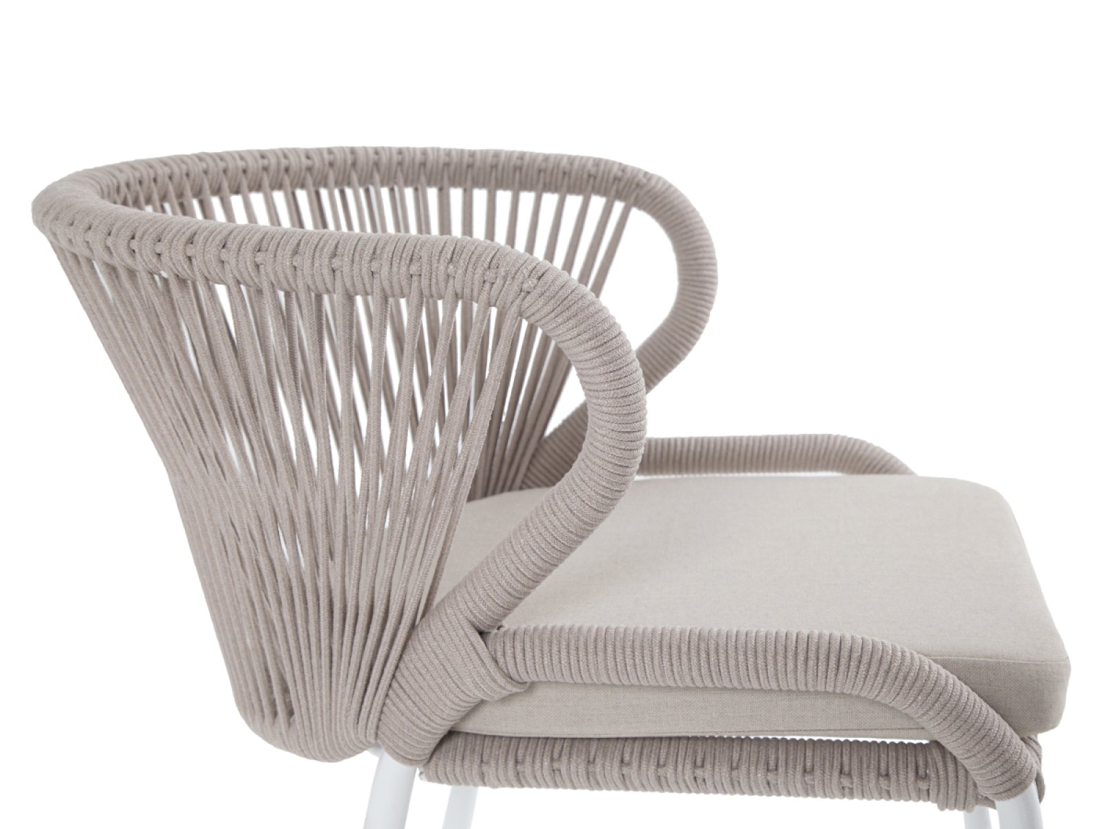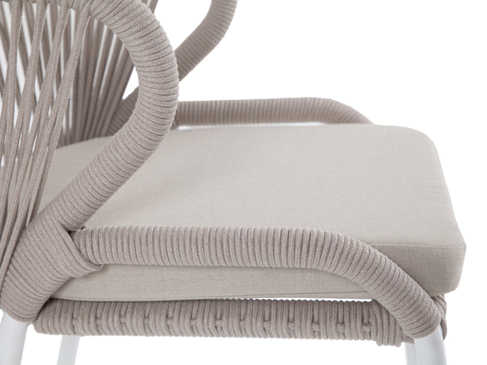 "Милан" стул плетеный из роупа, каркас алюминий белый муар, роуп бежевый круглый, ткань бежевая 15052