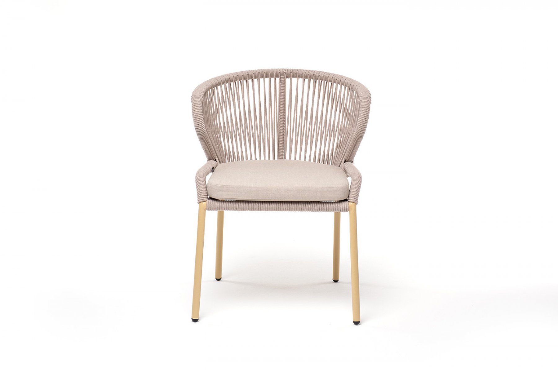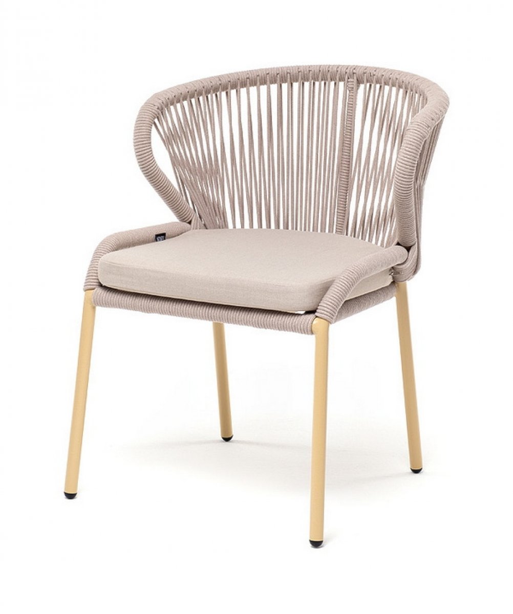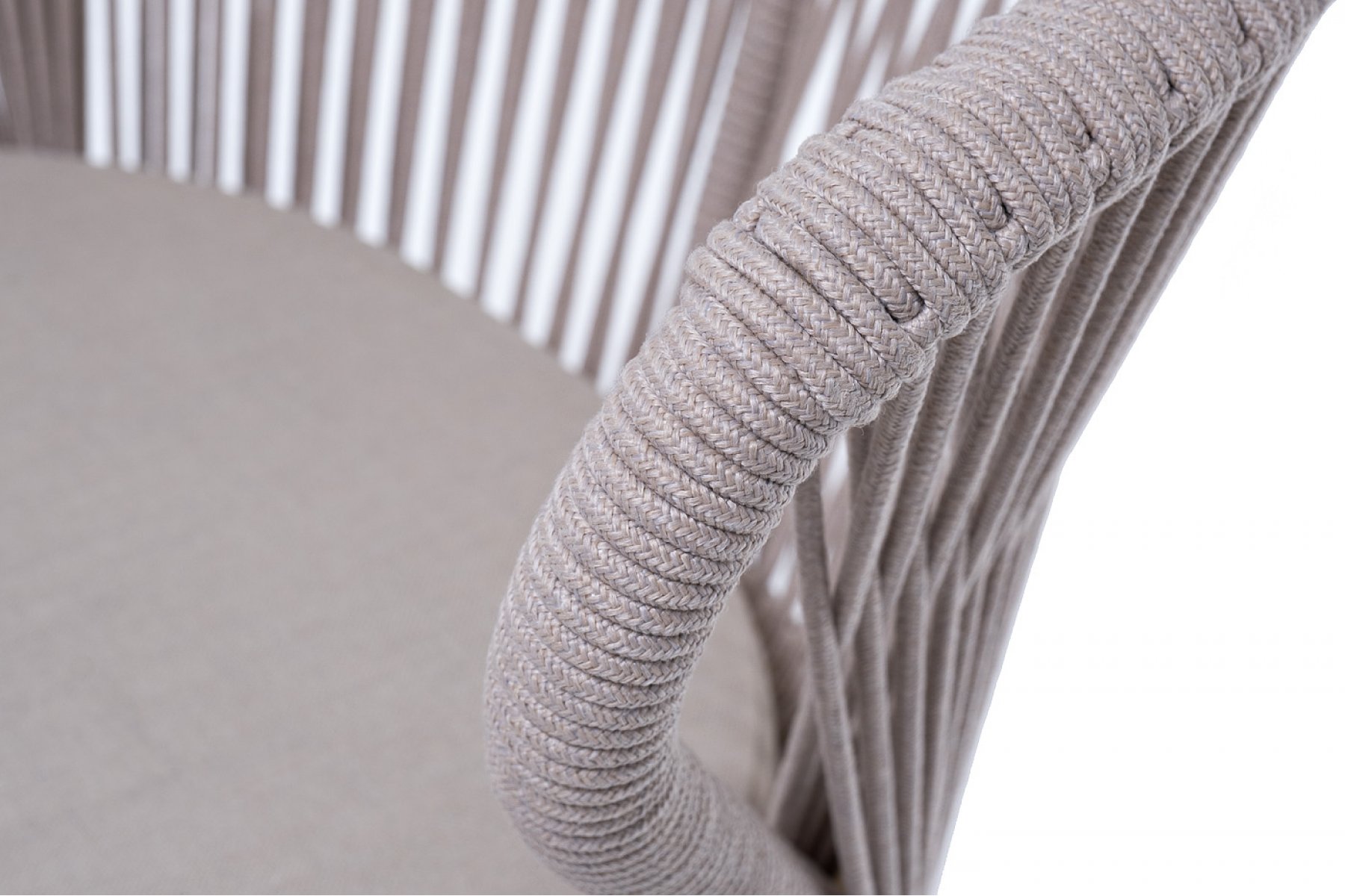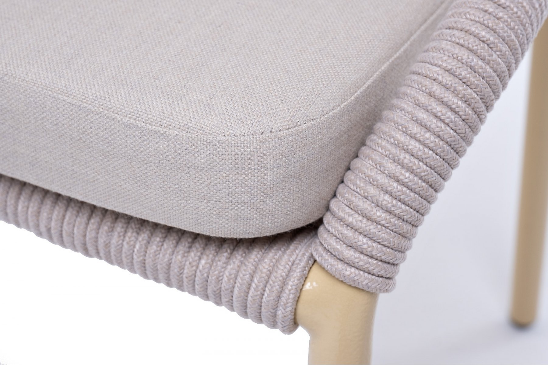 "Милан" стул плетеный из роупа, каркас алюминий (RAL1001), роуп бежевый круглый, ткань бежевая