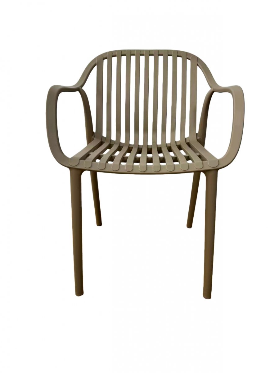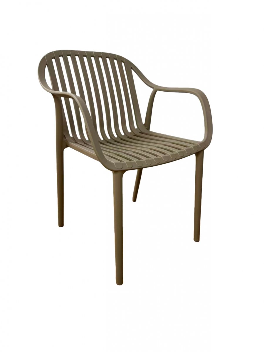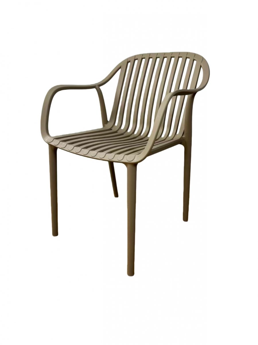 Изготовлен из полипропилена, прочного и стойкого пластика, устойчивого к УФ-излучению, благодаря этому стул сохраняет свой первоначальный вид и не выцветает на солнце даже несмотря на активную эксплуатацию. Цвет - бежево-коричневый.