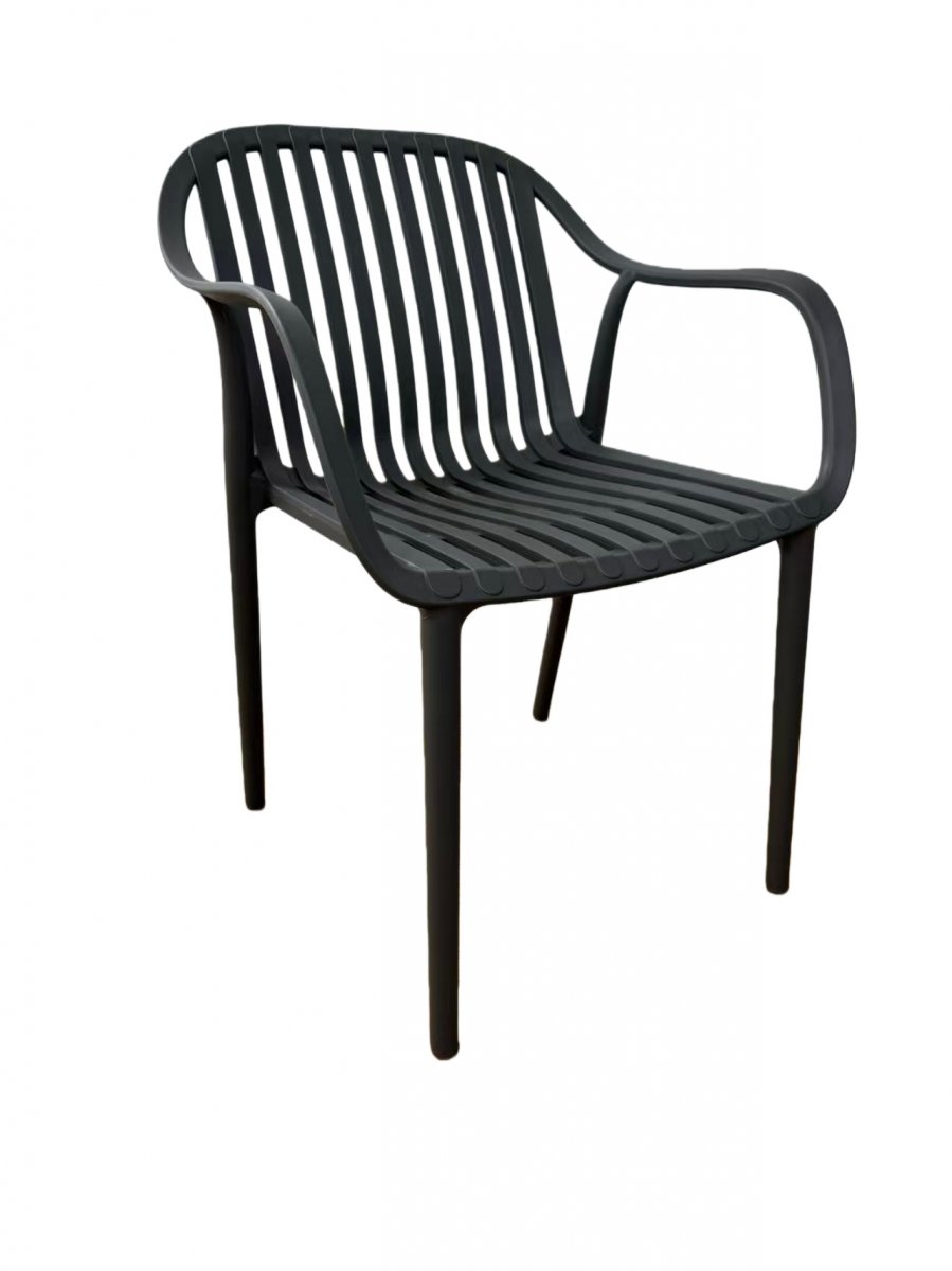 Изготовлен из полипропилена, прочного и стойкого пластика, устойчивого к УФ-излучению, благодаря этому стул сохраняет свой первоначальный вид и не выцветает на солнце даже несмотря на активную эксплуатацию. Цвет - темно-серый.