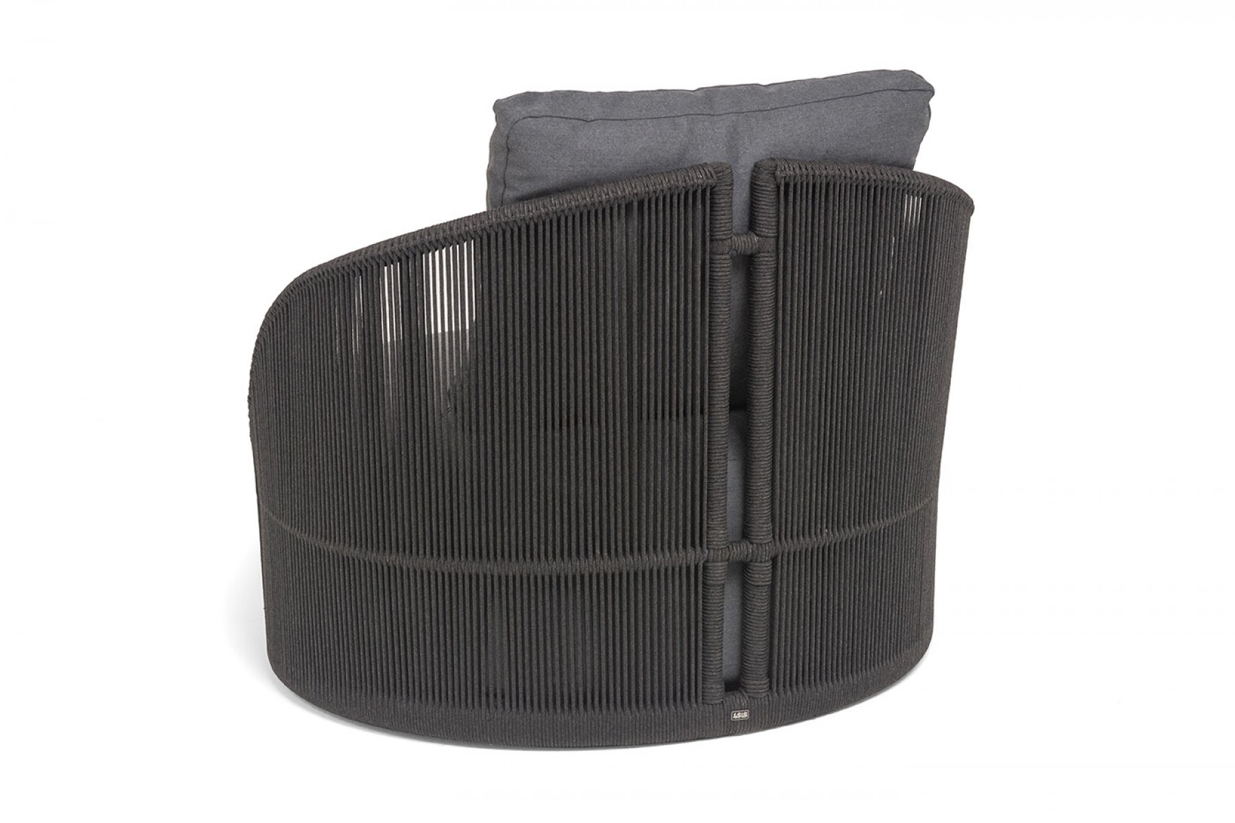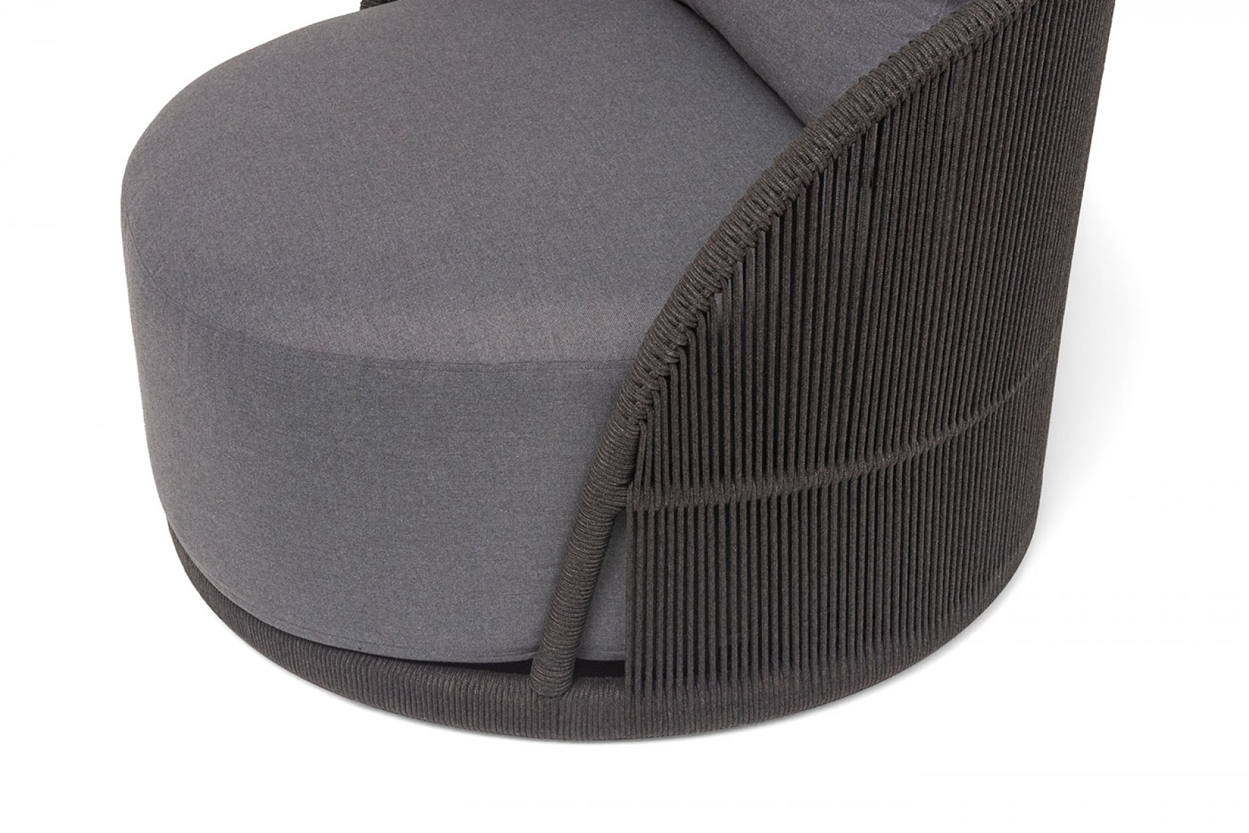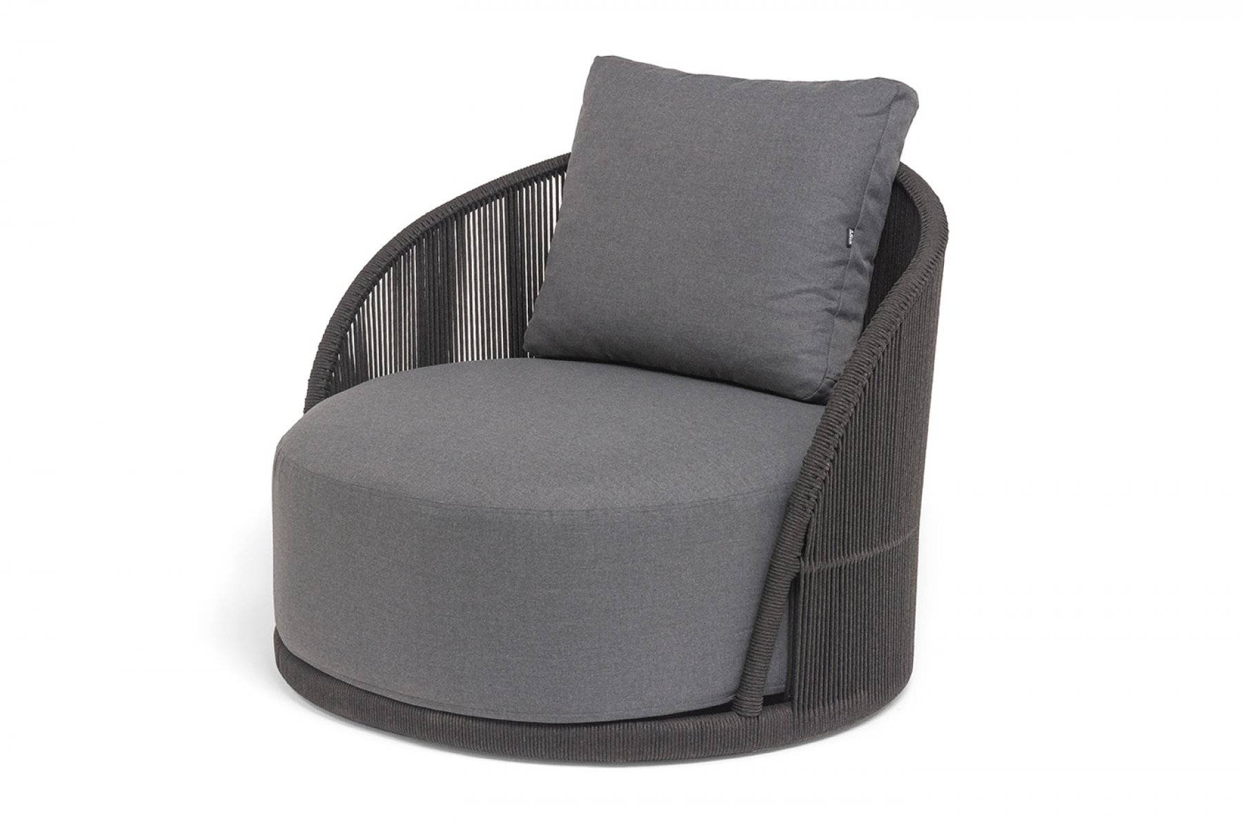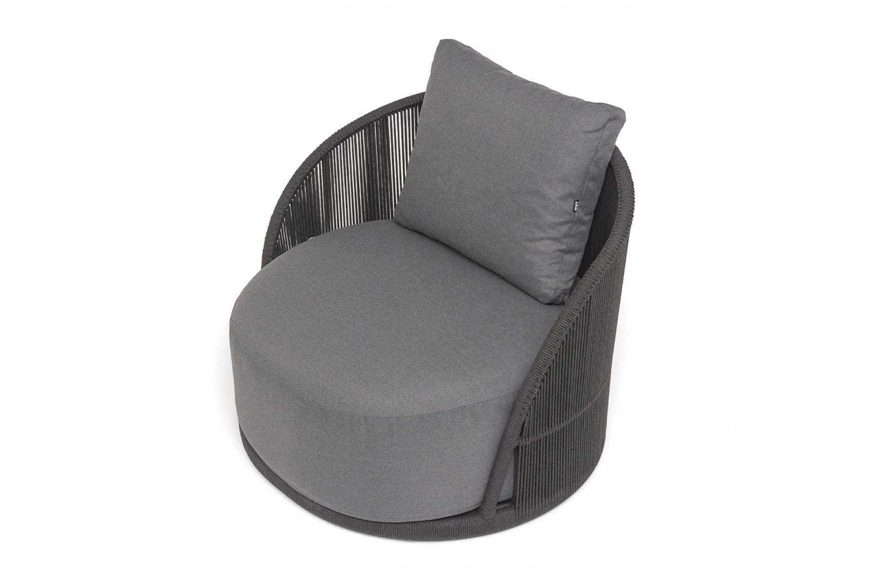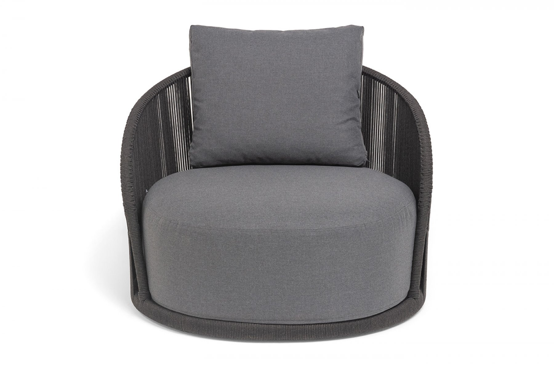 "Монтелла" кресло плетеное из роупа, каркас алюминий темно-серый (RAL7024) муар, роуп темно-серый круглый, ткань темно-серая 027