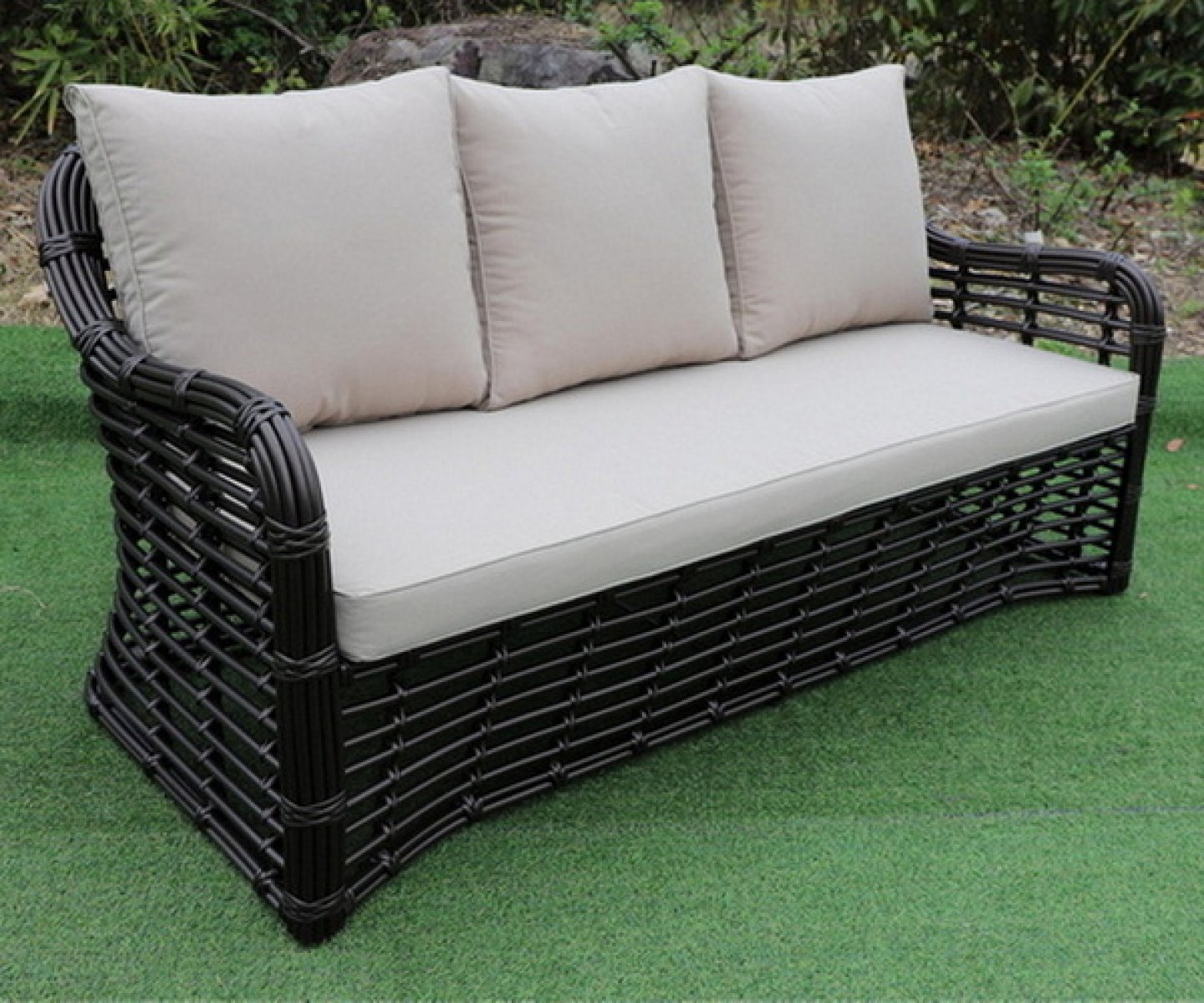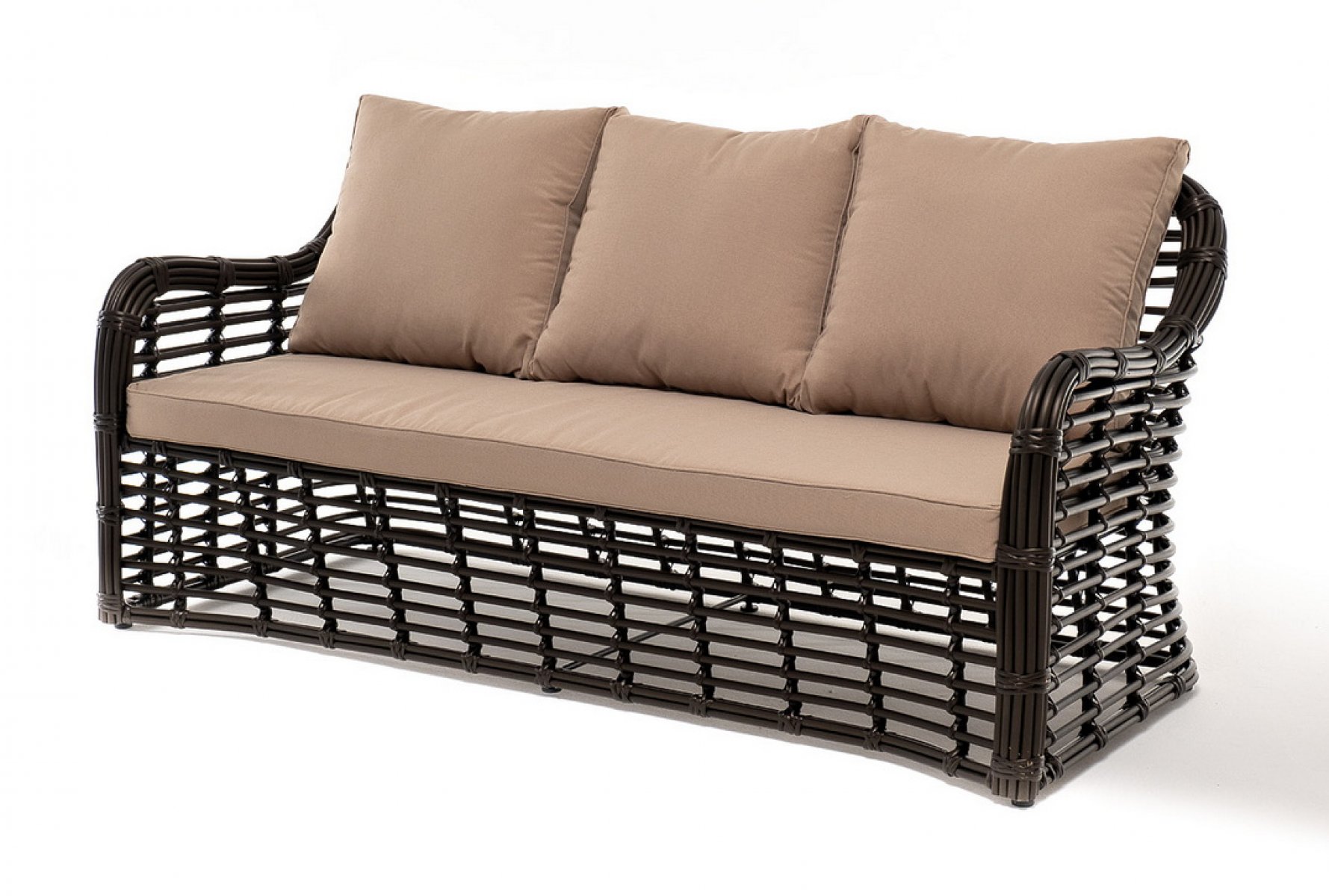 Диван «Ницца» подходит для размещения сразу трех персон. Его основа из прочного алюминиевого каркаса.