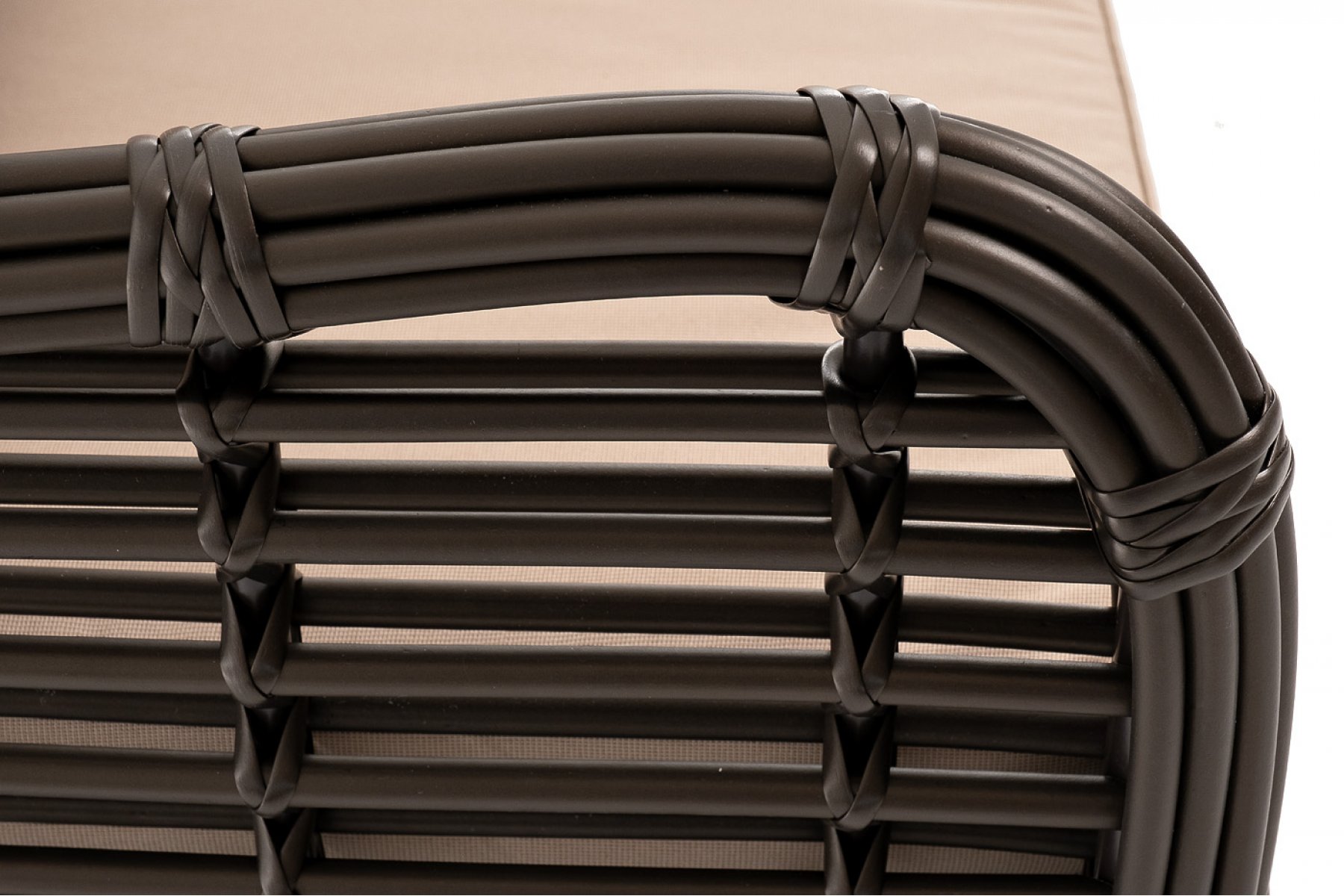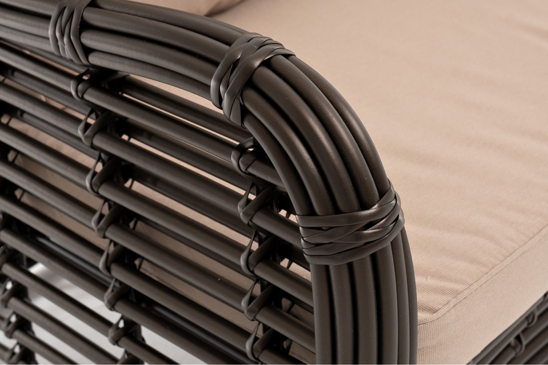 Ручное круглое плетение является основным декоративным элементом мебели. Оно выполнено из искусственного ротанга в соломенном цвете.