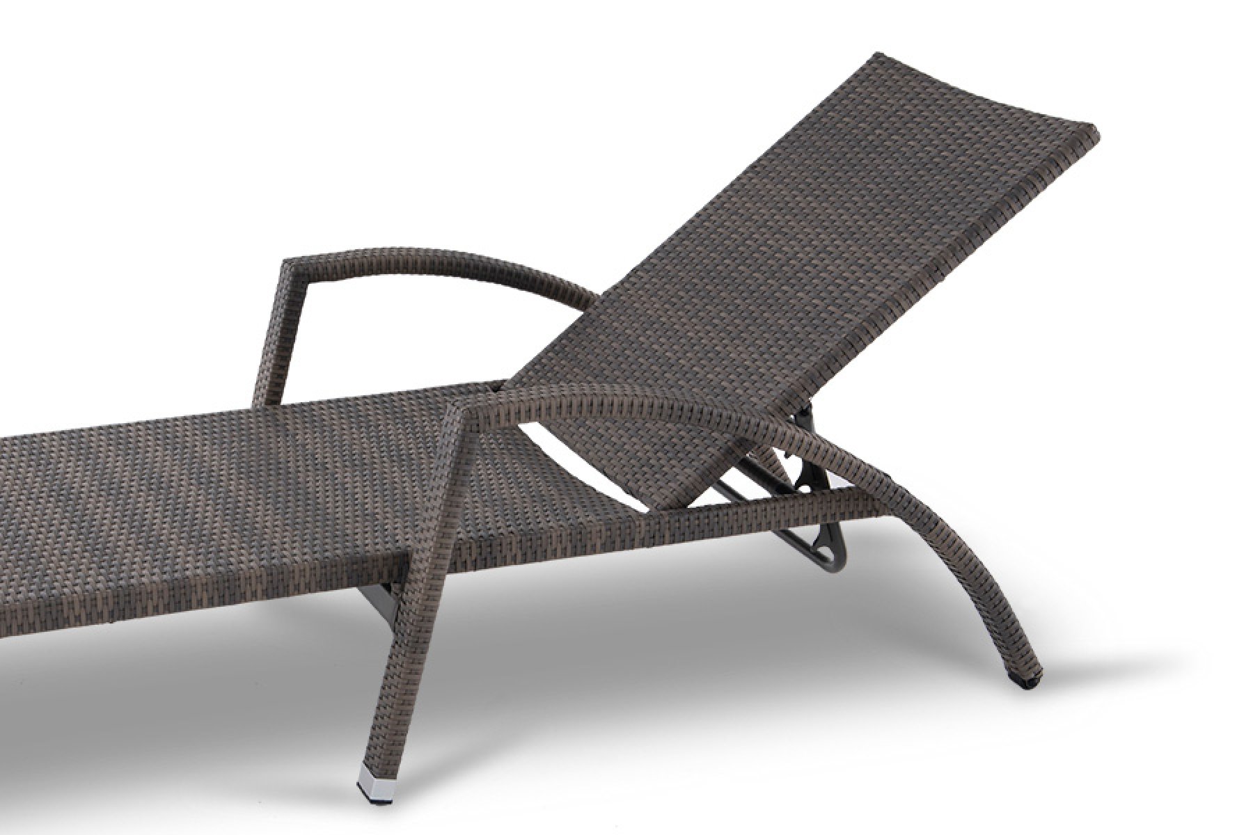 Шезлонг Парма без матраса из искусственного ротанга серо-коричневого оттенка. Размер: длина 207 см, ширина 74 см, высота 97 см.