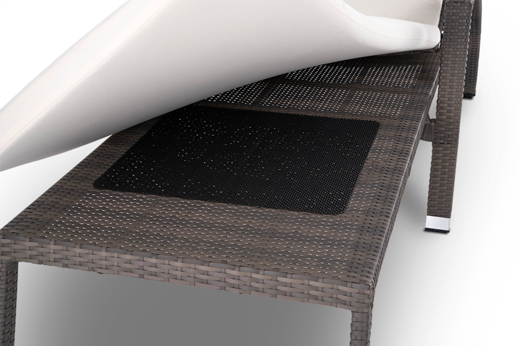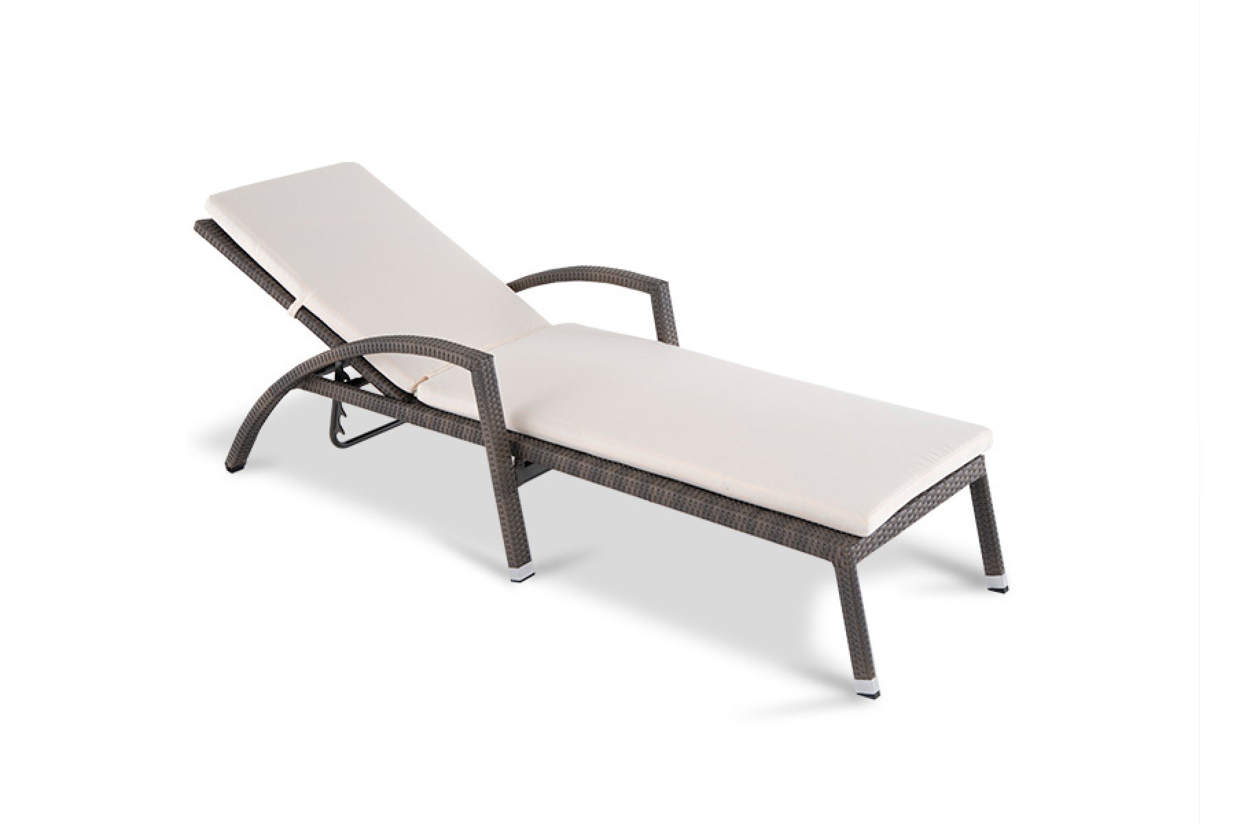 Шезлонг Парма с матрасом из искусственного ротанга серо-коричневого оттенка. Размер: длина 207 см, ширина 74 см, высота 97 см.