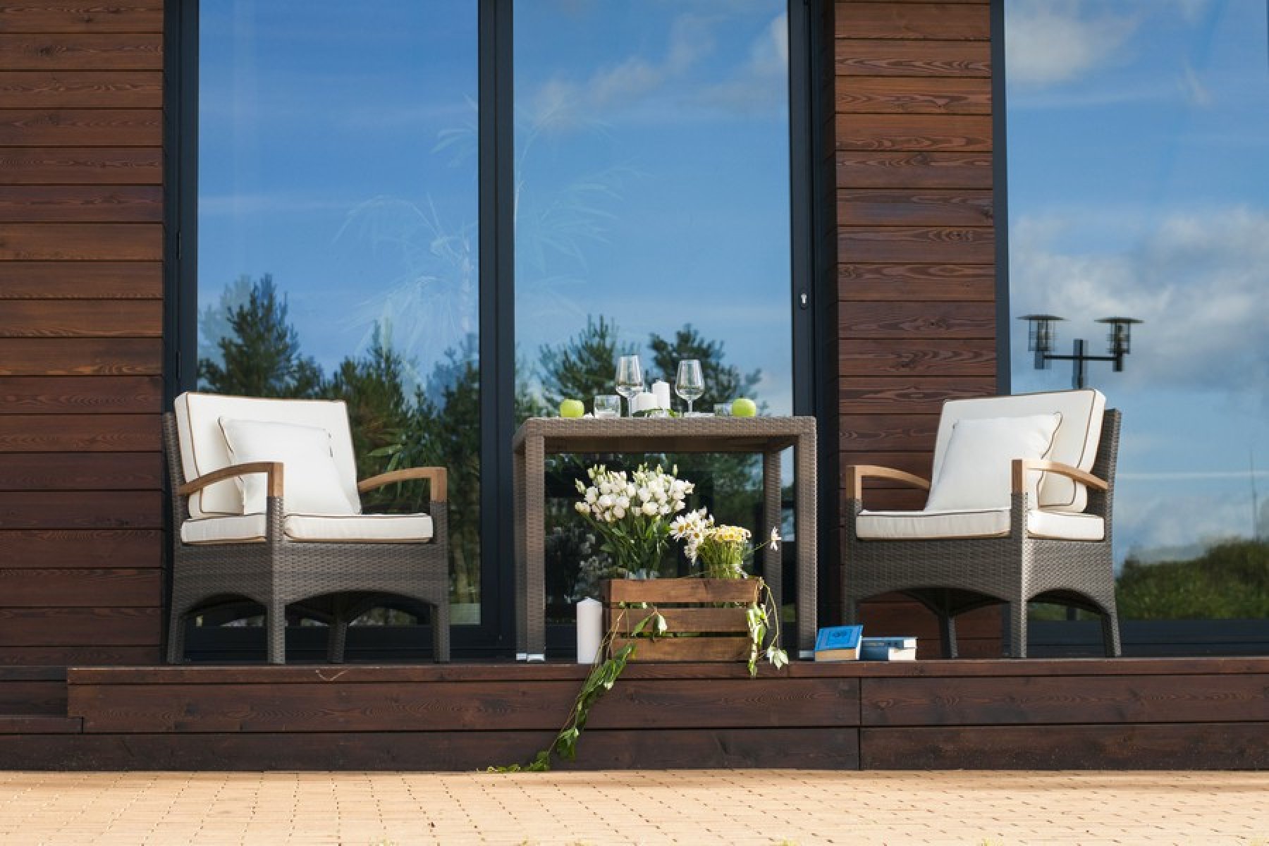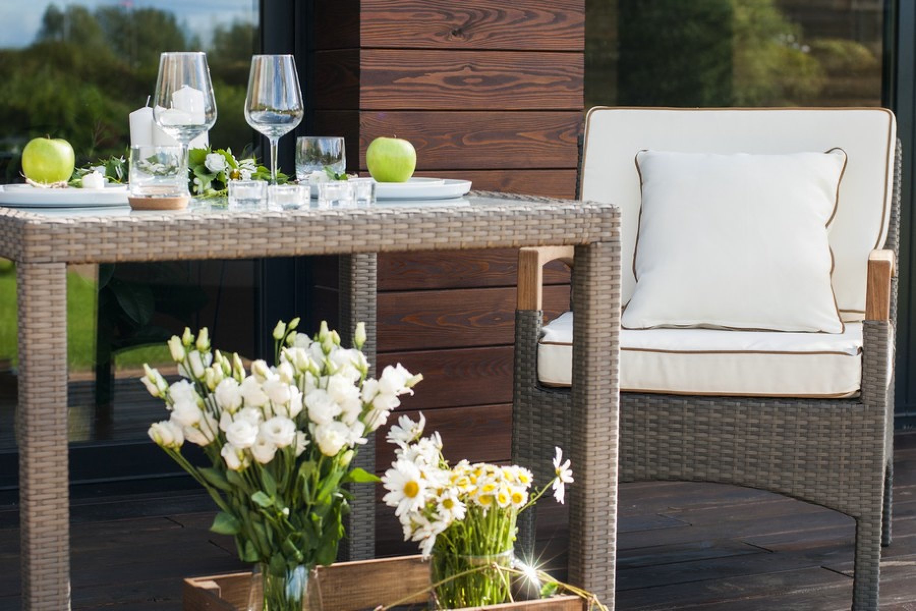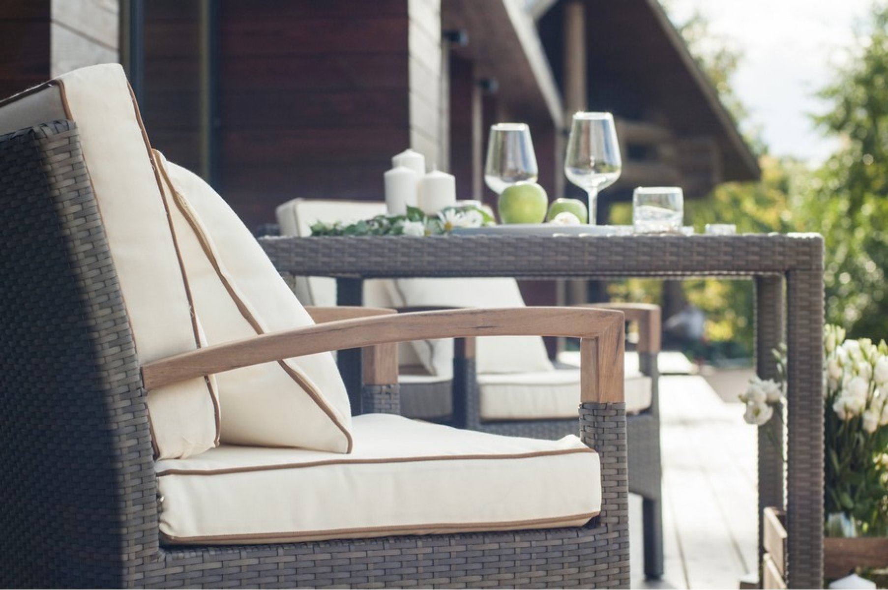 - Подушки выполнены из водостойкой полиэфирной ткани для защиты мебели от дождя и солнца