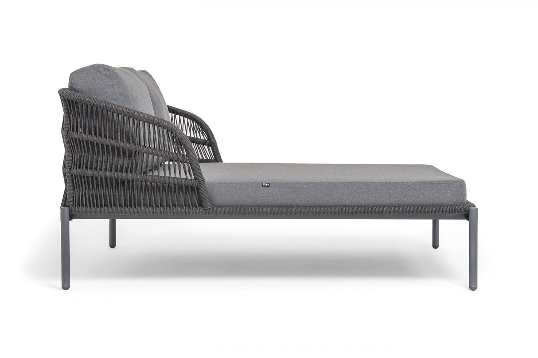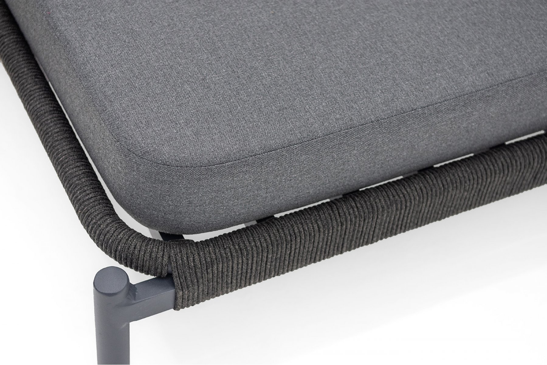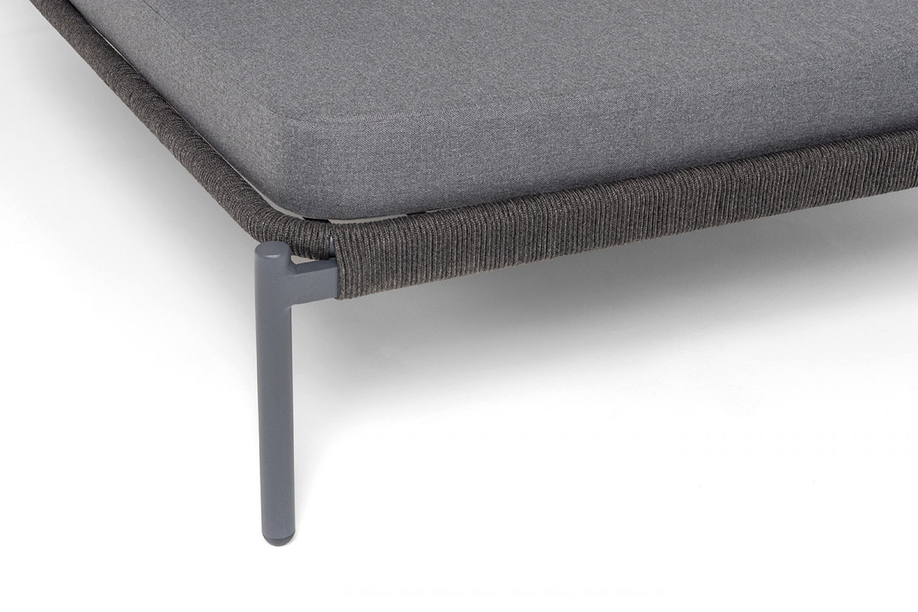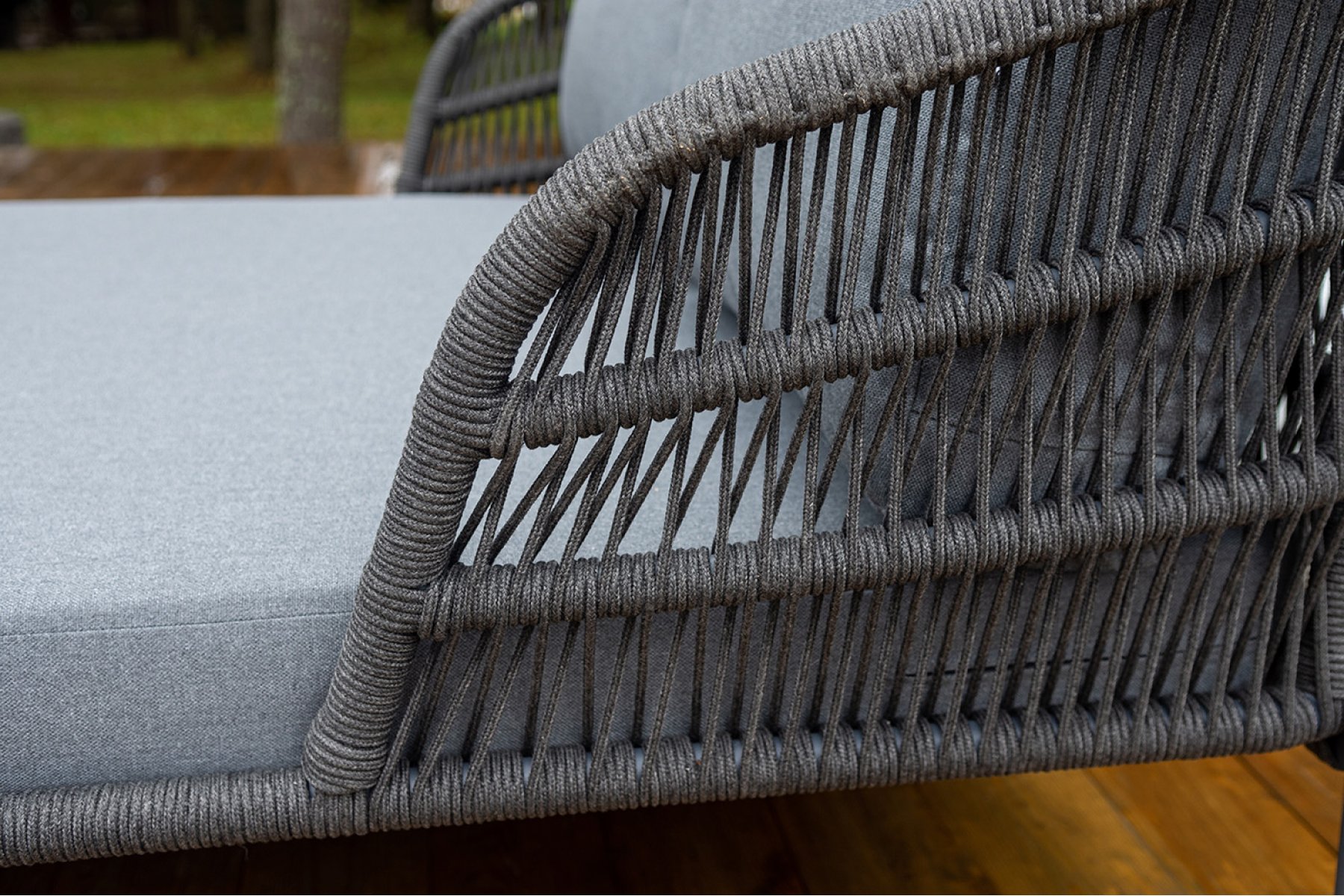"Позитано" лежак плетеный из роупа, каркас алюминий темно-серый (RAL7024) муар, роуп темно-серый круглый, ткань темно-серая 027