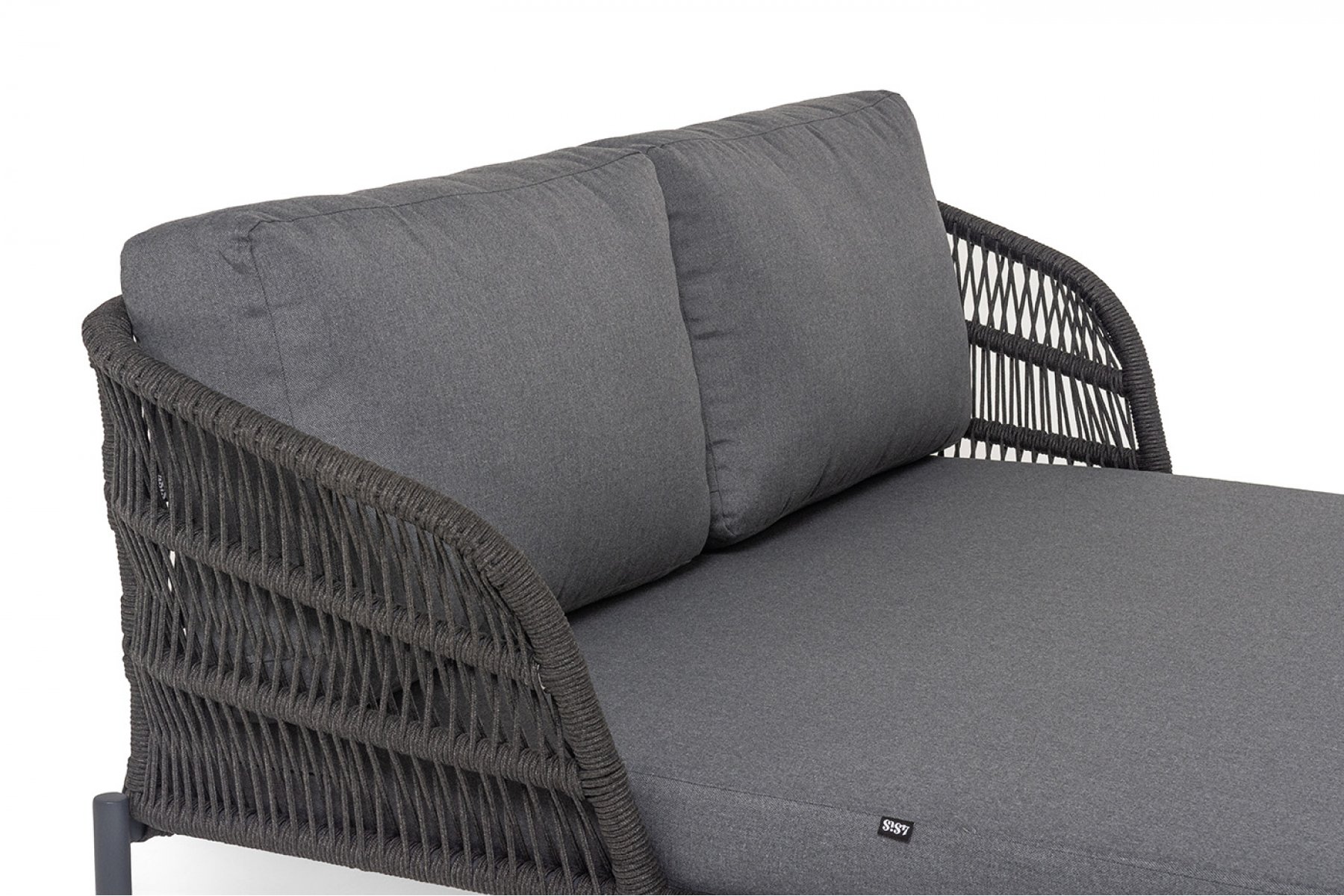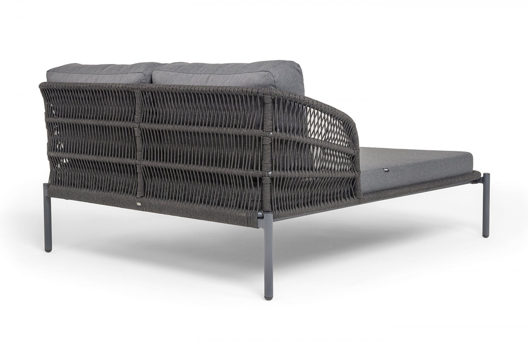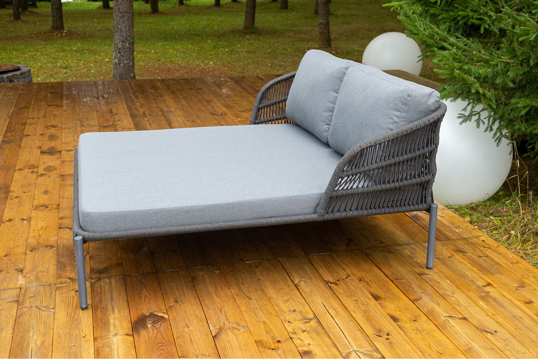 "Позитано" лежак плетеный из роупа, каркас алюминий темно-серый (RAL7024) муар, роуп темно-серый круглый, ткань темно-серая 027