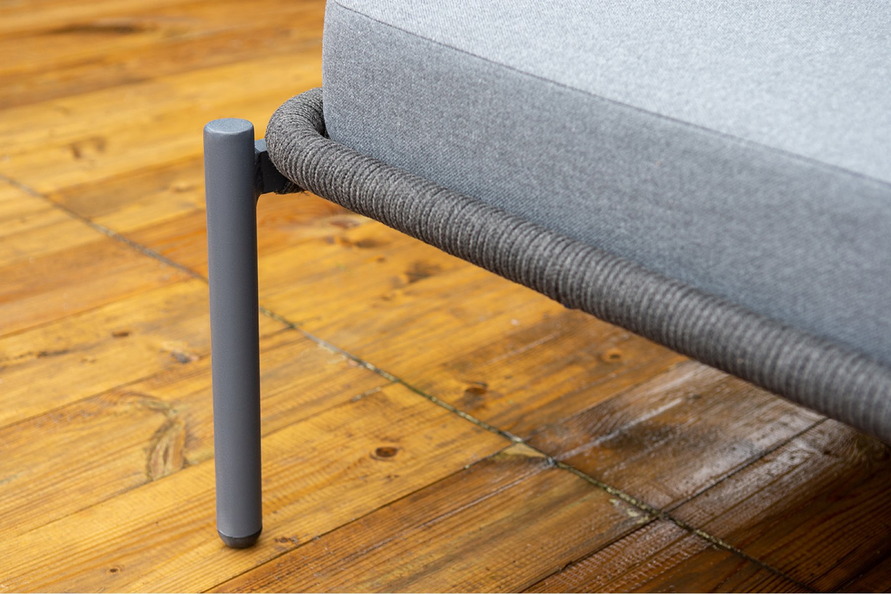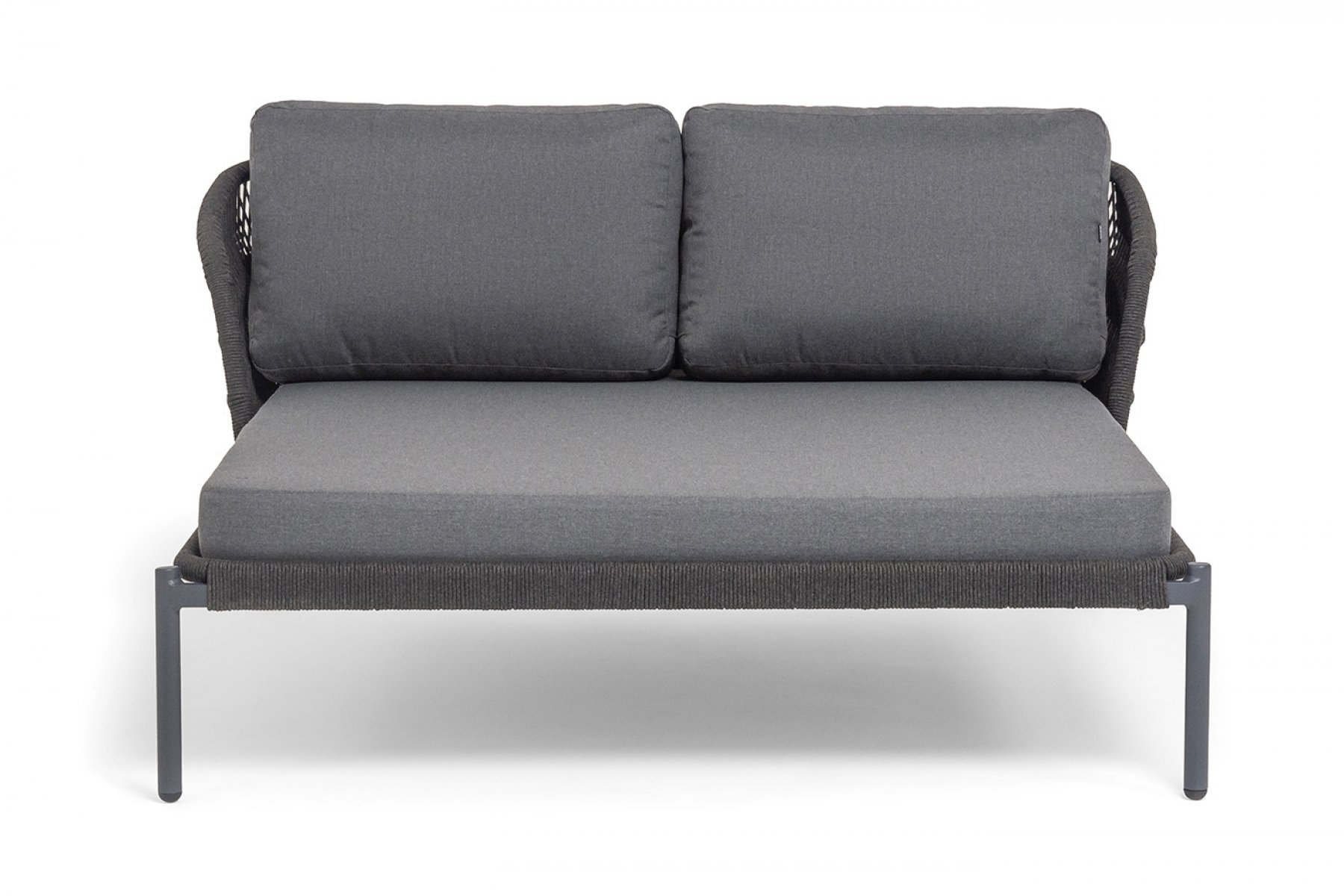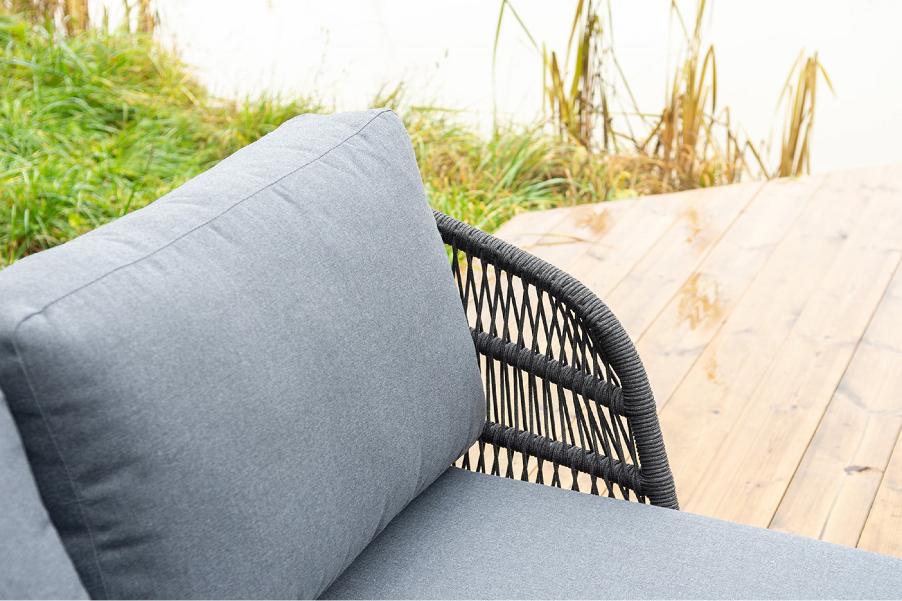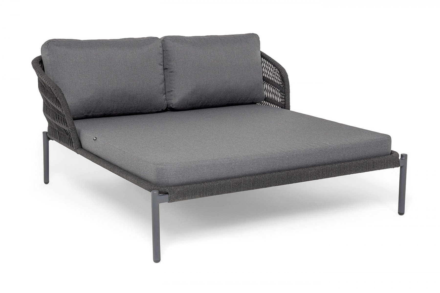 "Позитано" лежак плетеный из роупа, каркас алюминий темно-серый (RAL7024) муар, роуп темно-серый круглый, ткань темно-серая 027