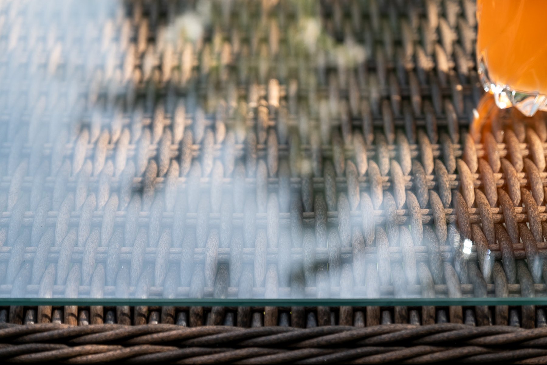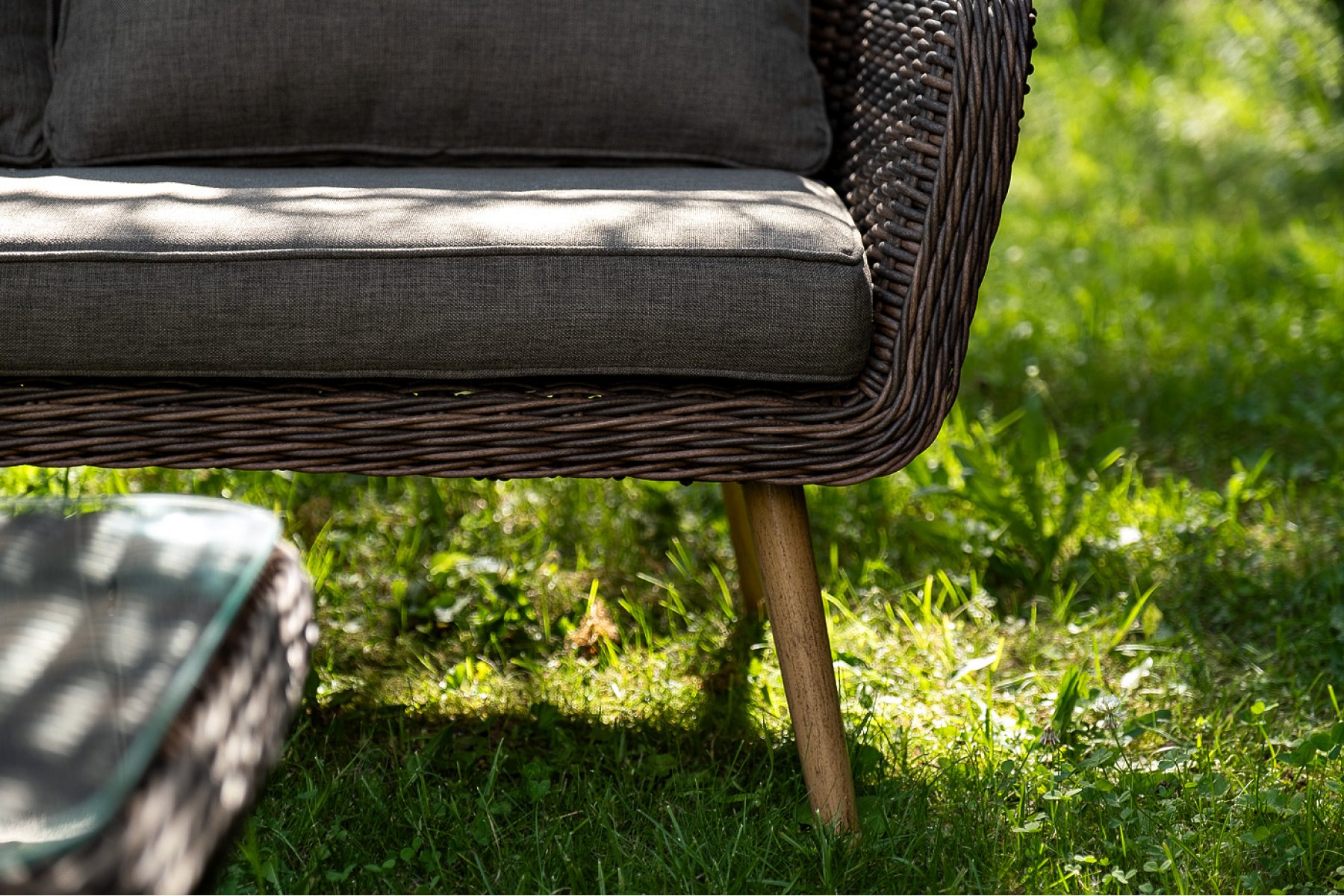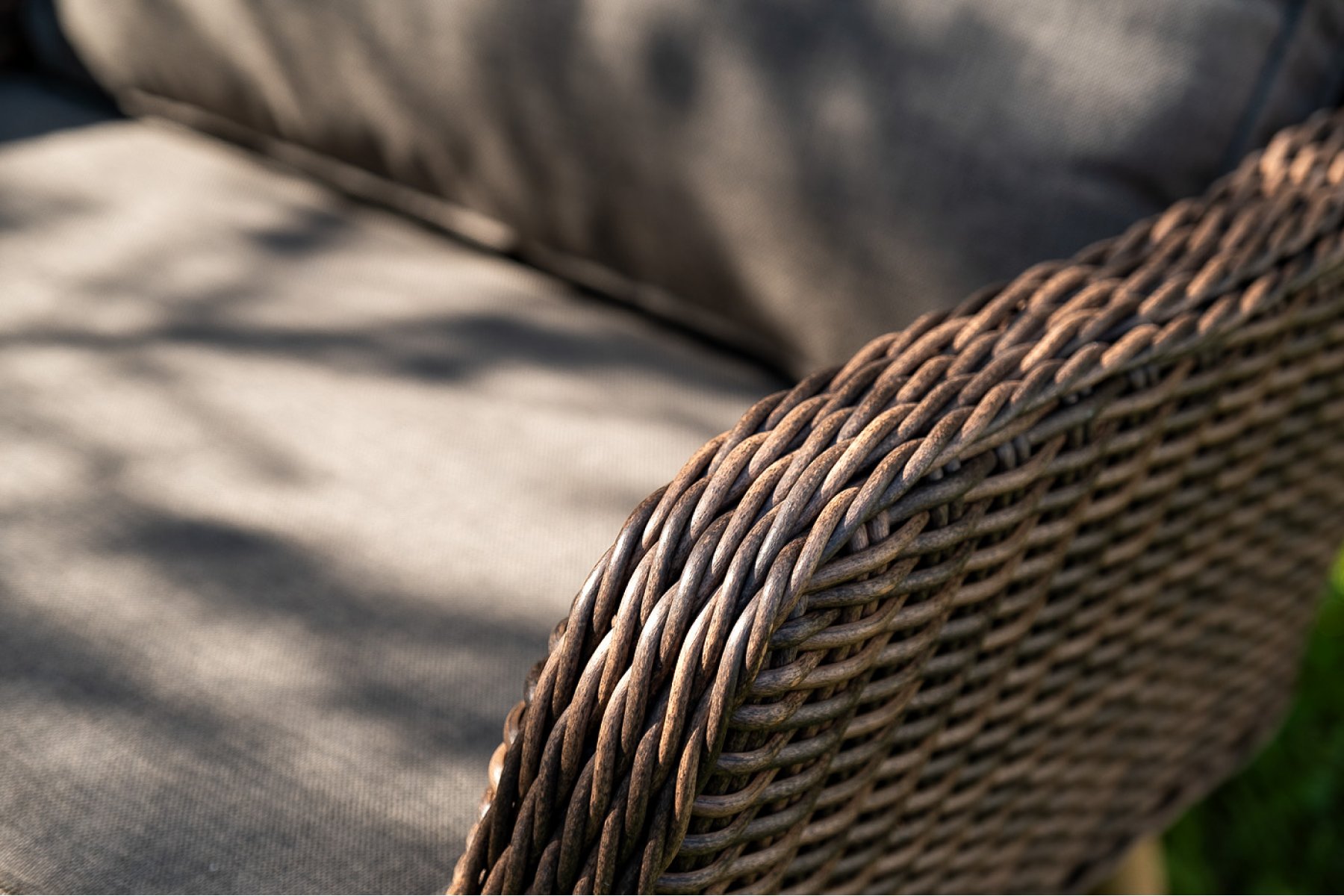 Каркас всей группы выполнен из прочного алюминия, который оплетен круглым искусственным ротангом. Цвет – коричневый.