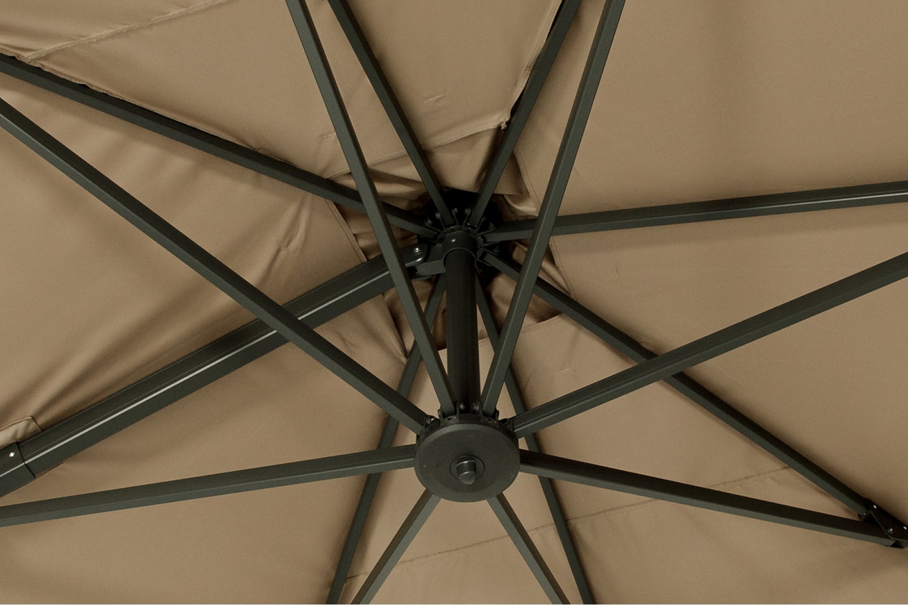 Тент уличного зонта изготовлен из прочного 100% полиэстера с водоотталкивающей пропиткой, что гарантирует защиту не только от солнца,