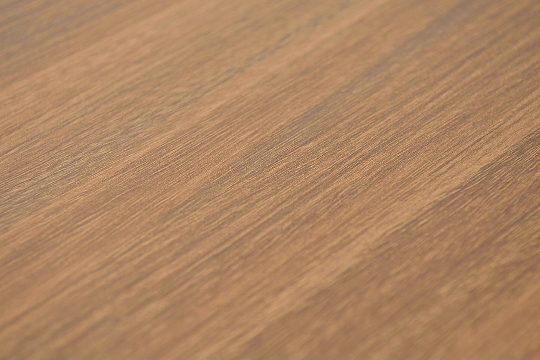 Размер стола - 1600×1600×750 мм. Столешница изготовлена из компакт-пластика HPL c рисунком цвета «дуб».