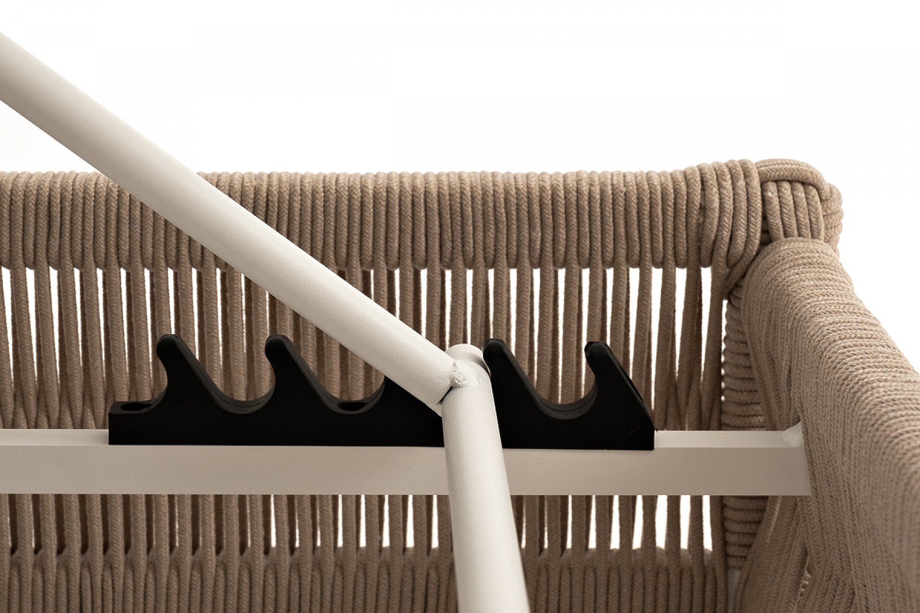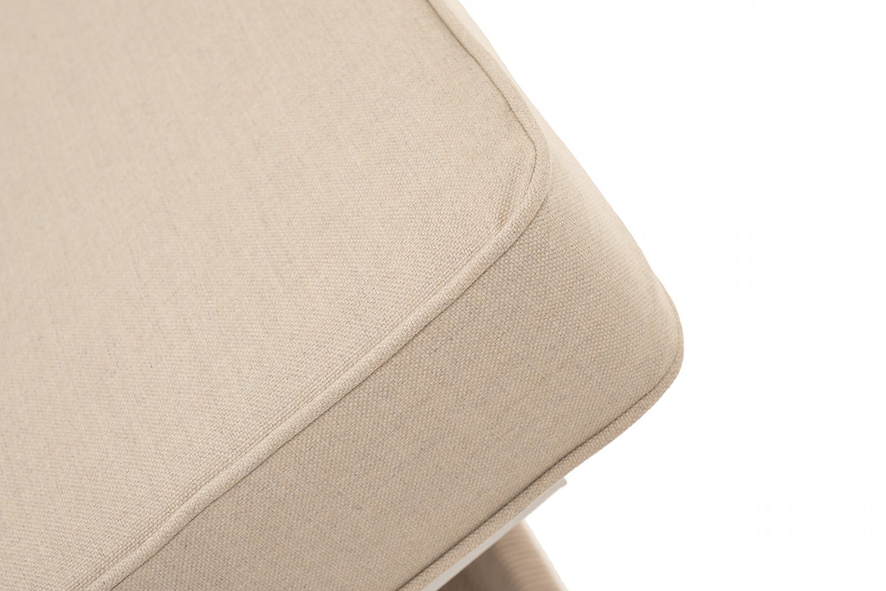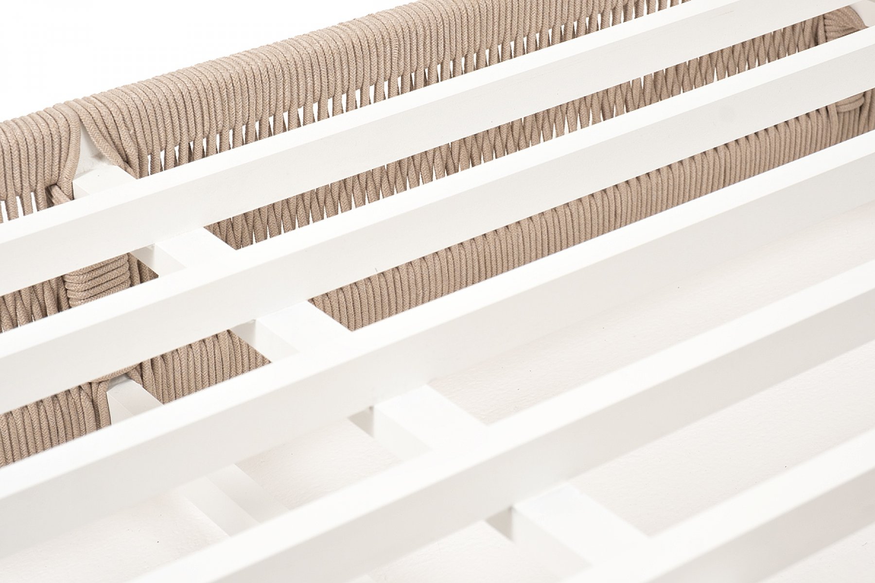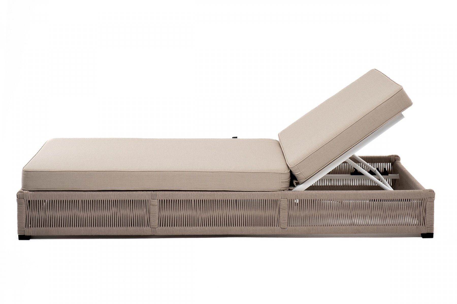 "Ривьера" шезлонг плетеный из роупа, каркас алюминий белый муар, роуп бежевый круглый, ткань бежевая 052