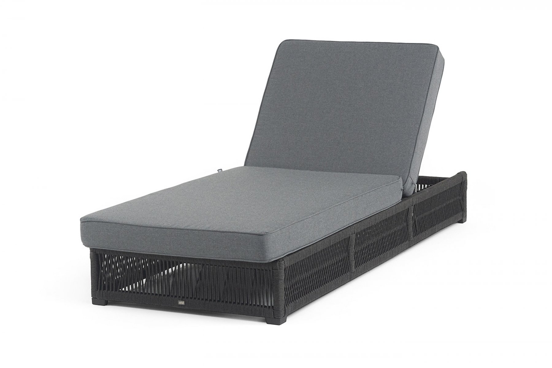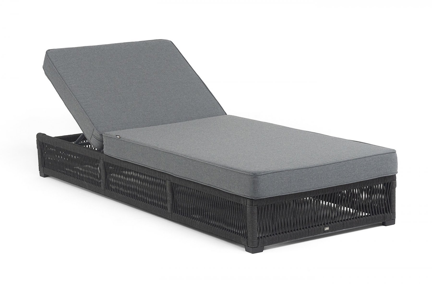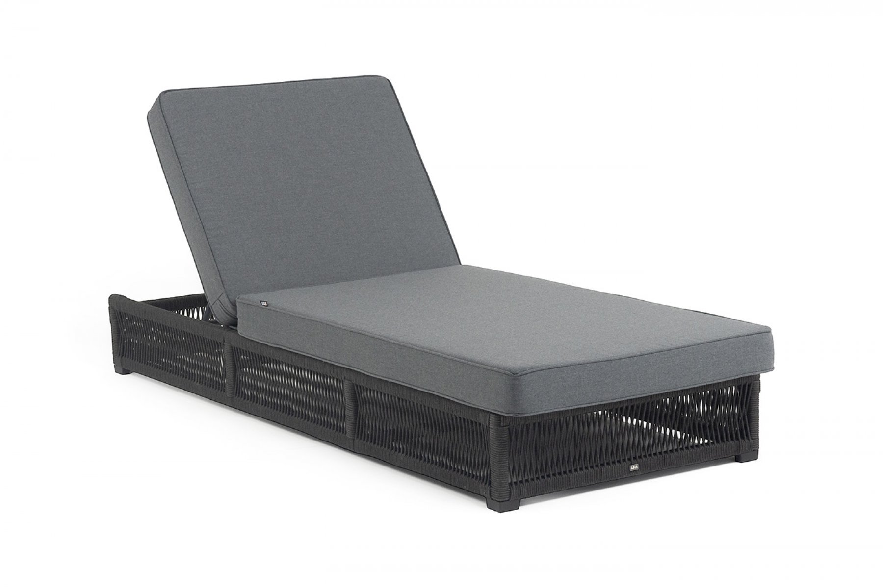 "Ривьера" шезлонг плетеный из роупа, каркас алюминий темно-серый (RAL7024) муар, роуп темно-серый круглый, ткань темно-серая 027