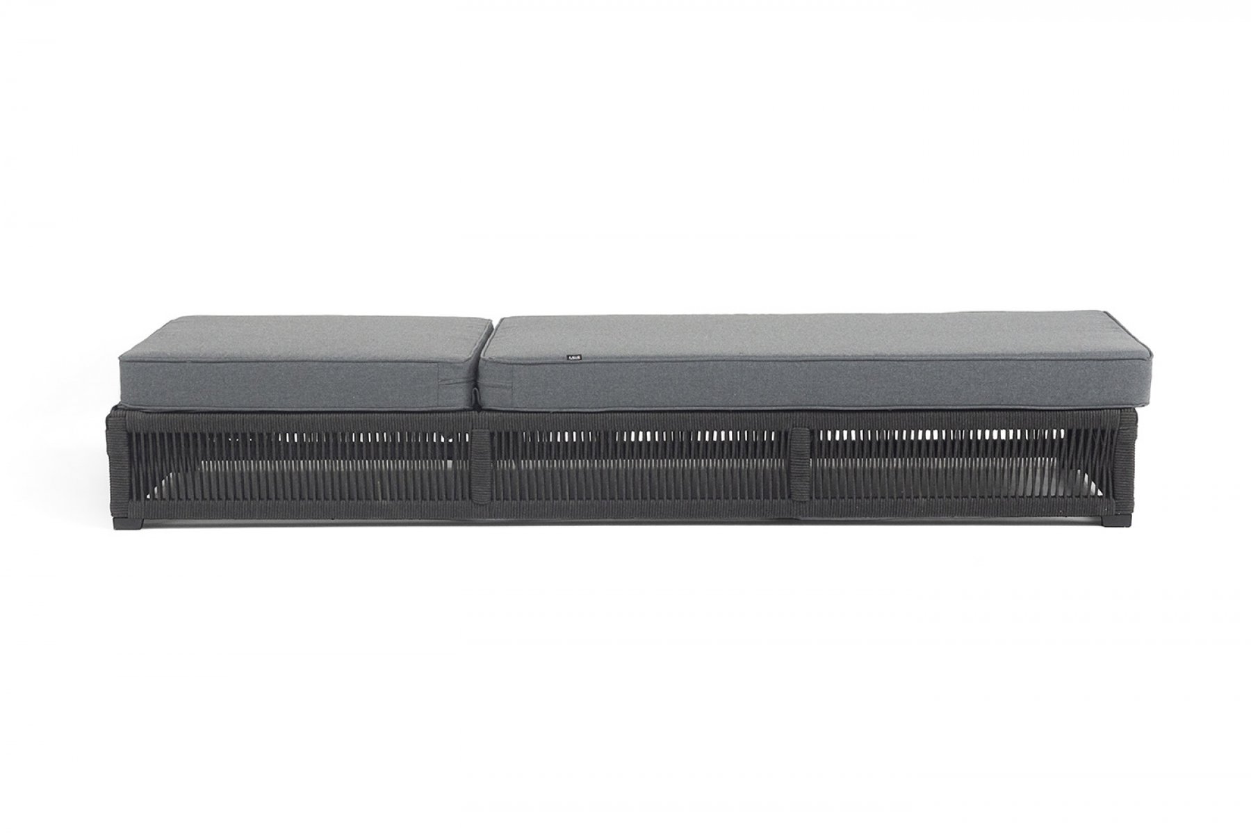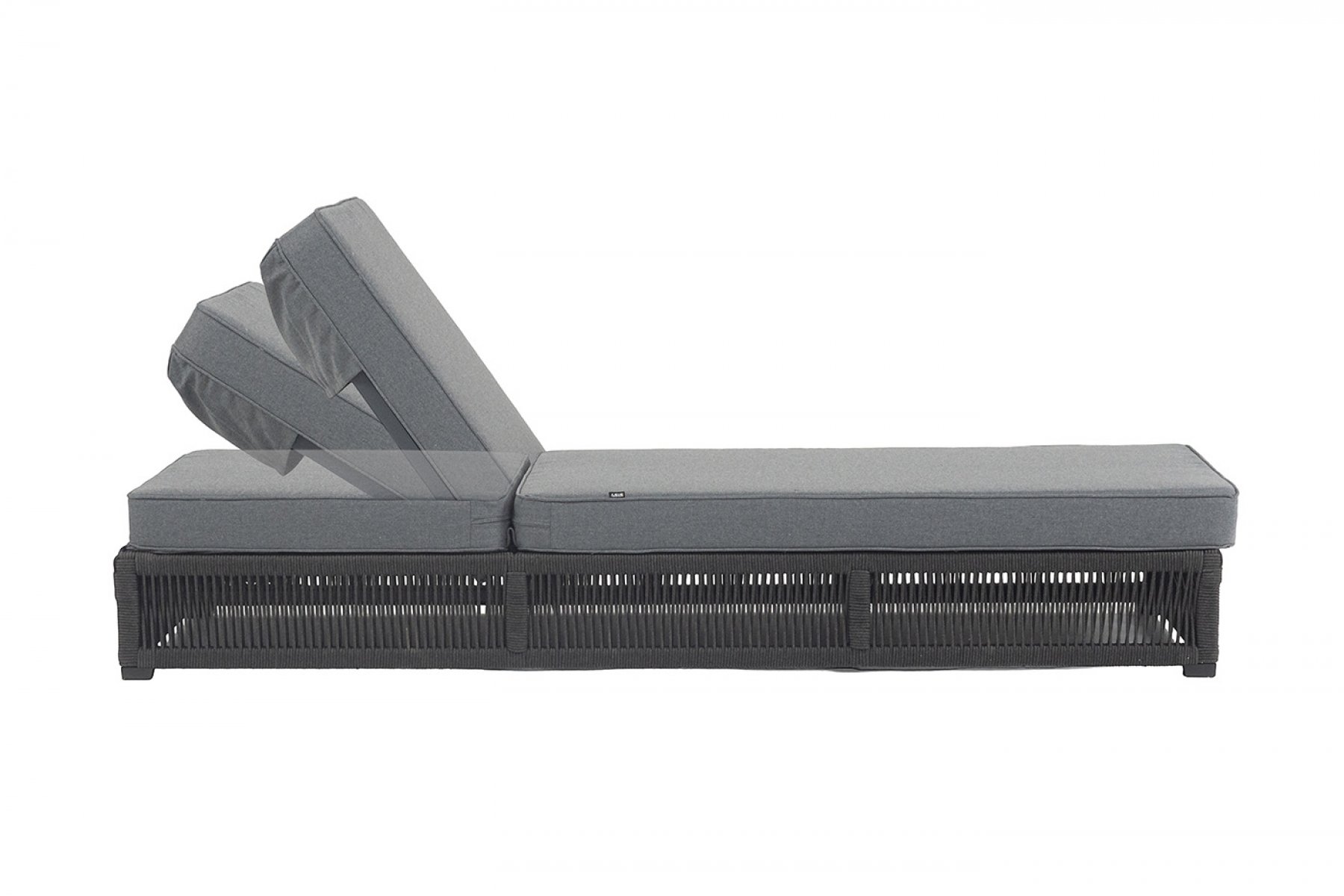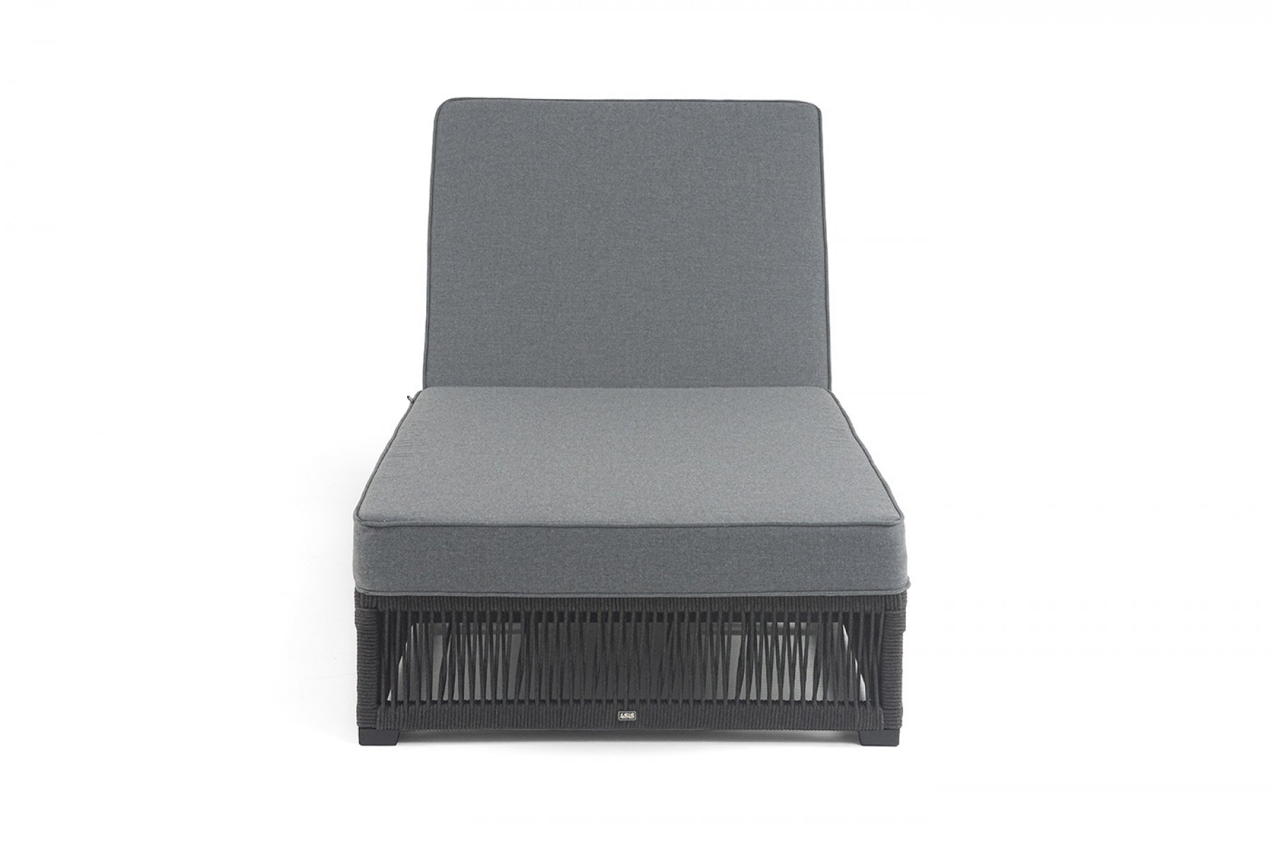 "Ривьера" шезлонг плетеный из роупа, каркас алюминий темно-серый (RAL7024) муар, роуп темно-серый круглый, ткань темно-серая 027